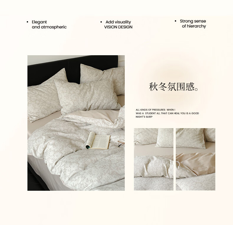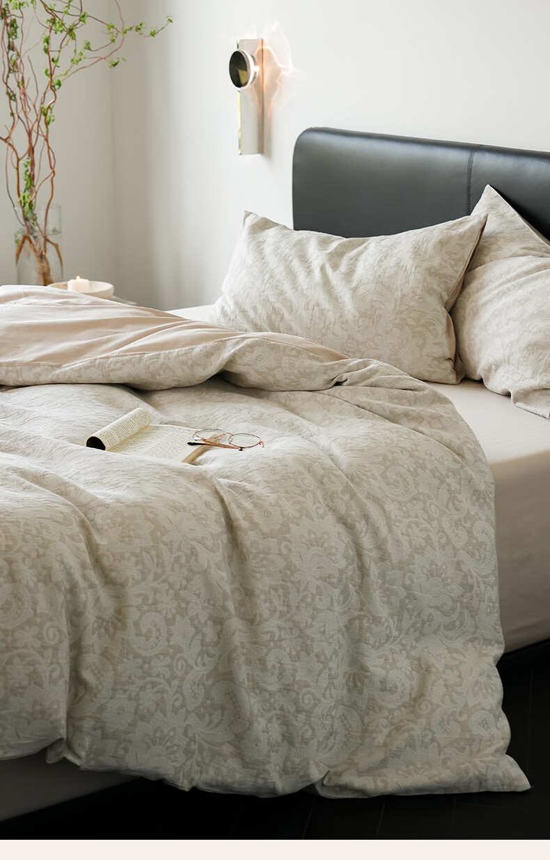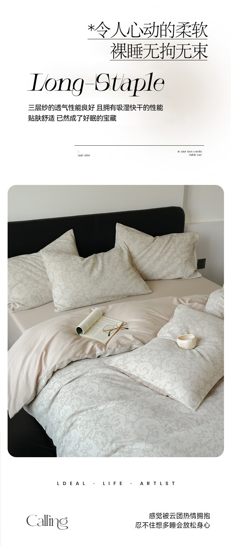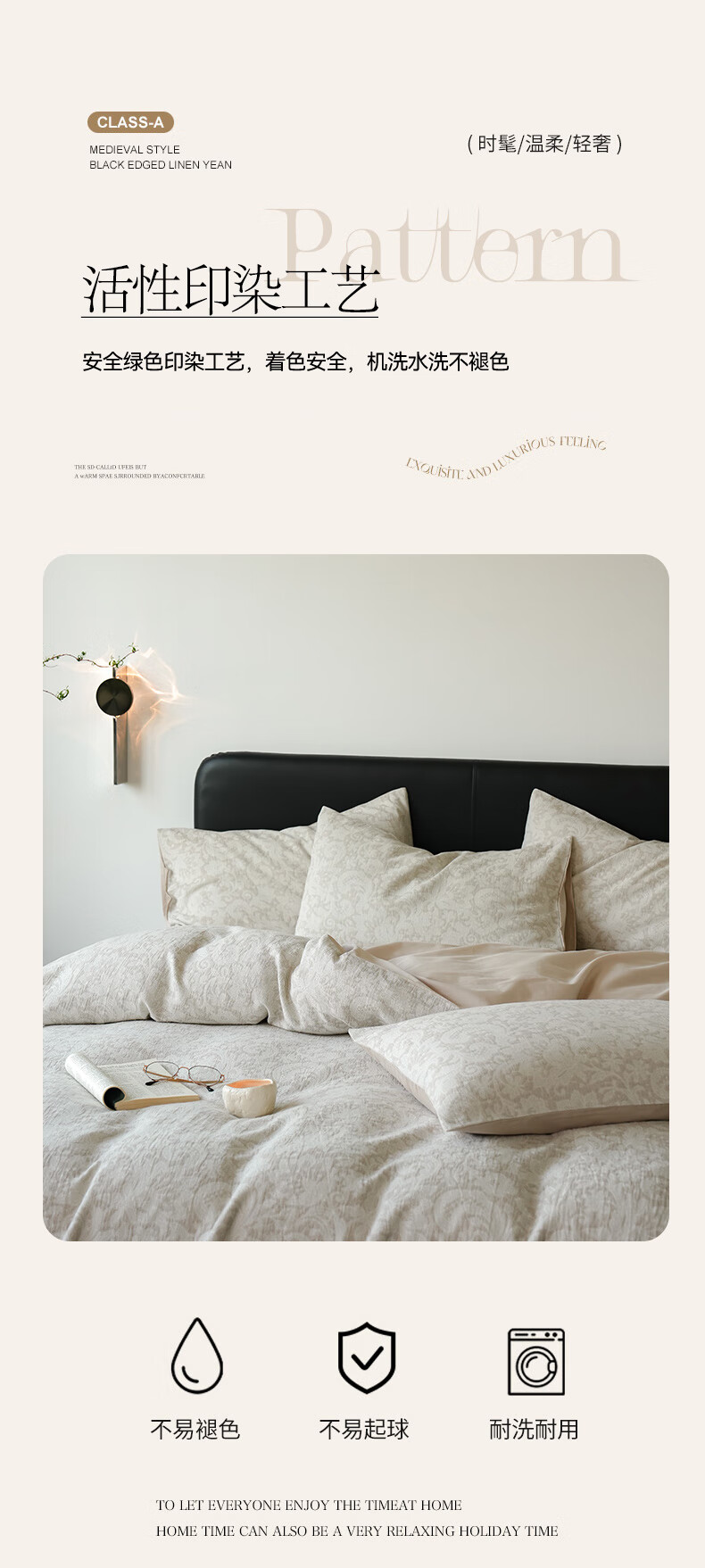 苏萱A类三层纱全棉磨毛床上四件套纯棉2025新款秋冬加厚被套床单床笠4 夏目-米灰 1.8m 床单款 四件套-被套200x230cm