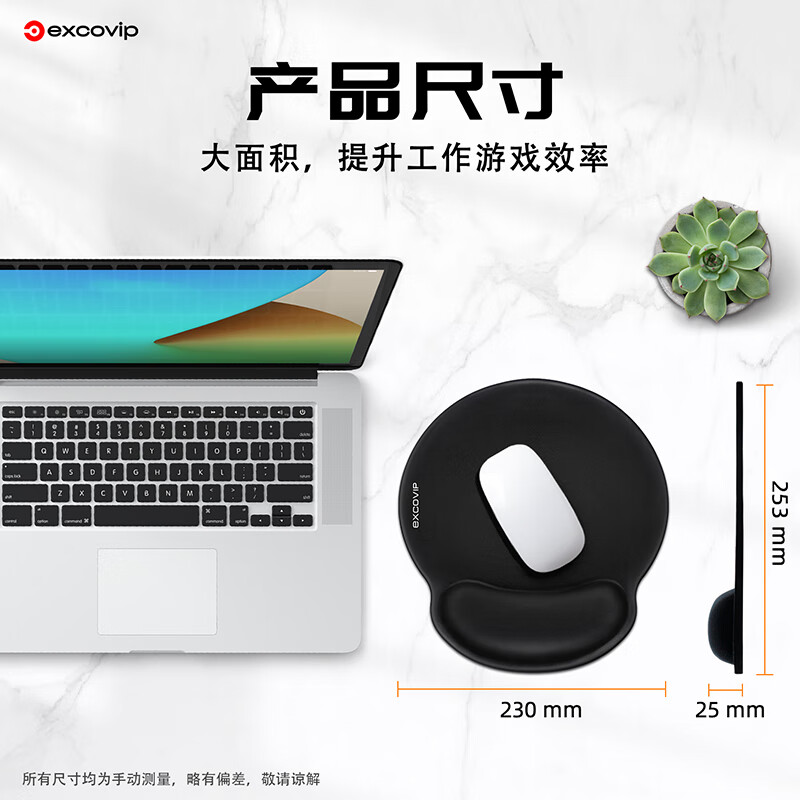 宜适酷(EXCO)舒适记忆棉商务办公鼠标垫护腕加厚大号键盘手托鼠标腕托枕女生笔记本电脑外设桌游戏黑3624