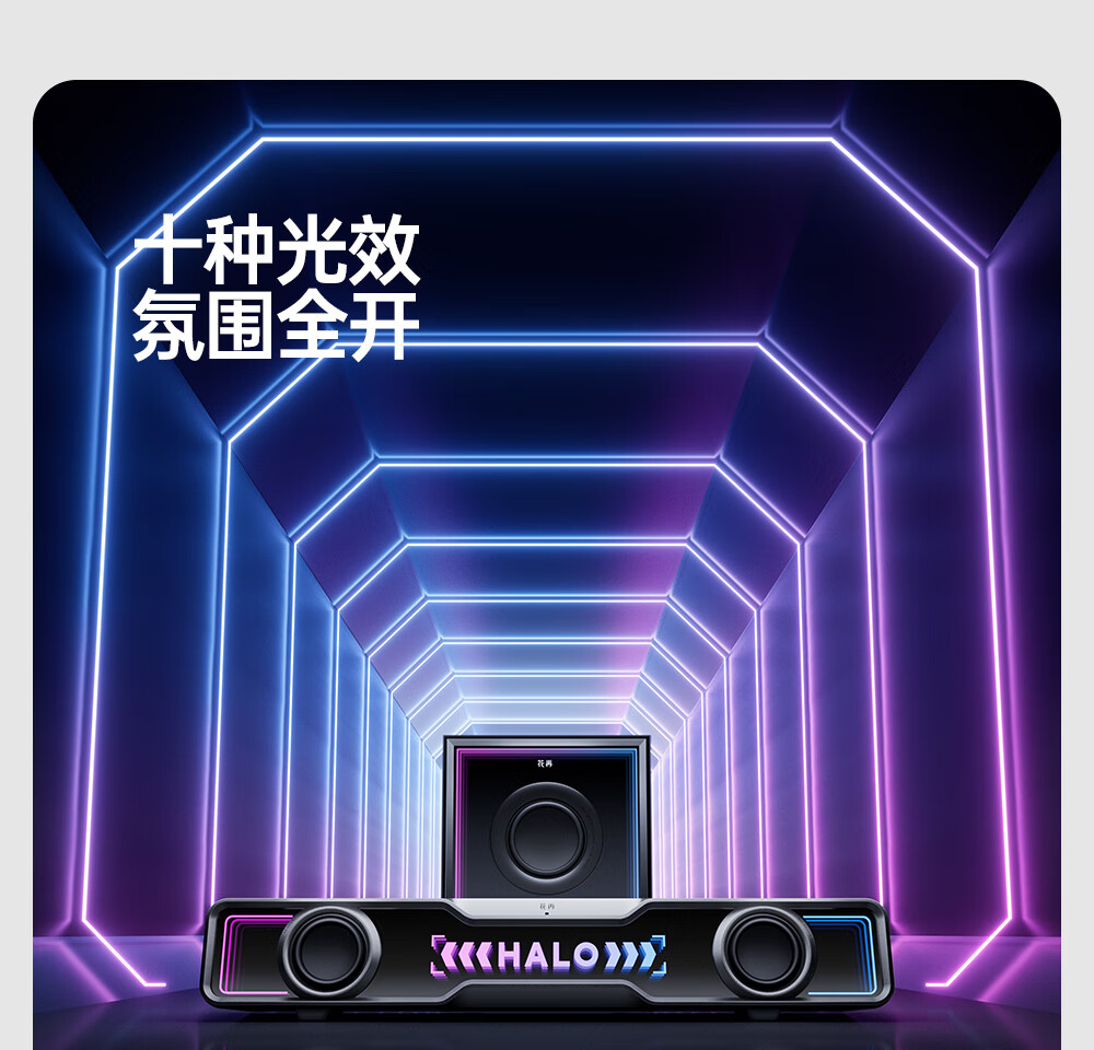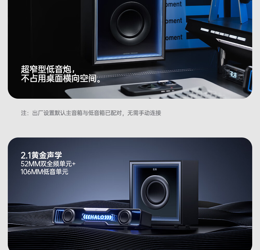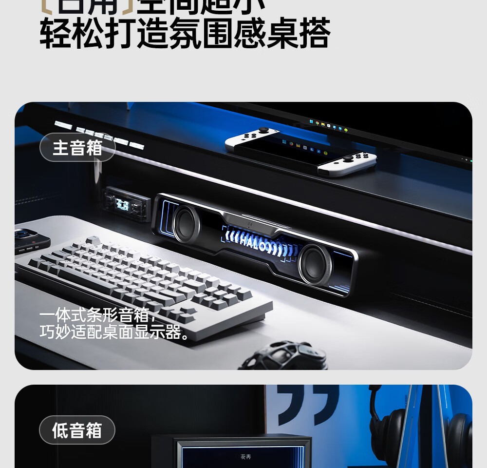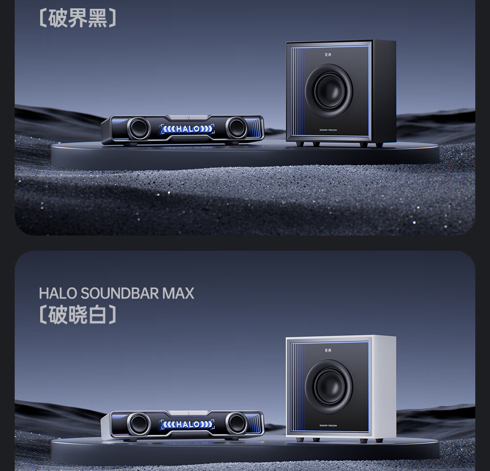漫步者花再Halo Soundbar Max电脑音响蓝牙5.4低音炮音箱 电竞桌面台式长条有线音箱 破界黑 高保真家用