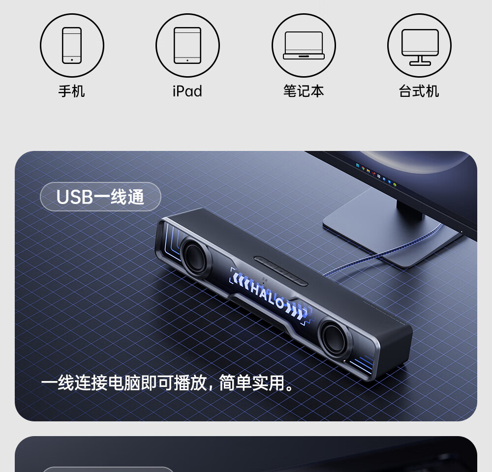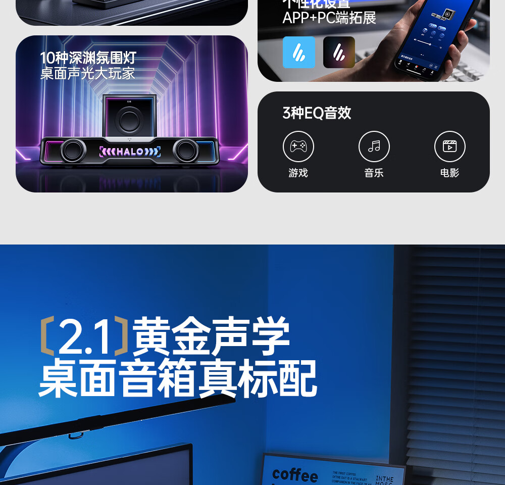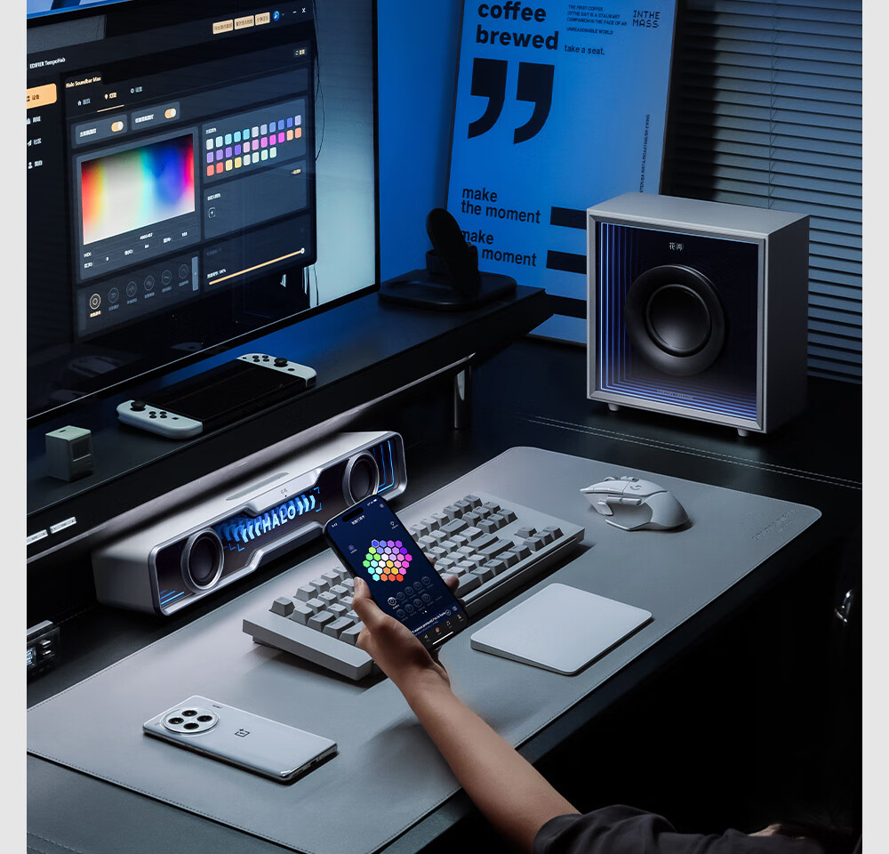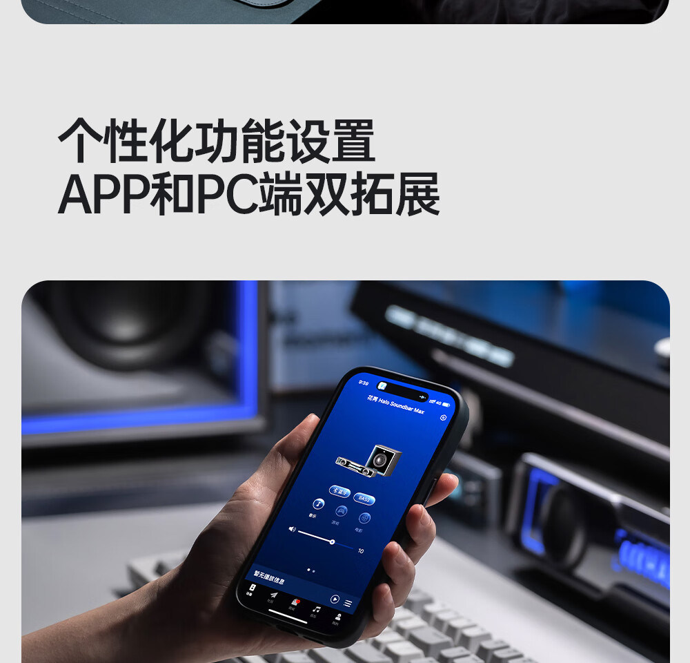 漫步者花再Halo Soundbar Max电脑音响蓝牙5.4低音炮音箱 电竞桌面台式长条有线音箱 破界黑 高保真家用