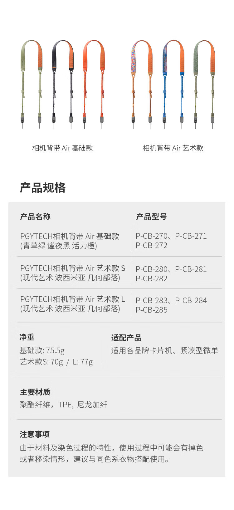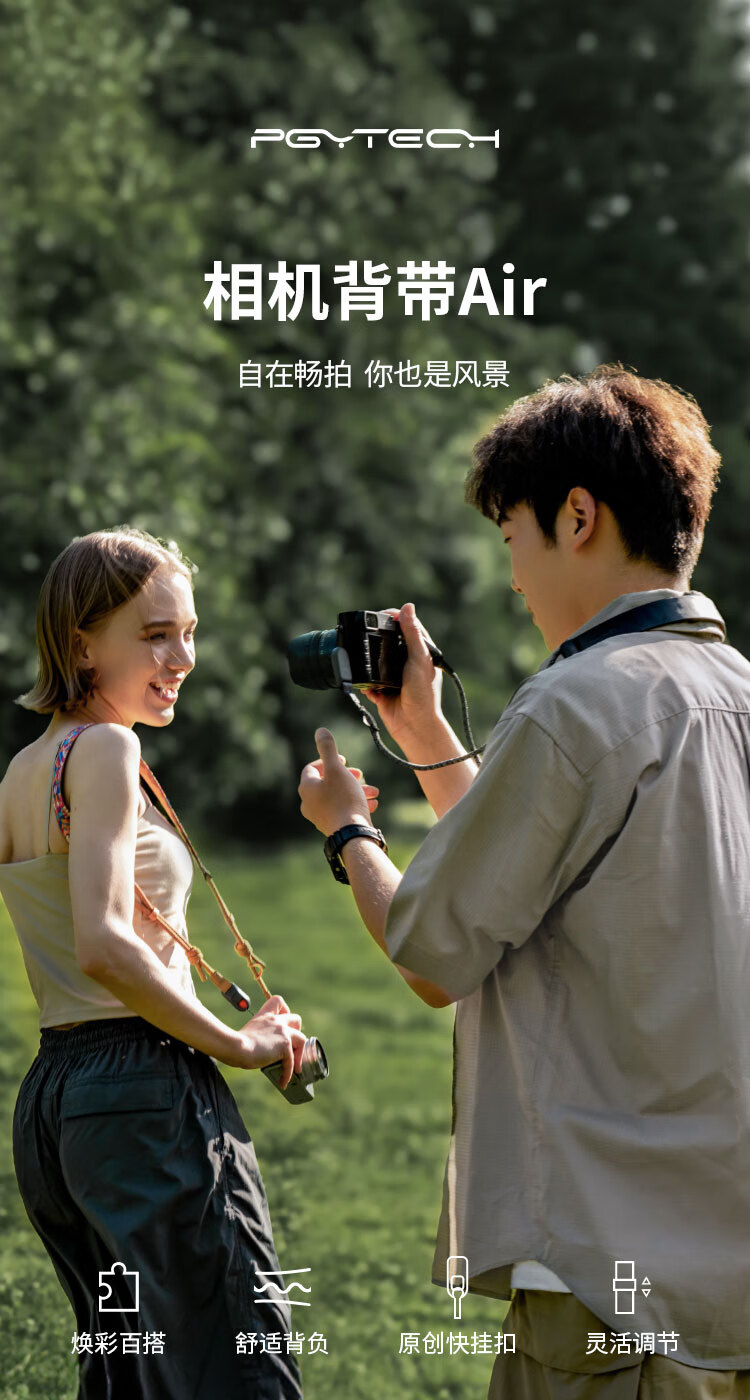 PGYTECH相机肩带Air蒲公英相机背带快拆微单反快装板相机斜跨带适用索尼佳能富士XT30尼康Z5相机配件挂绳 谧夜黑