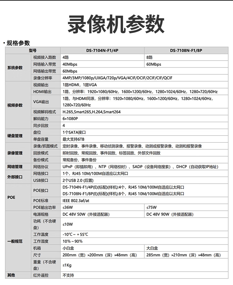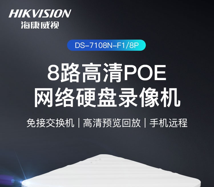 HIKVISION海康威视网络硬盘录像机8路监控主机高清POE网线供电手机远程NVR满配8个摄像头7108N-F1/8P