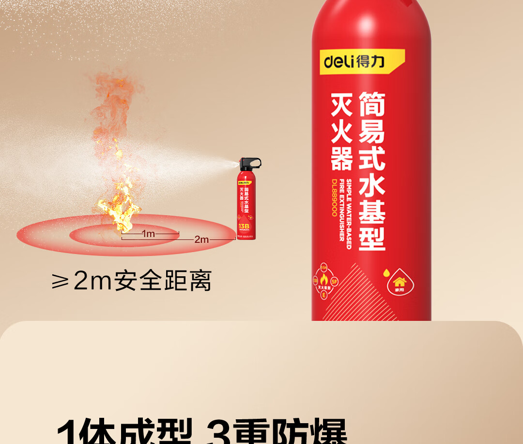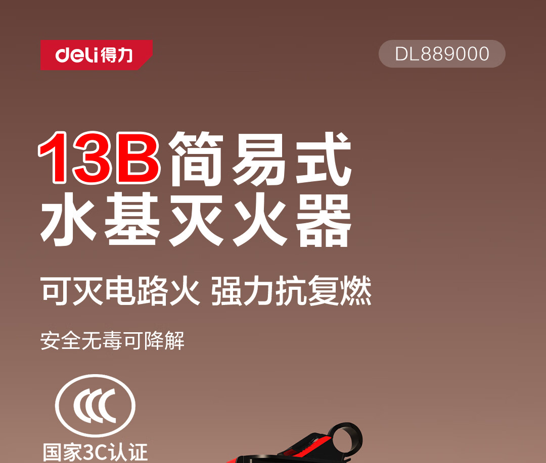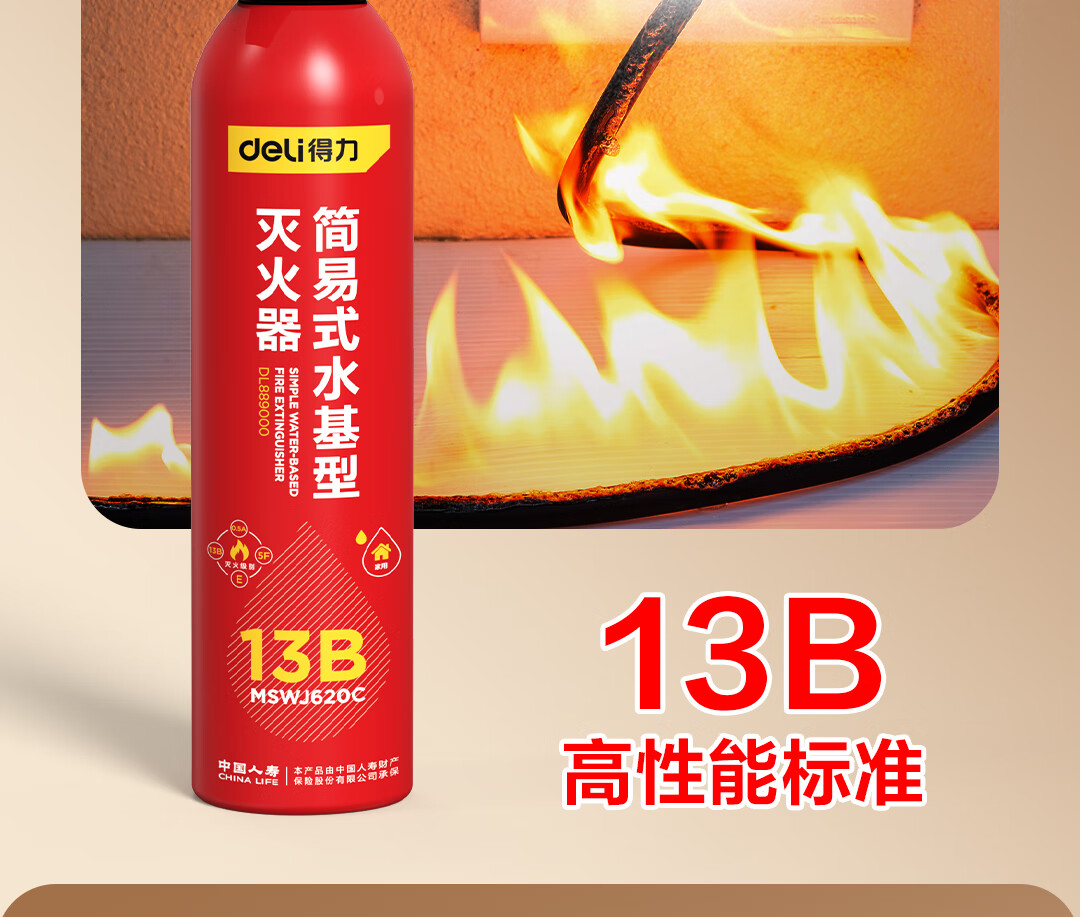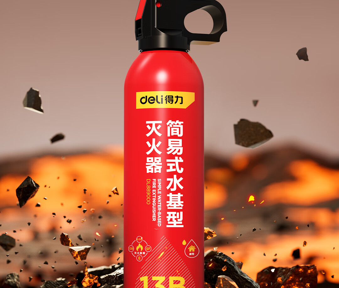 得力车载灭火器水基13B灭火器汽车家用国家消防3C认证环保620ml