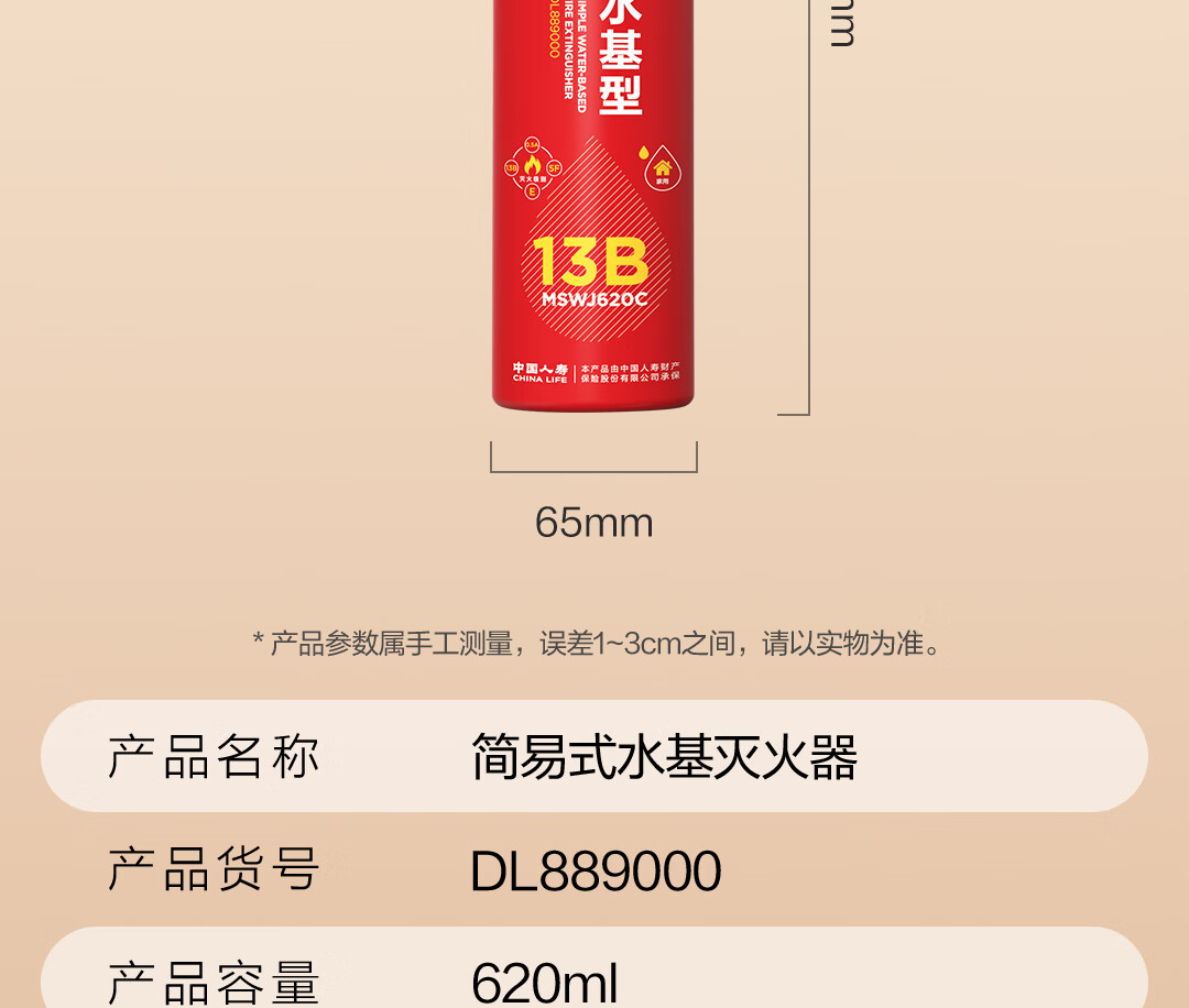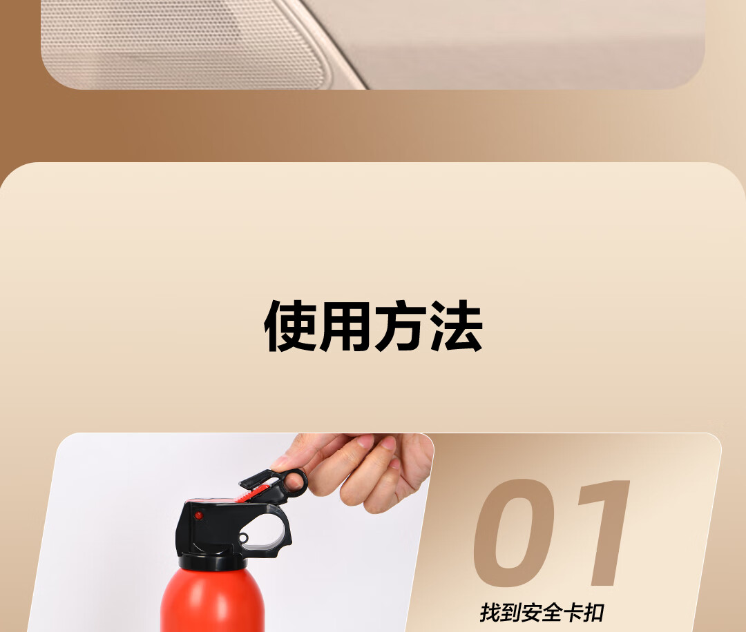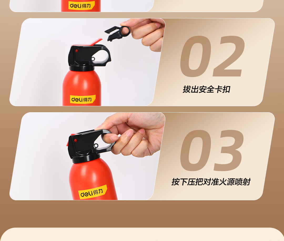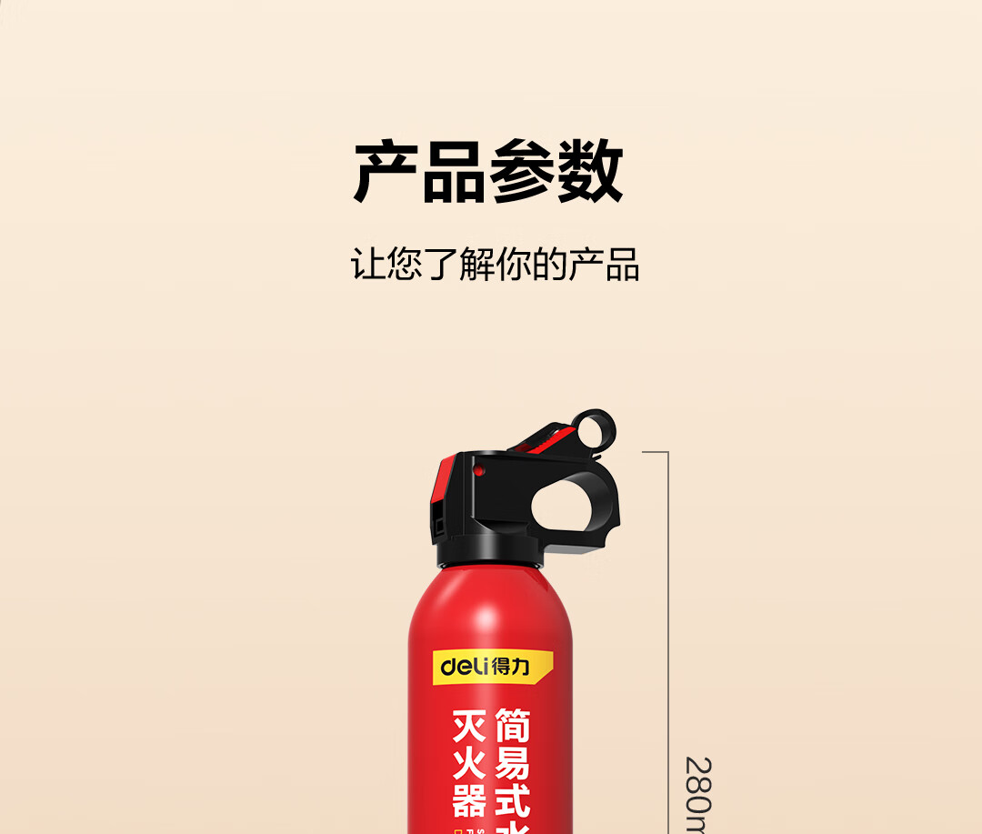 得力车载灭火器水基13B灭火器汽车家用国家消防3C认证环保620ml