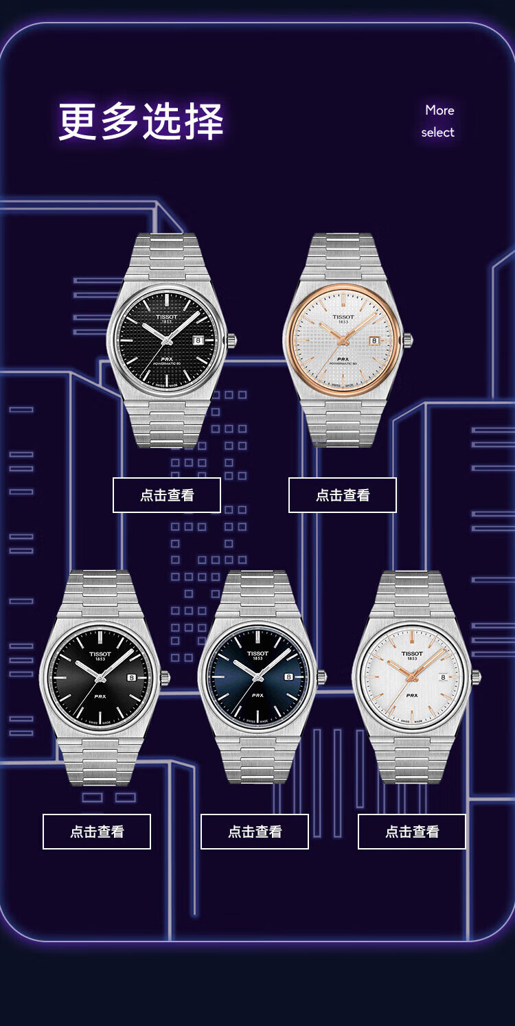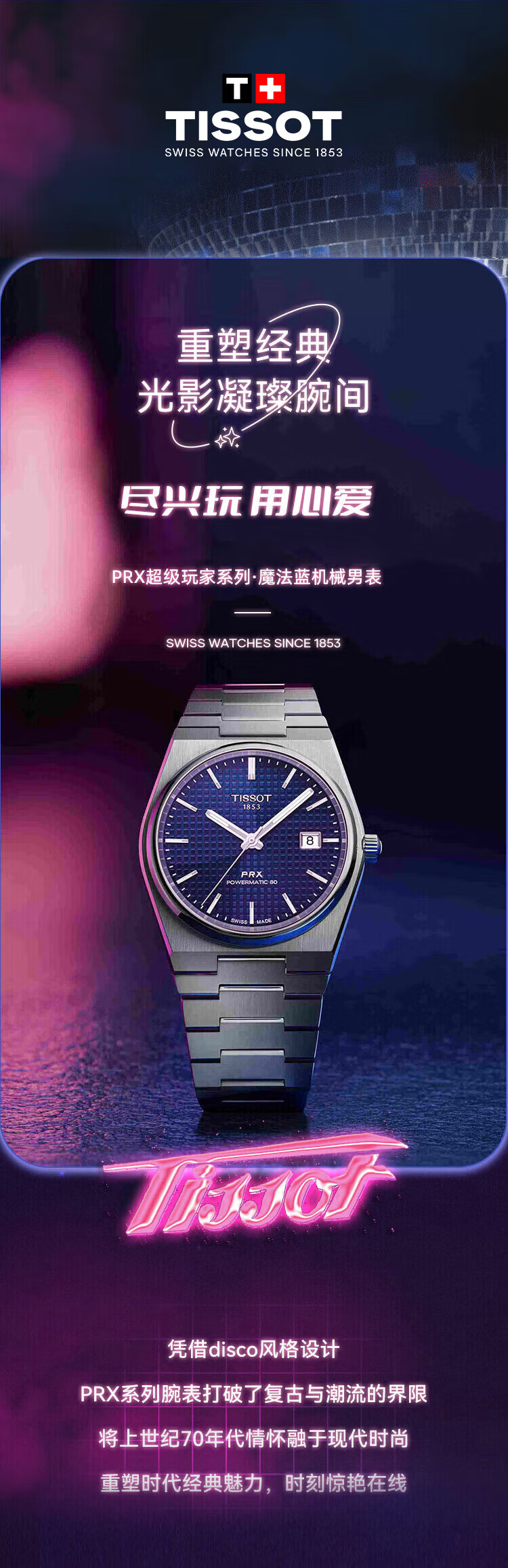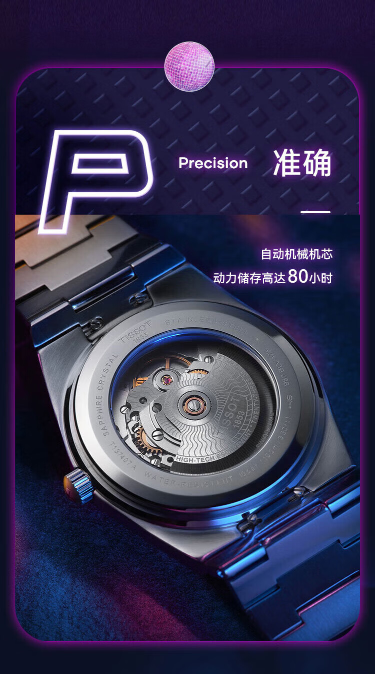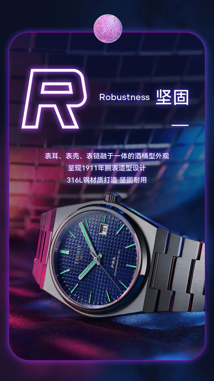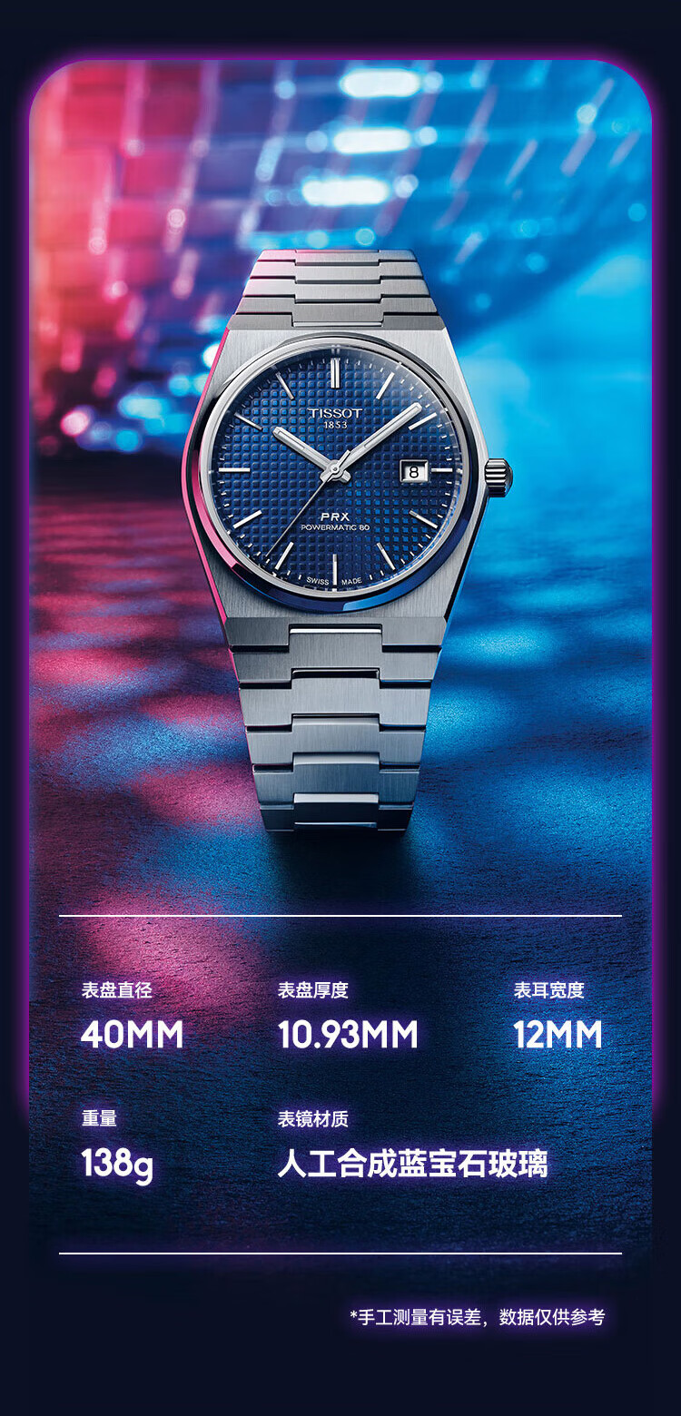 天梭(TISSOT)手表 PRX超级玩家系列男表 机械男士钢带腕表时尚表生日礼物