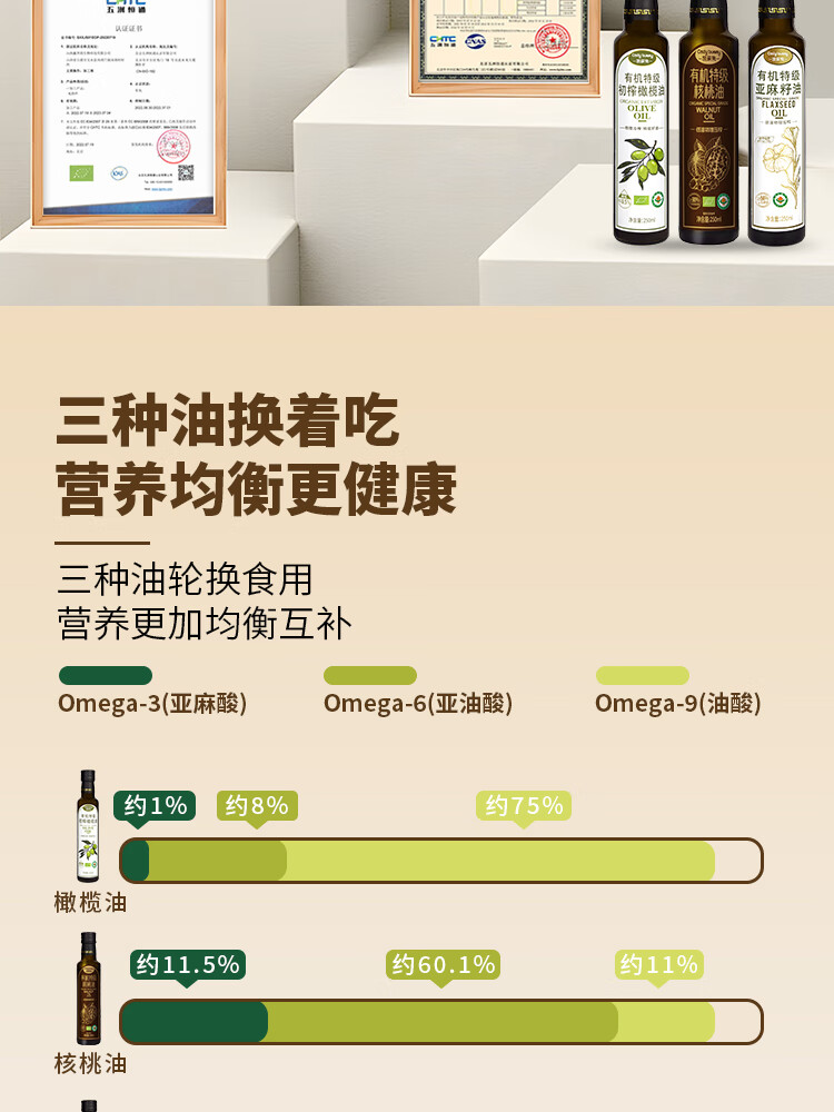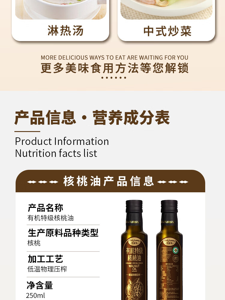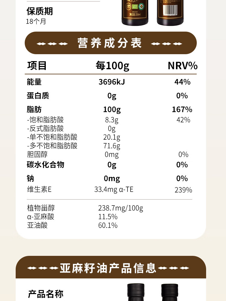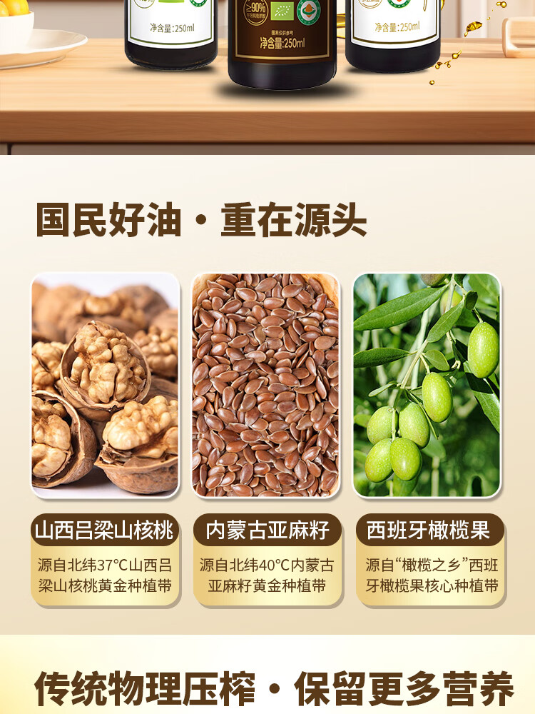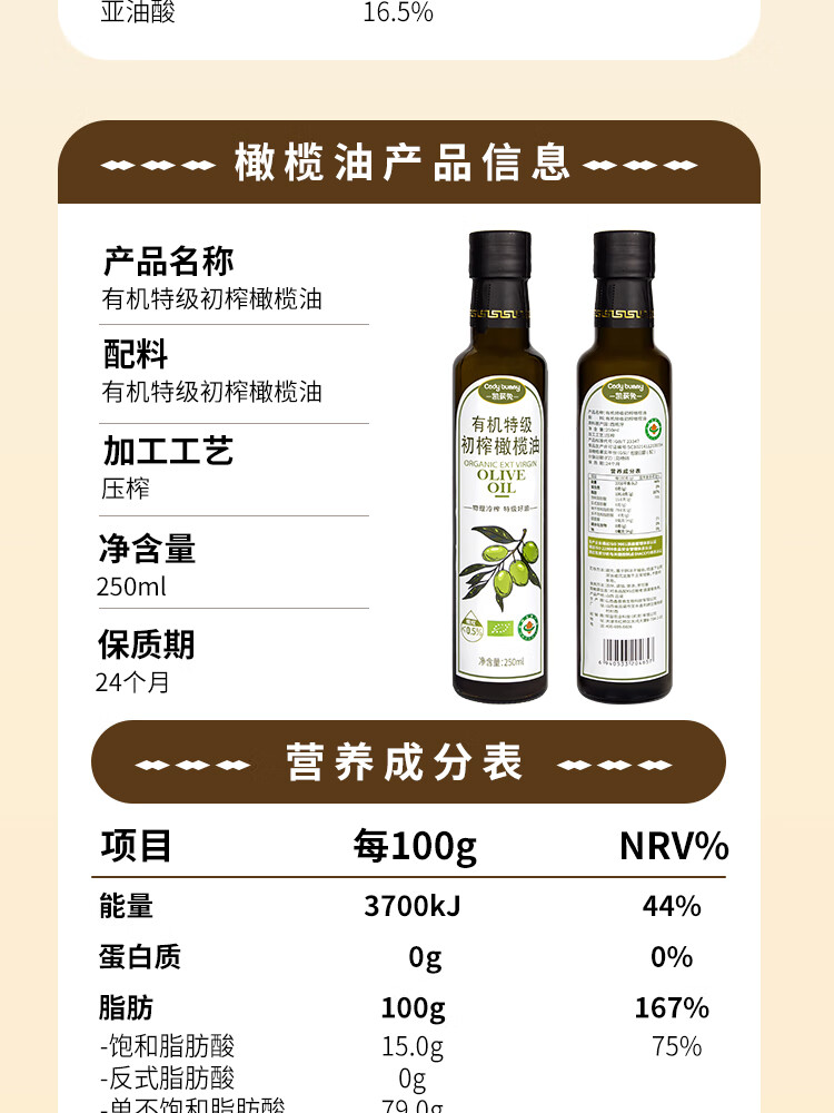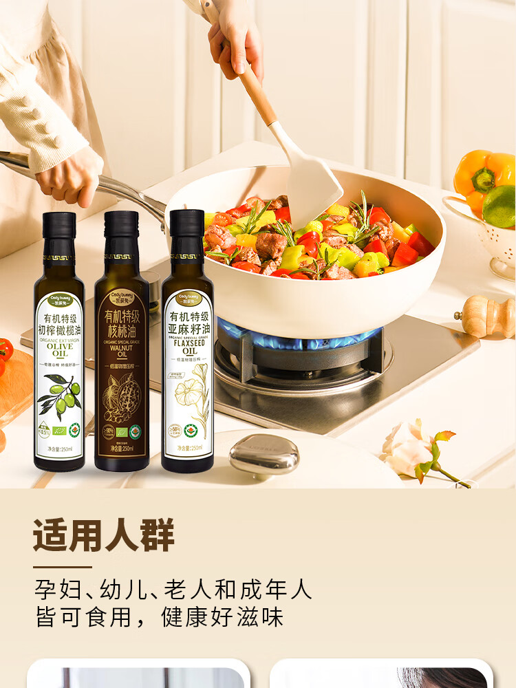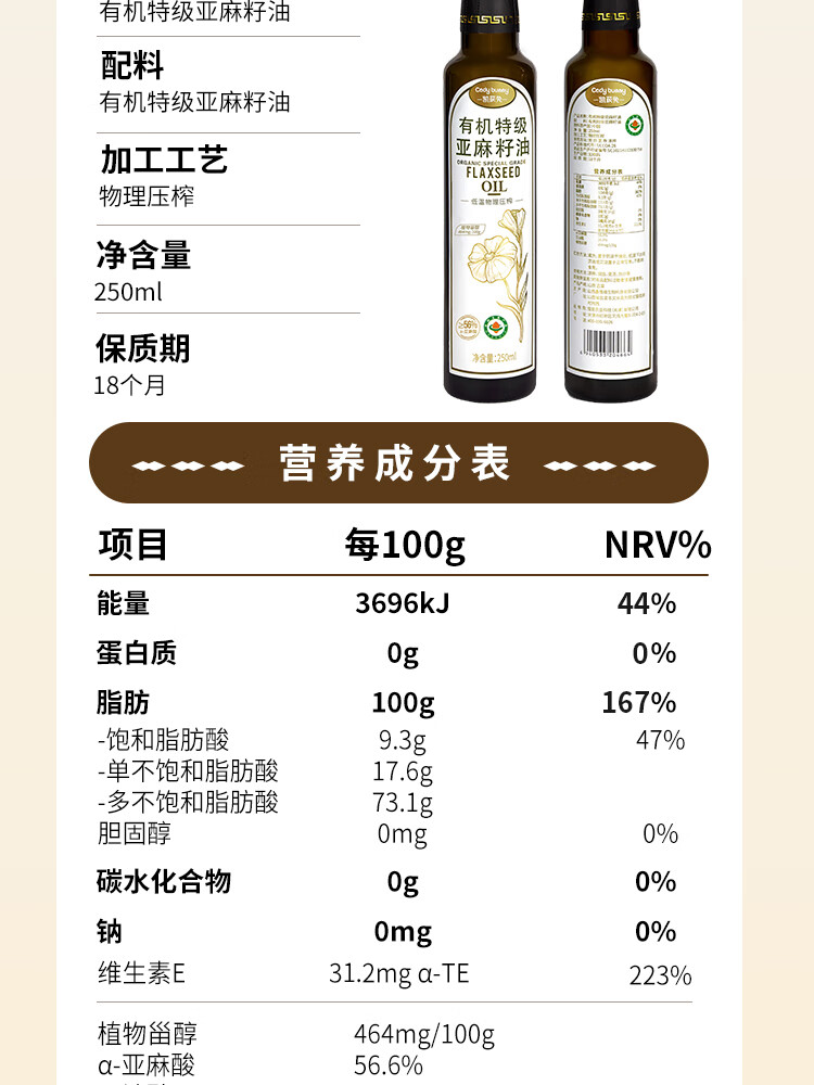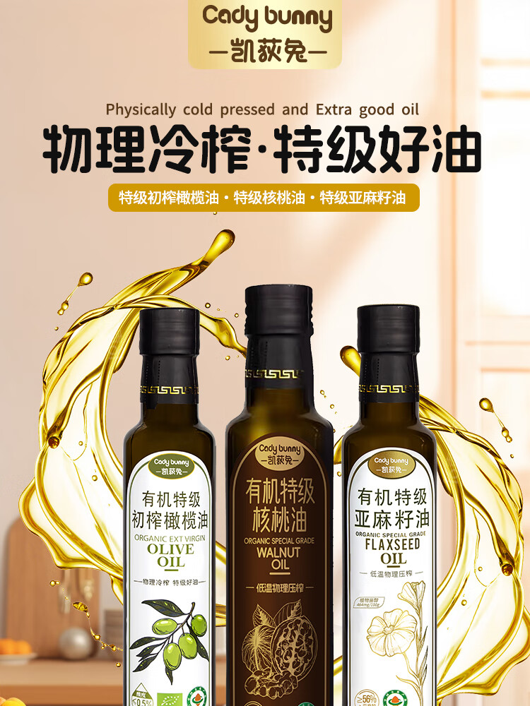 凯荻兔有机特级婴儿核桃油亚麻籽油橄榄油 冷榨热炒油宝宝婴幼儿辅食油 有机特级亚麻籽油250ml*2瓶