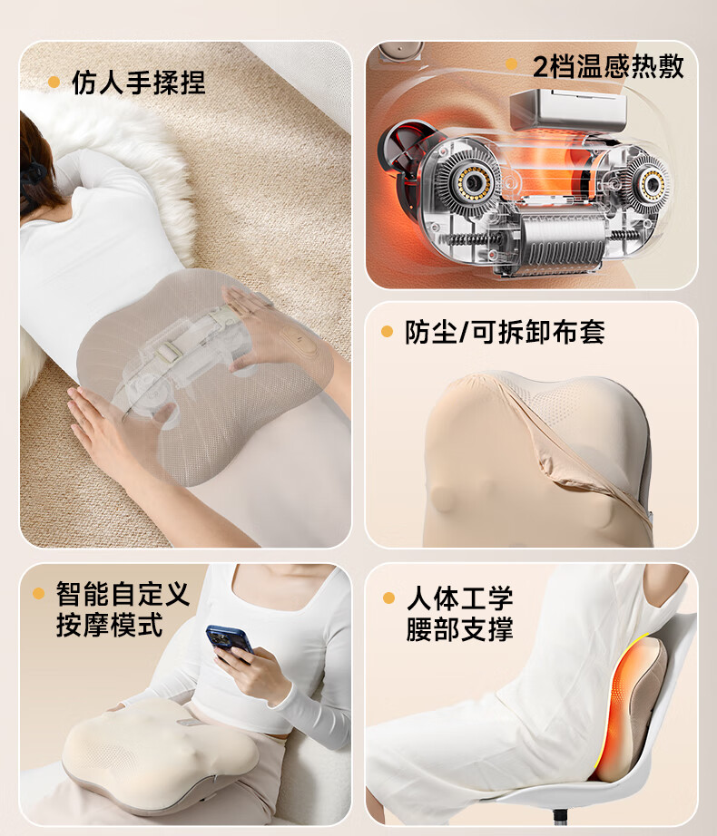 云康宝 腰部按摩器按摩垫靠垫肩腿背部颈椎按摩仪器揉捏热敷便携送长辈节日礼物送男女友 热敷按摩推荐 腰部按摩MW10D
