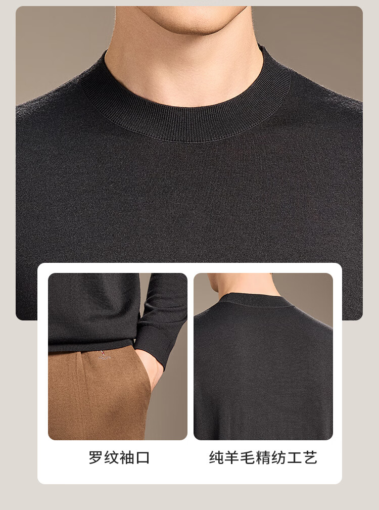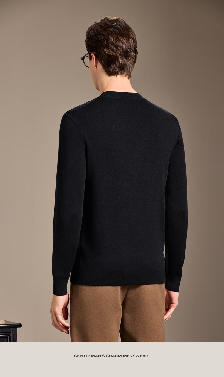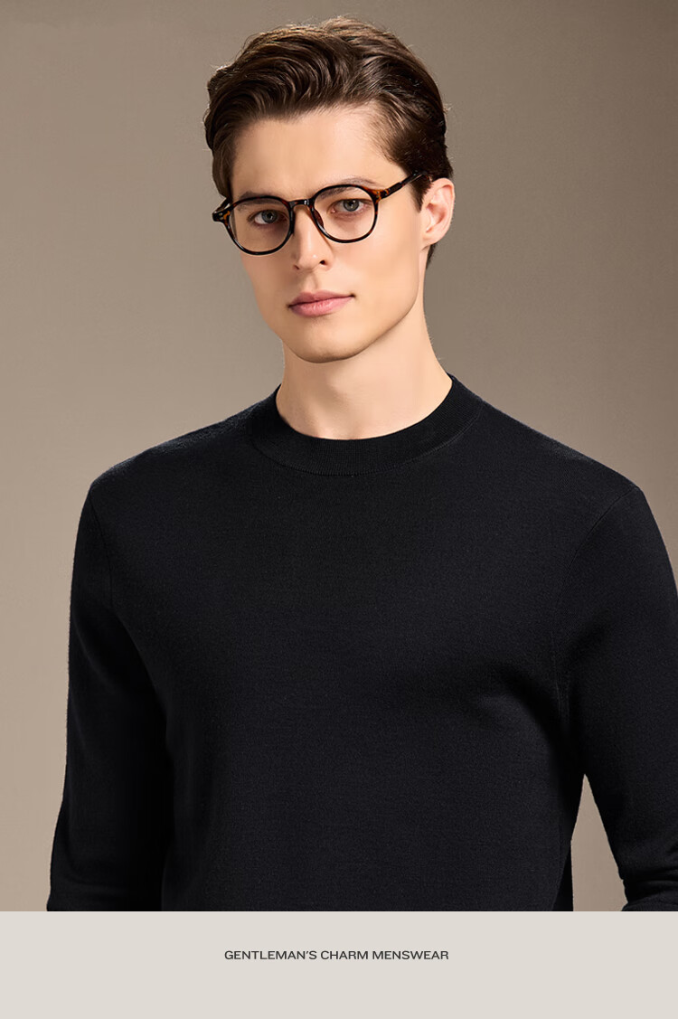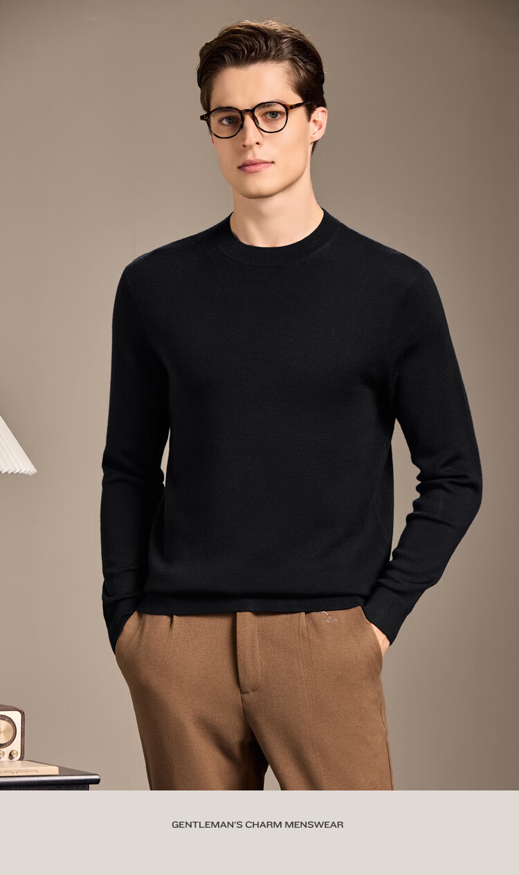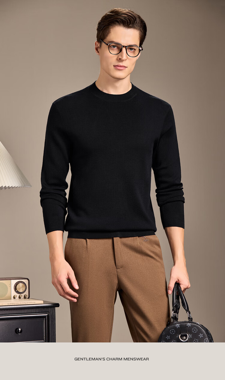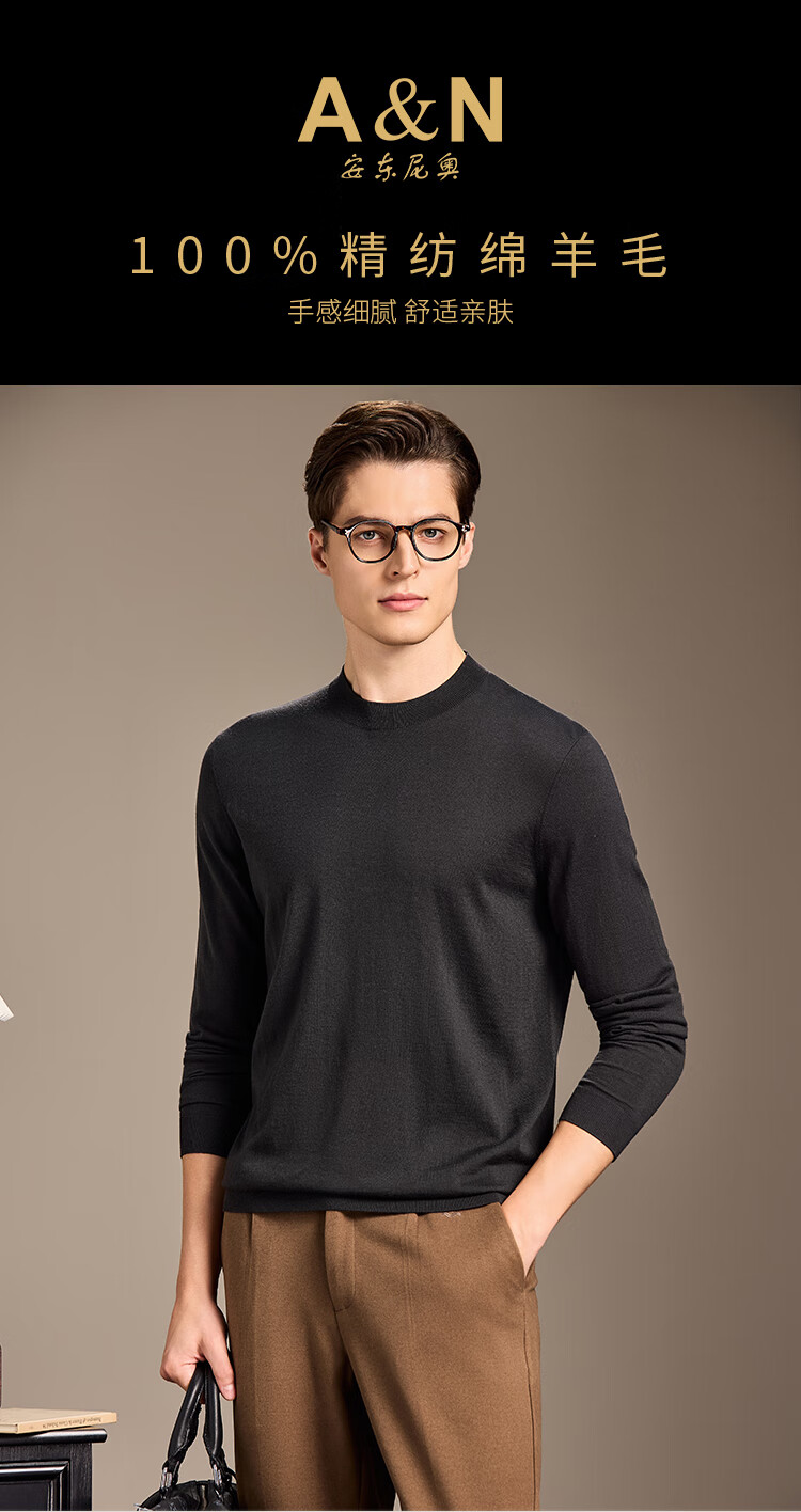 安东尼奥【100%精纺羊毛&可机洗】简约圆领毛衣男易打理保暖羊毛打底衫