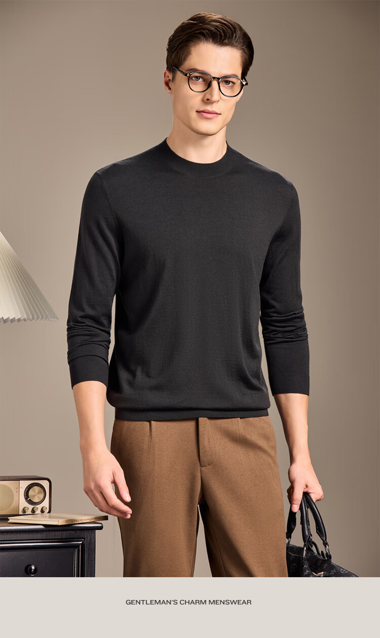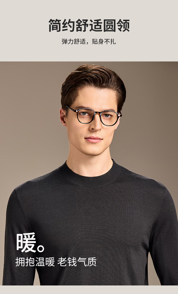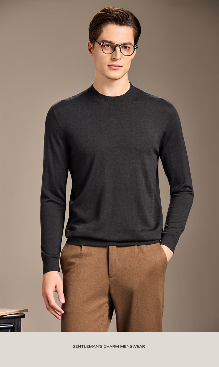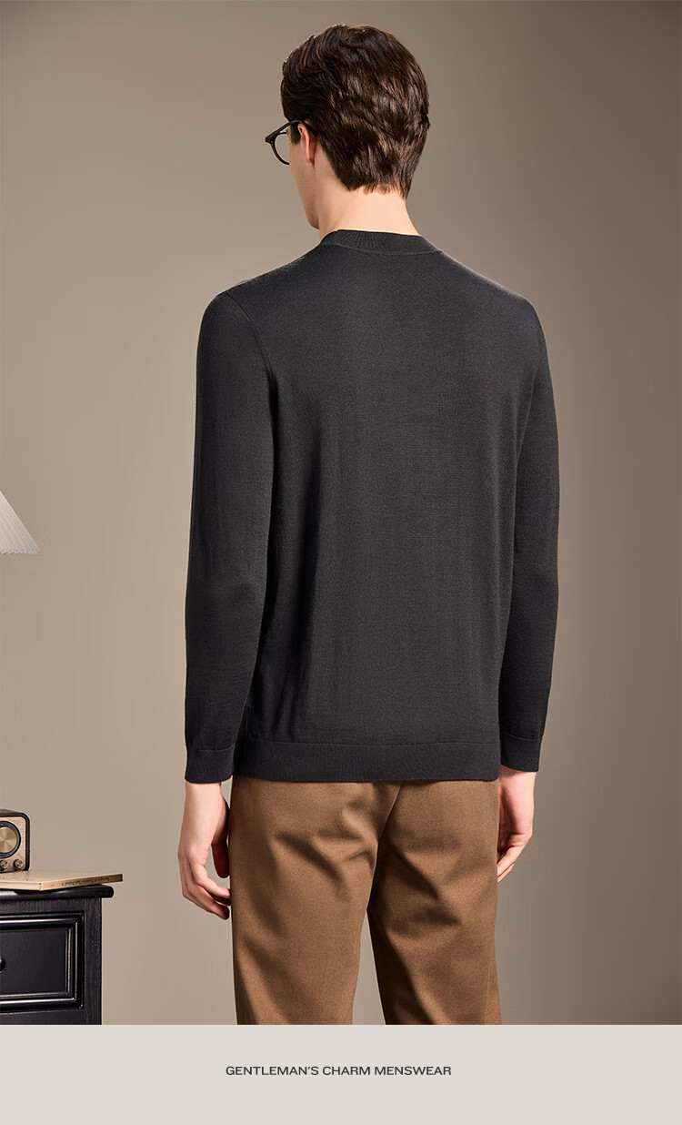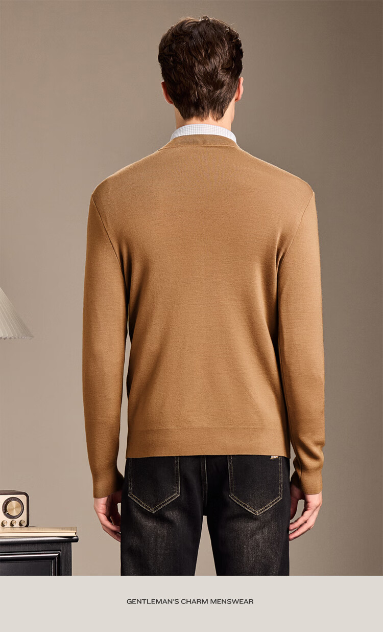 安东尼奥【100%精纺羊毛&可机洗】简约圆领毛衣男易打理保暖羊毛打底衫