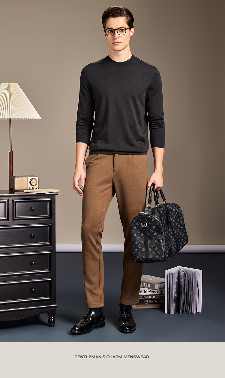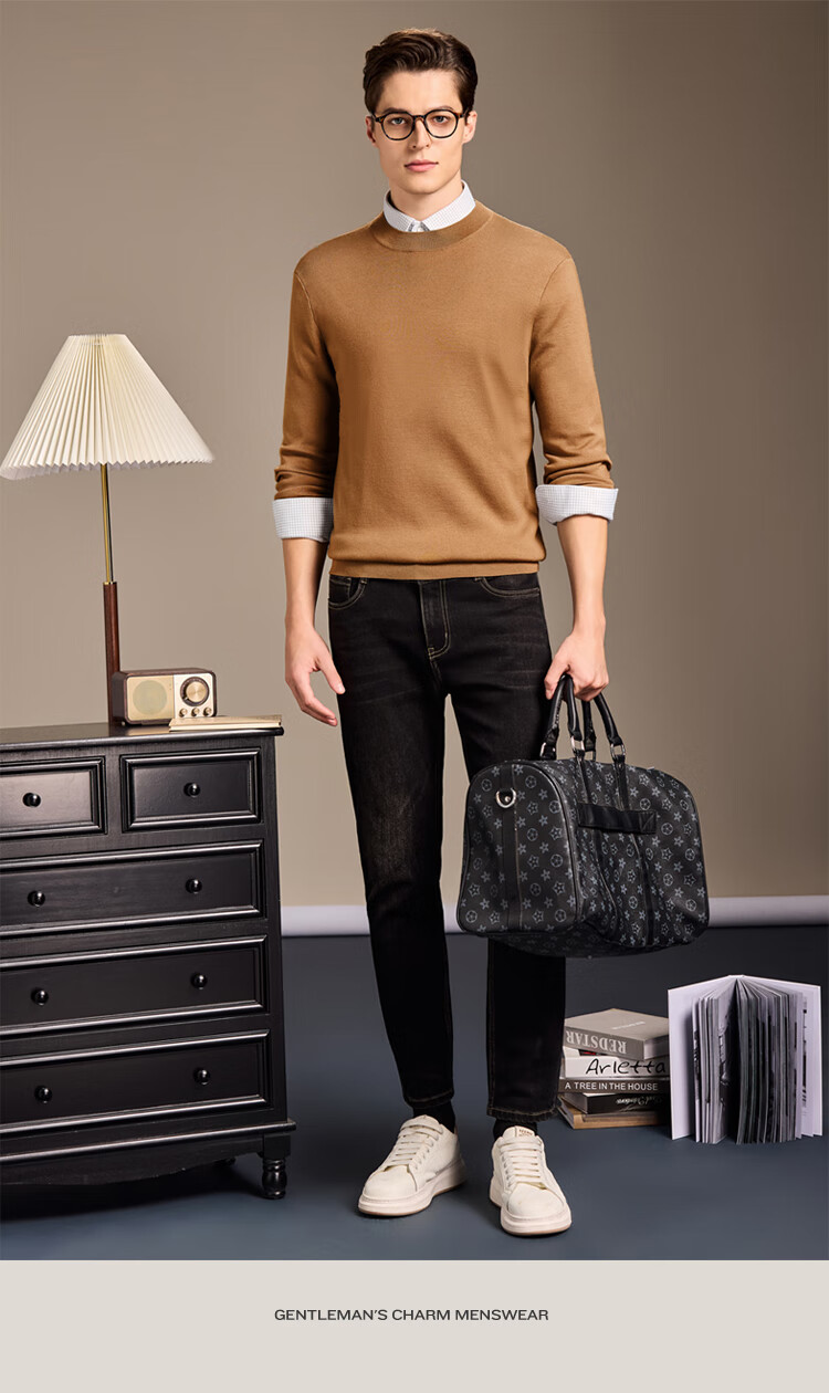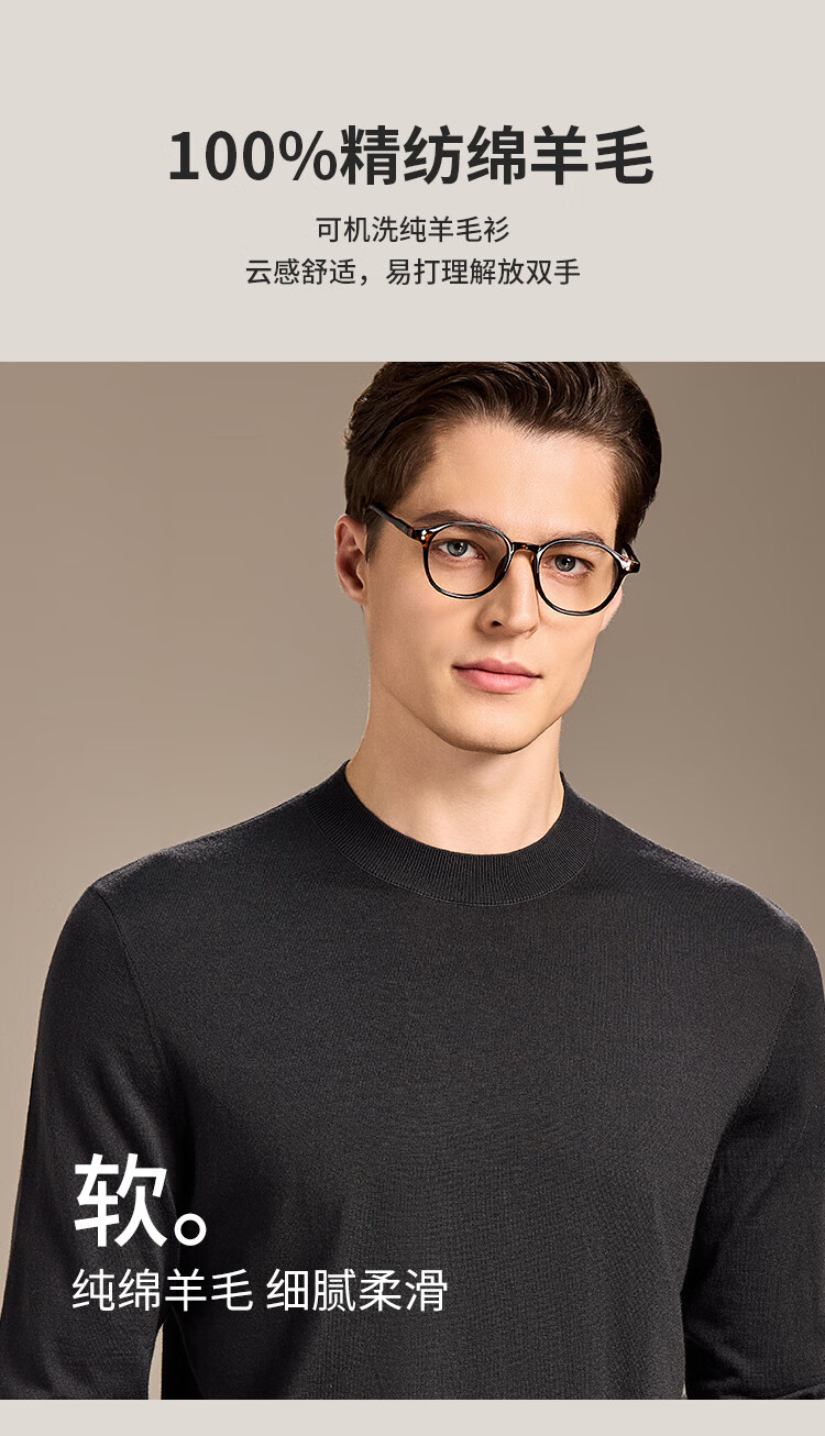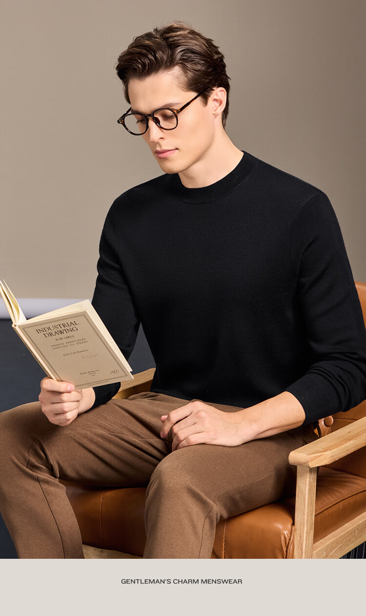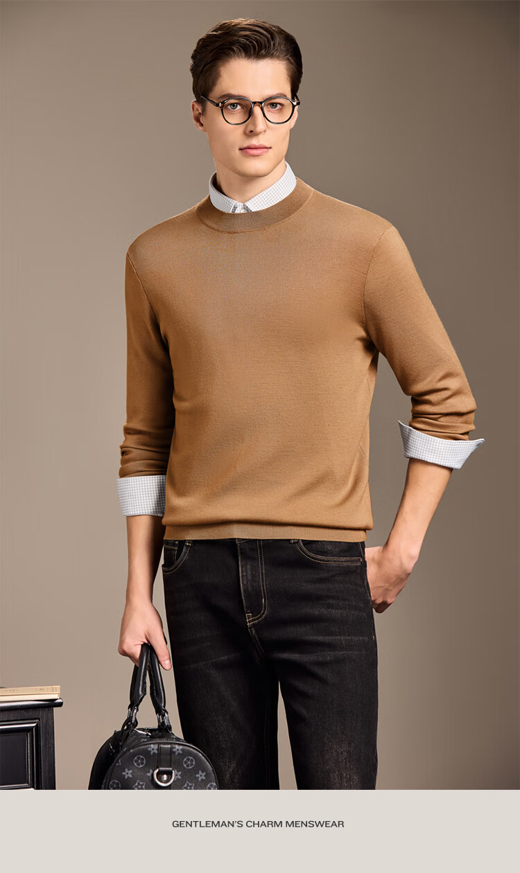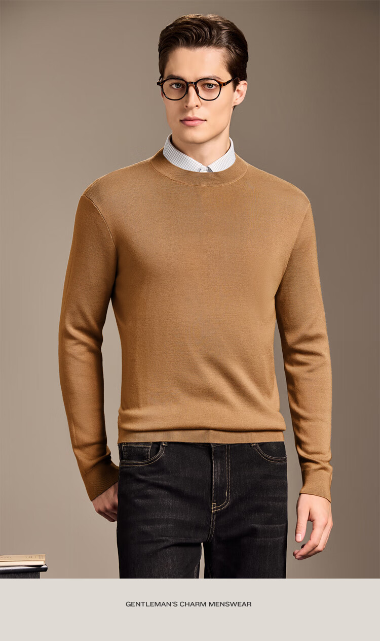 安东尼奥【100%精纺羊毛&可机洗】简约圆领毛衣男易打理保暖羊毛打底衫