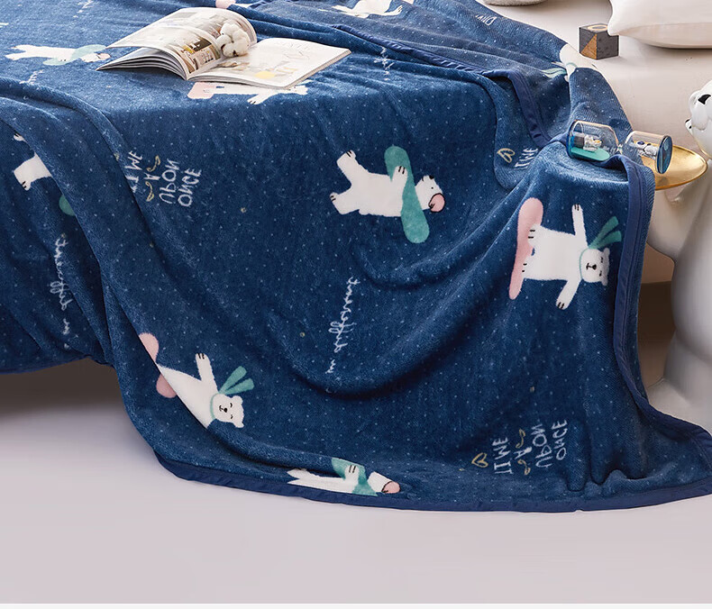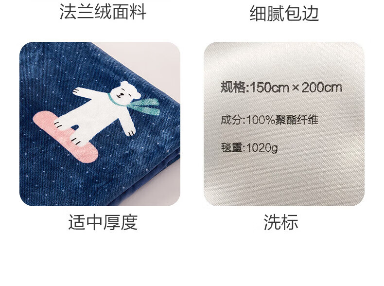水星家纺毛毯法兰绒毯 秋冬盖毯毛巾被午睡毯子办公室空调毯单人加厚毛毯 滑雪熊【母婴A类&一毯多用】 150cm×200cm