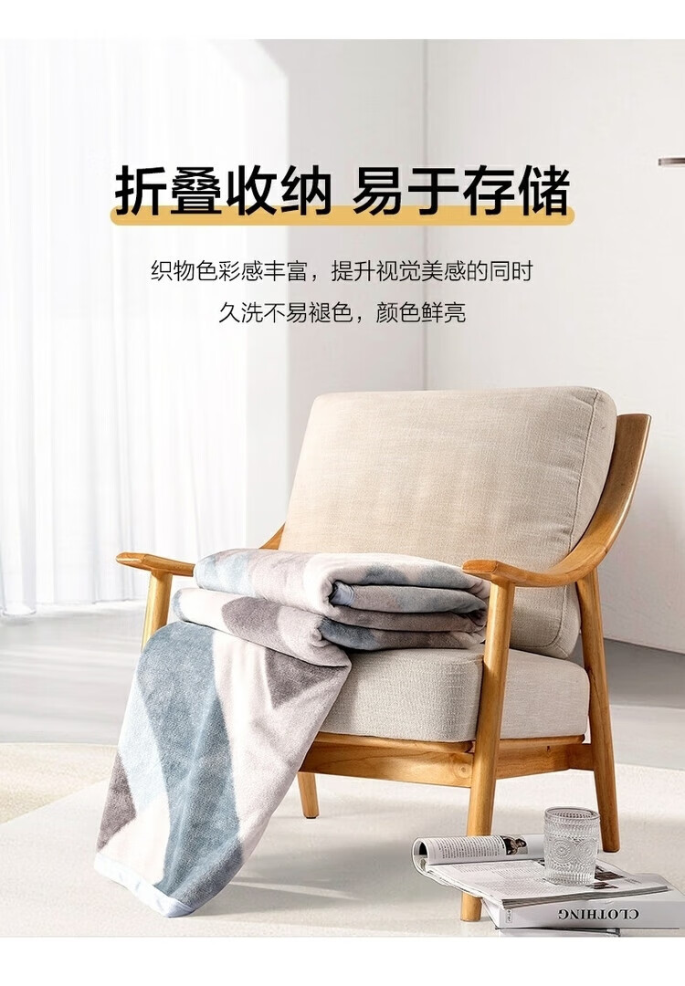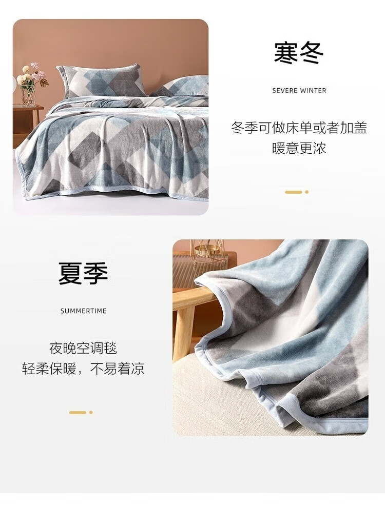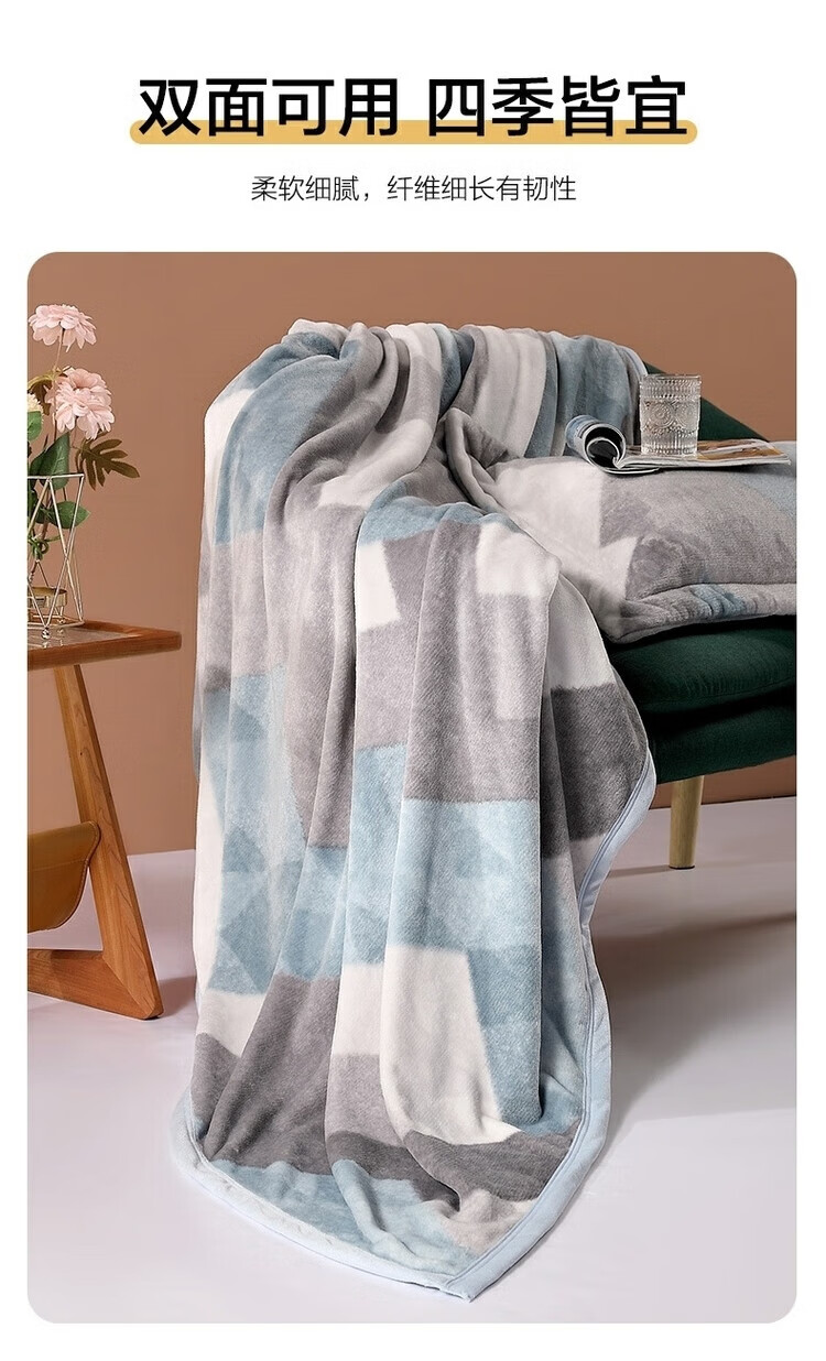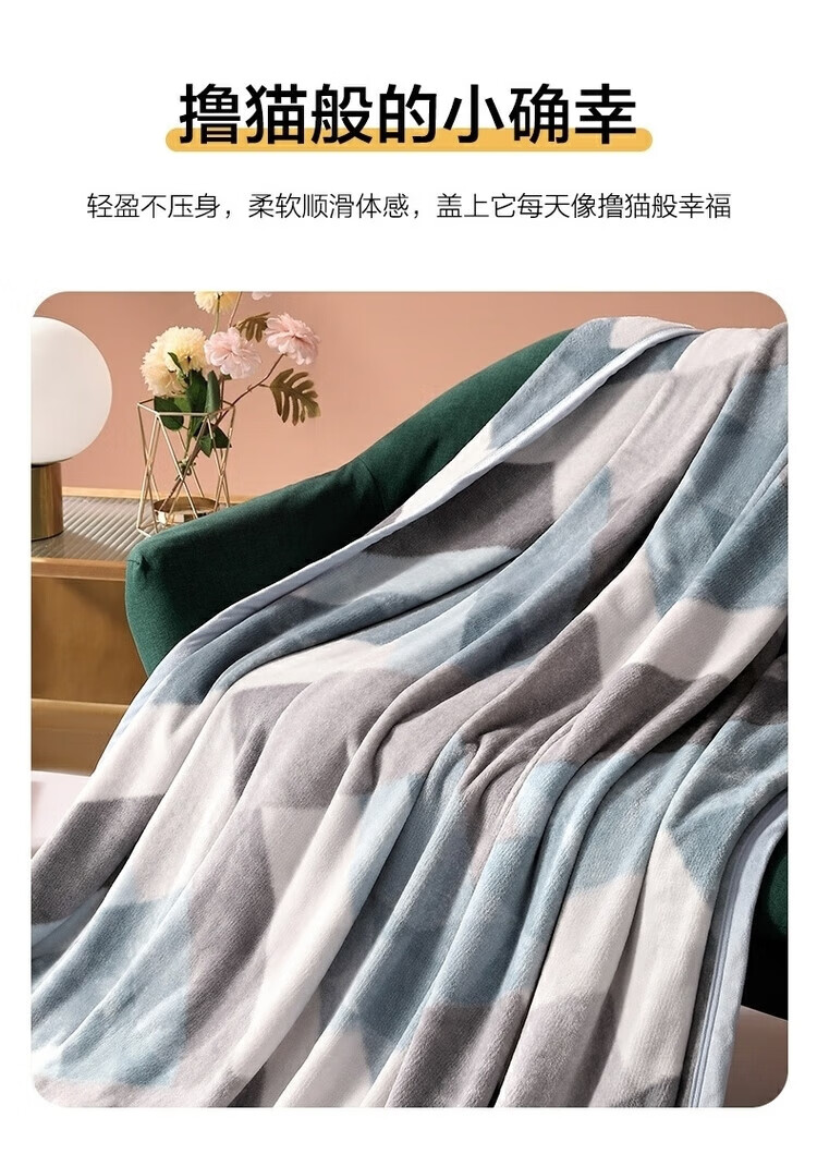 名创优品牛奶绒毛毯空调被子小学生办公室午睡小毯子披肩宿舍单双人冬天毯 方格-灰 【加大双人毯】200*230cm