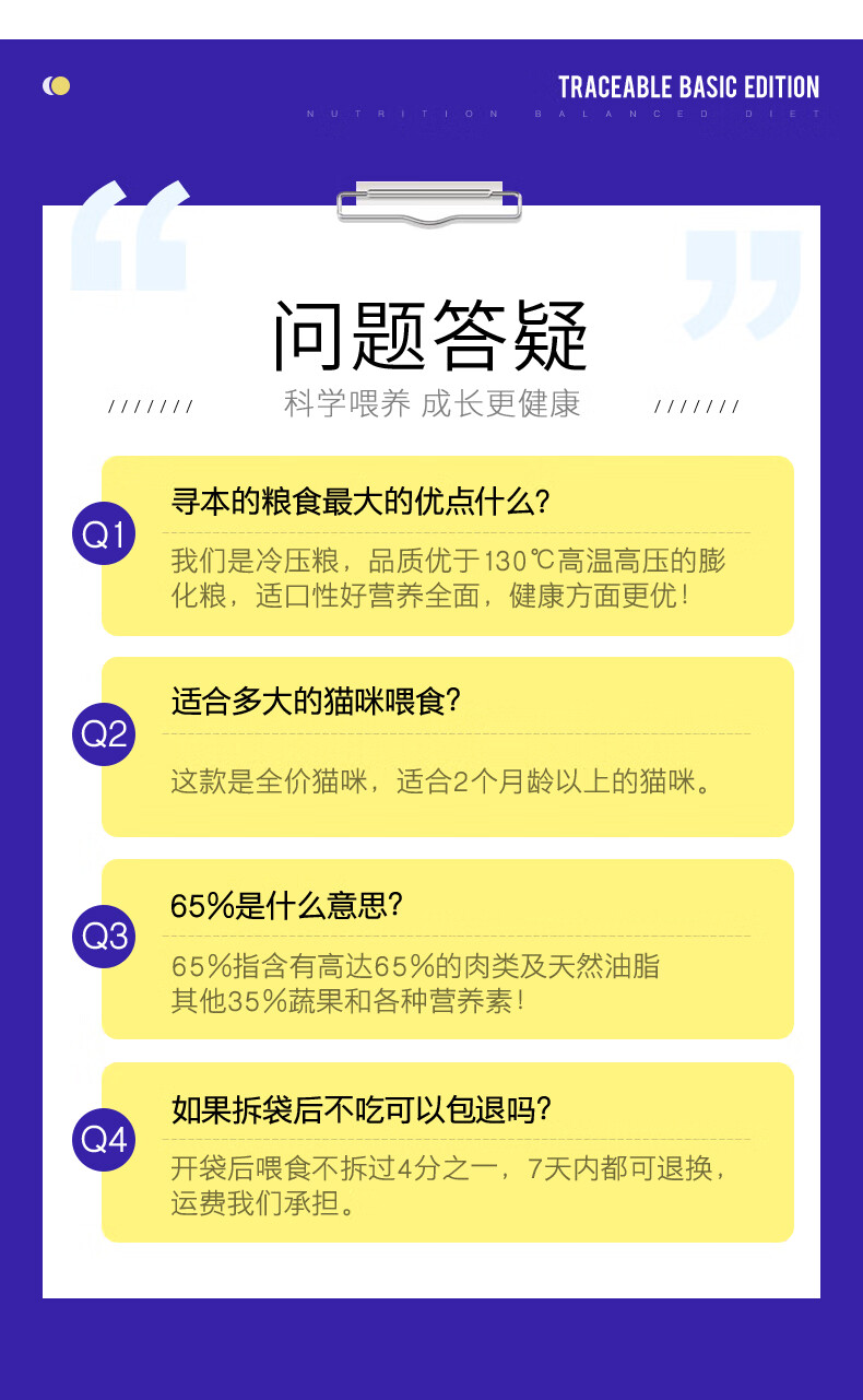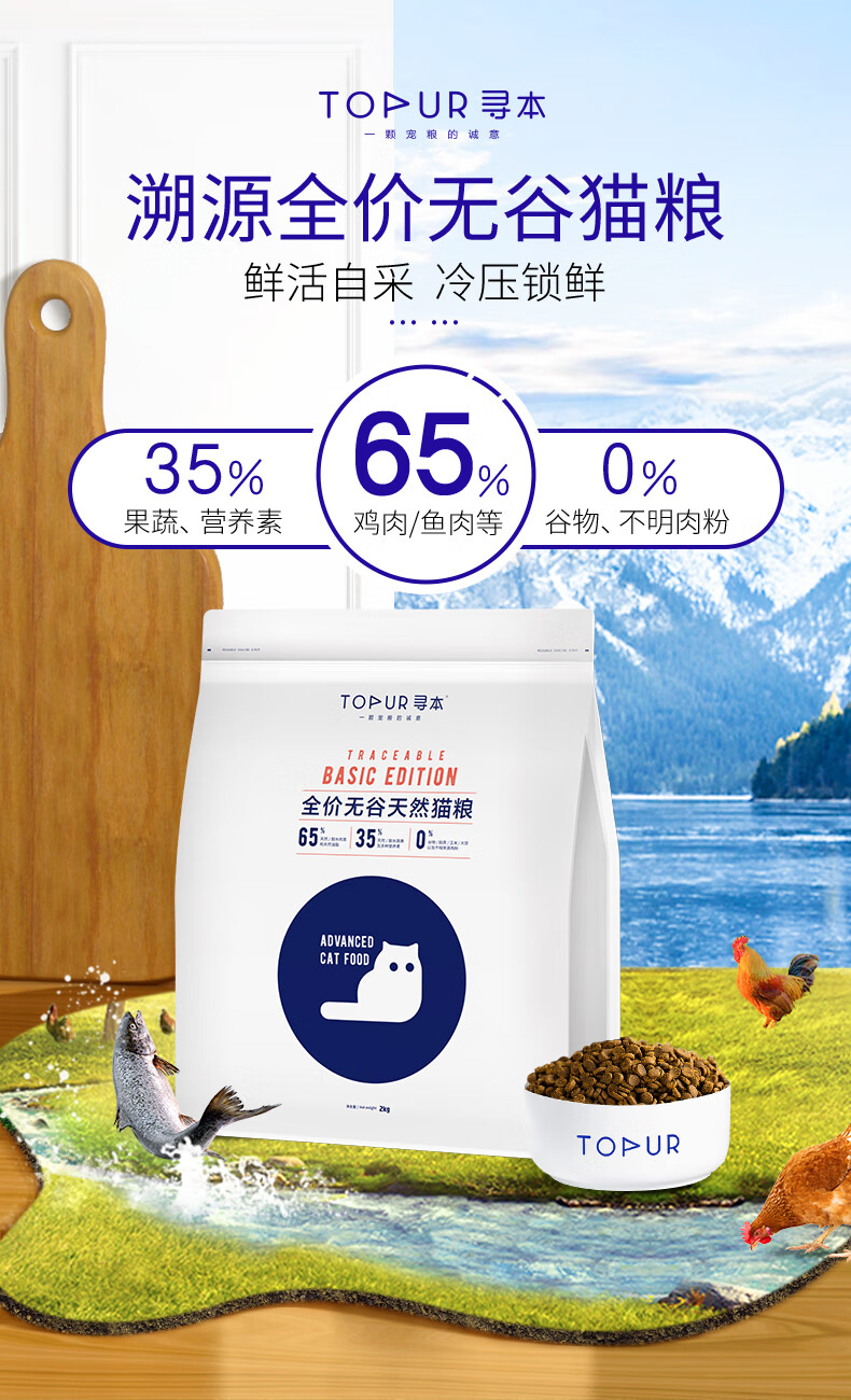 寻本【新旧包装随机发货】65%无谷冷压猫粮2kg幼猫成猫全价猫粮 升级款日常喂全期猫粮8kg