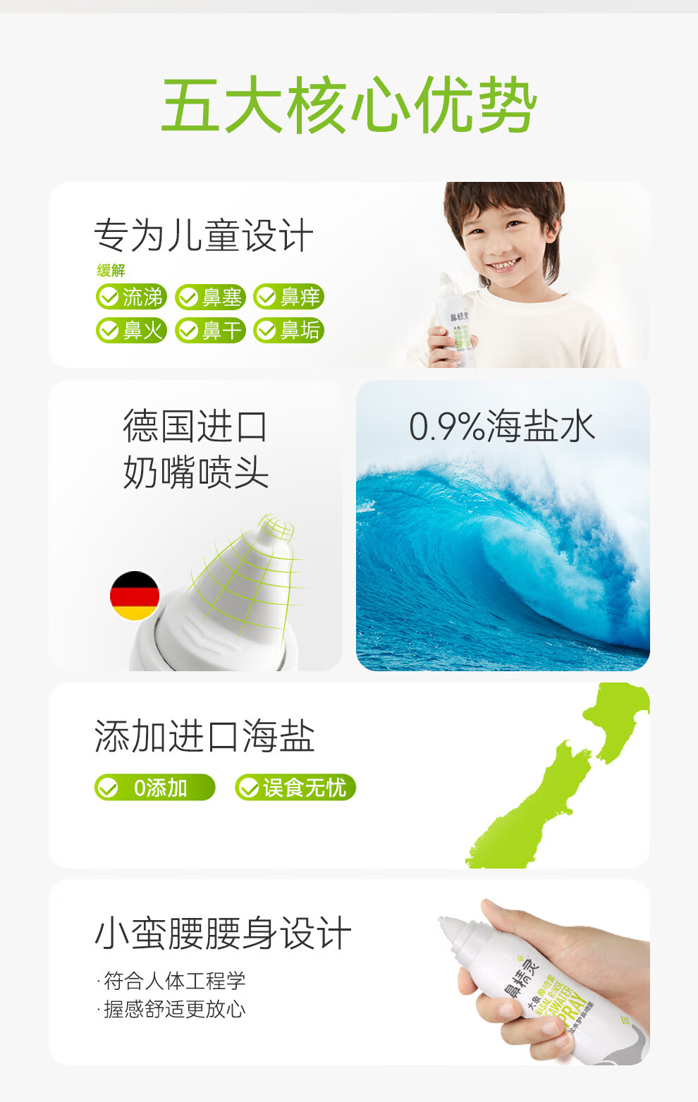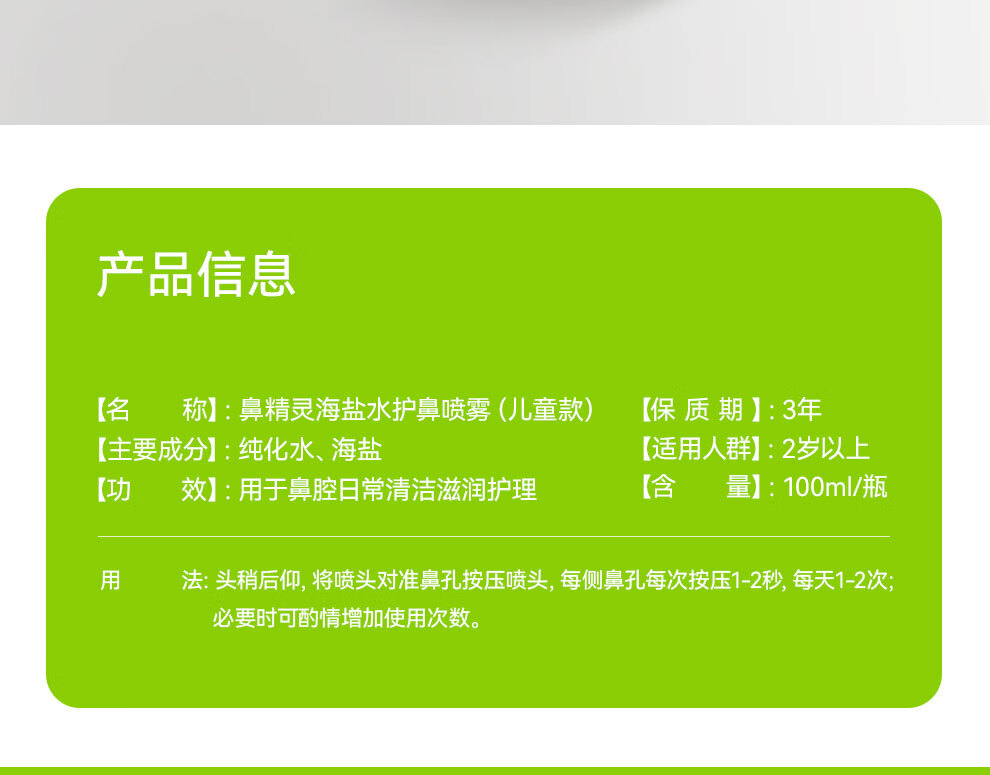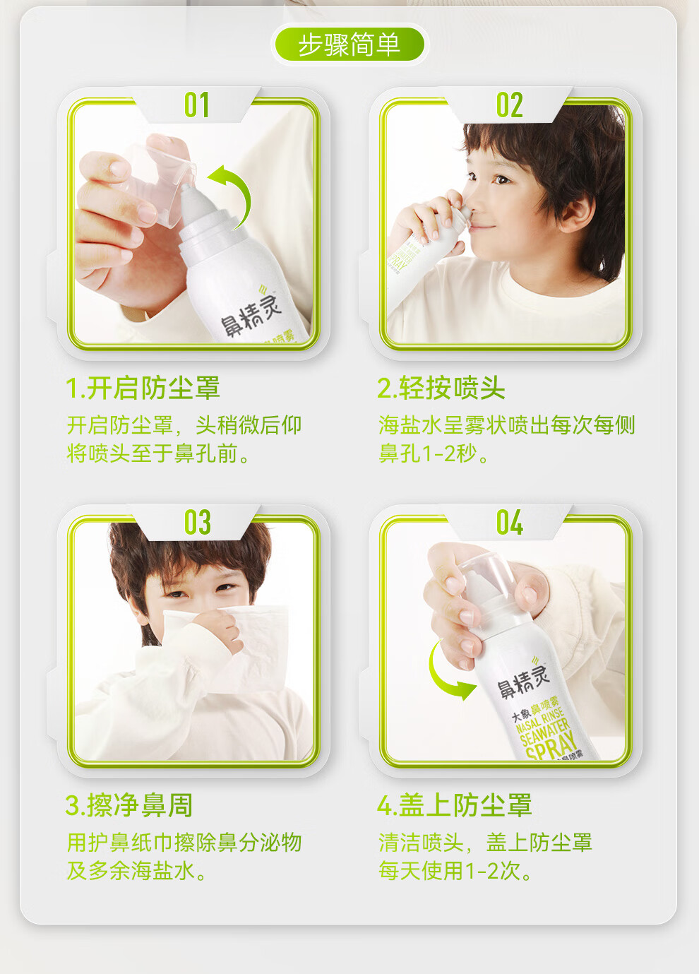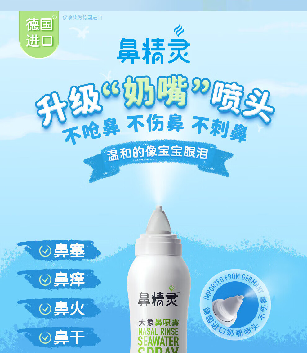 鼻精灵(BEGGI)鼻精灵beggi大象鼻喷海盐水喷雾儿童洗鼻盐水清洗鼻腔 儿童鼻喷 100ml