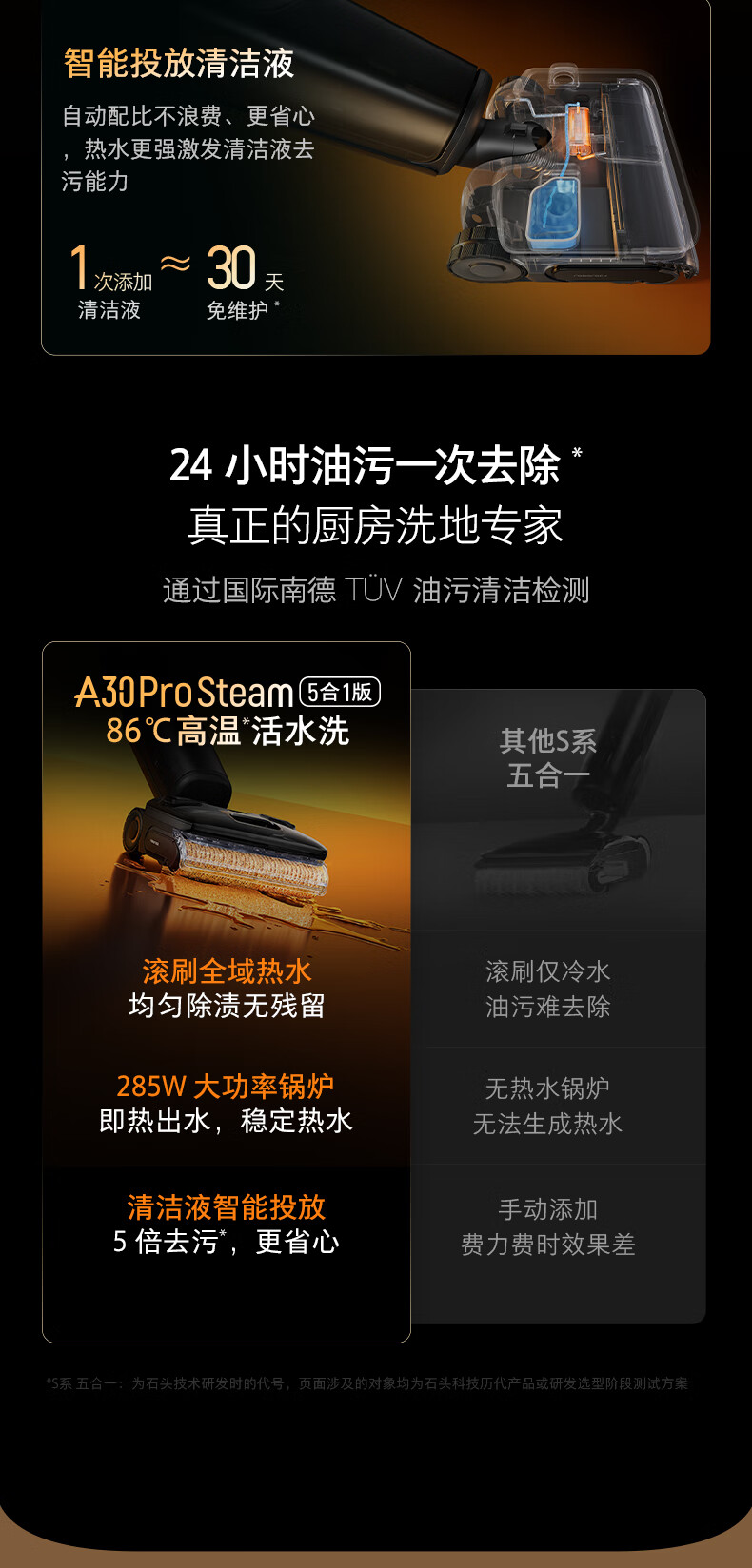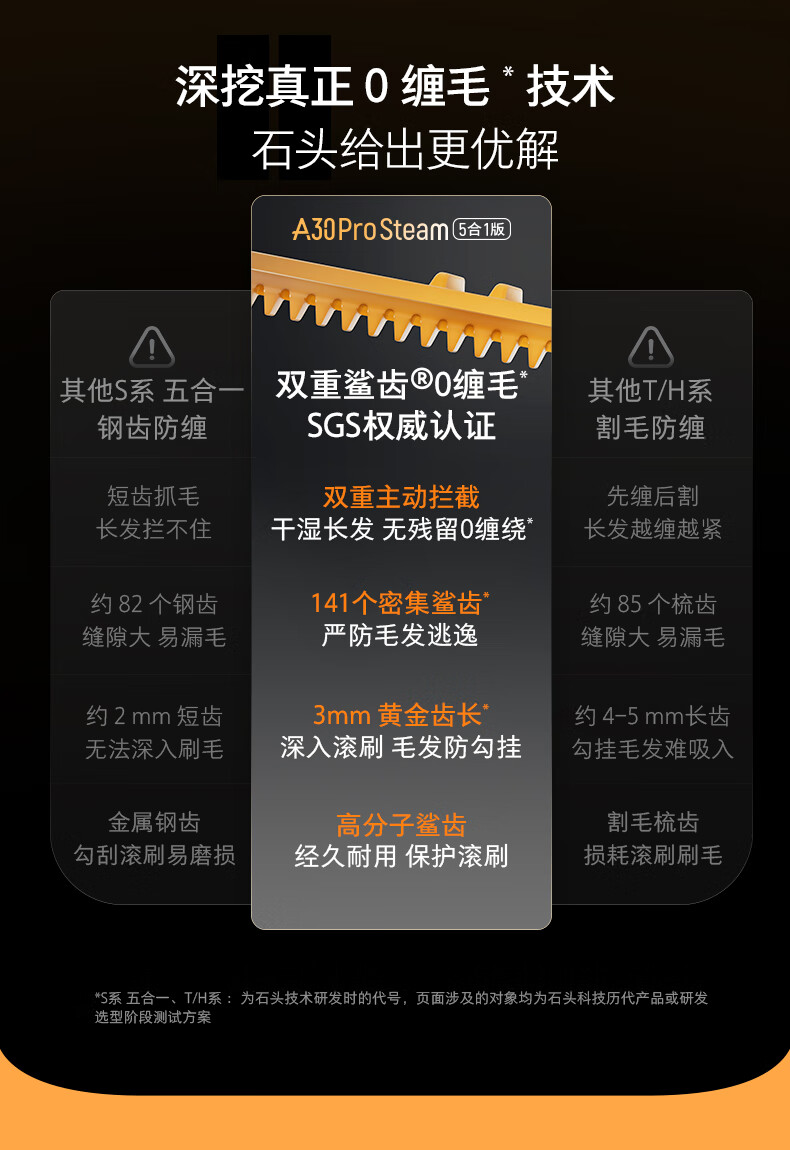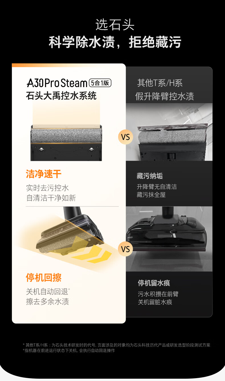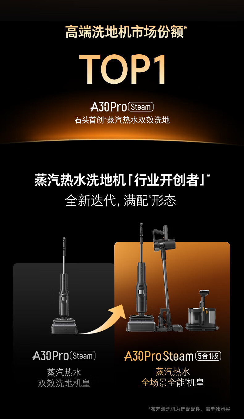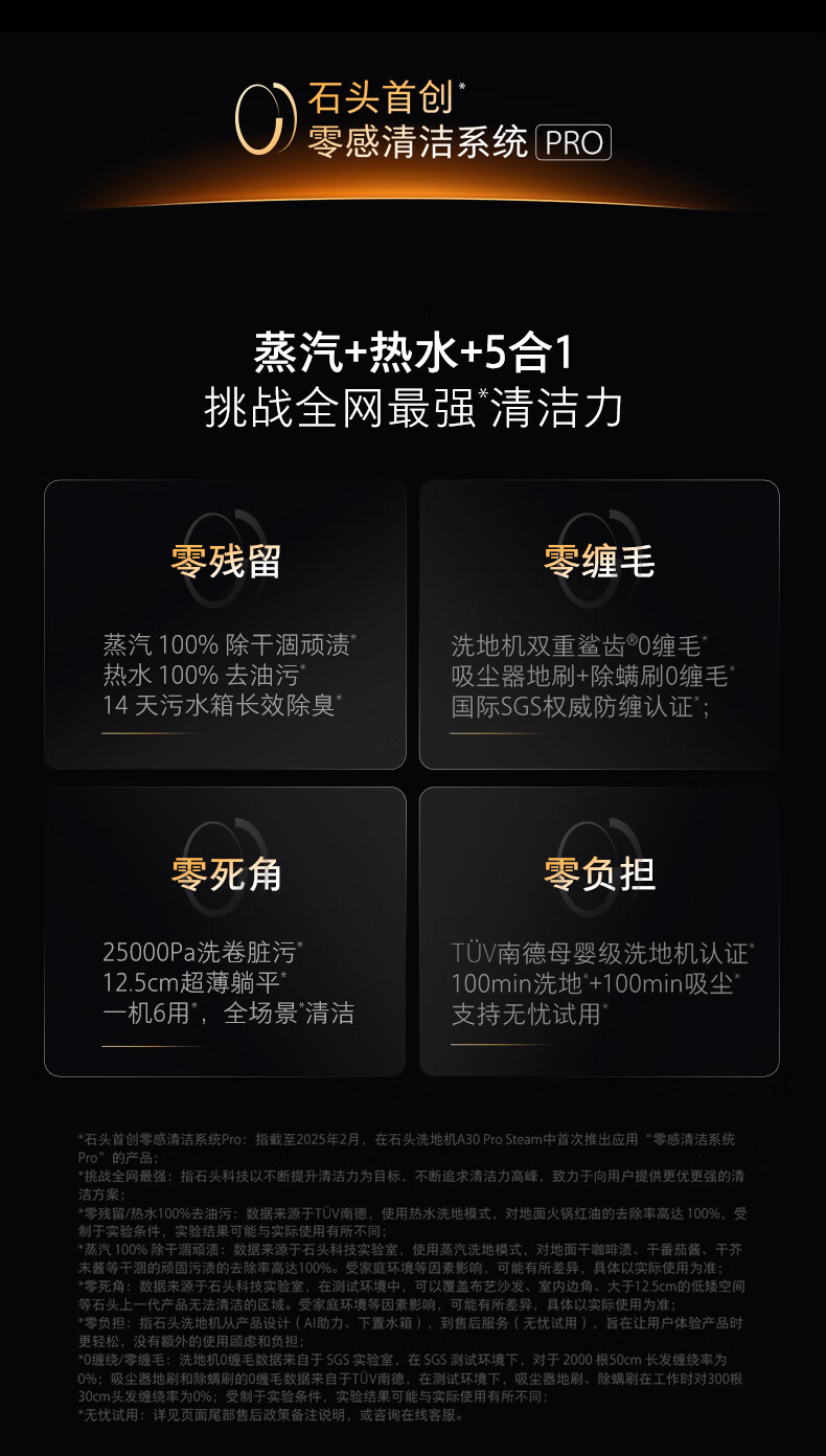 石头(roborock)A30 Pro Steam5合1 全向助力洗地机 160°蒸汽86°C活水洗地长续航 0缠毛0异味扫地机器人