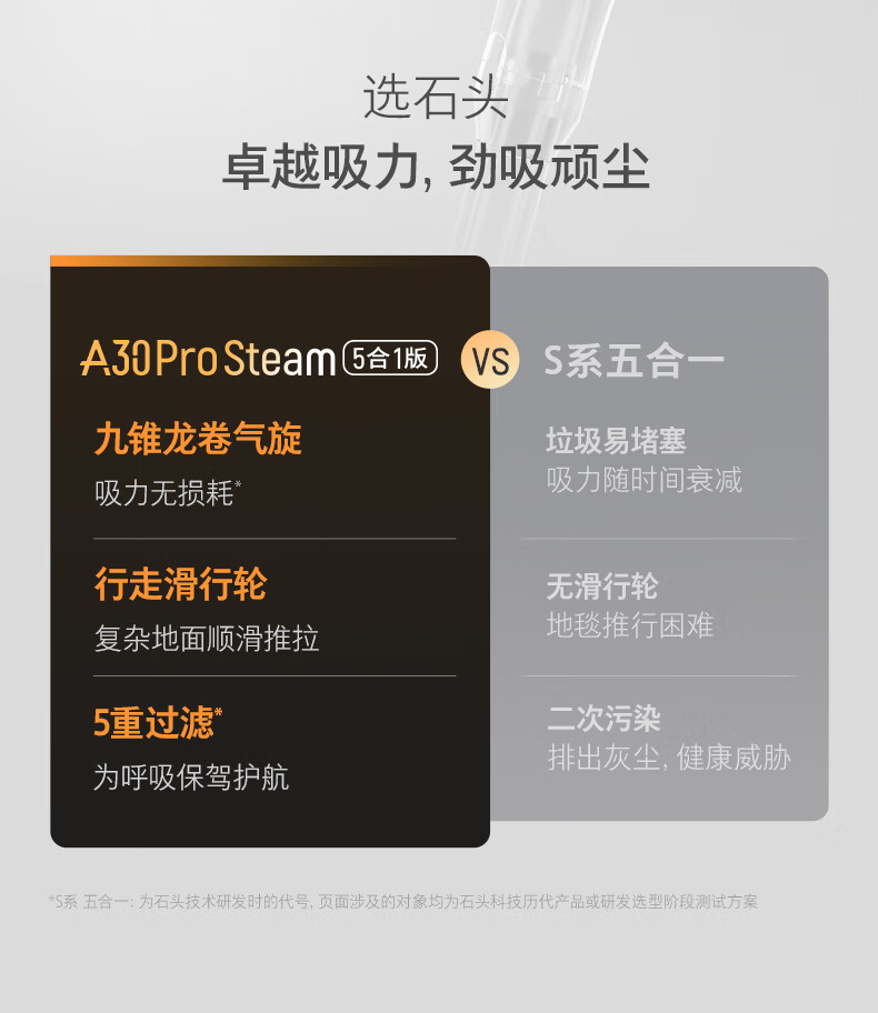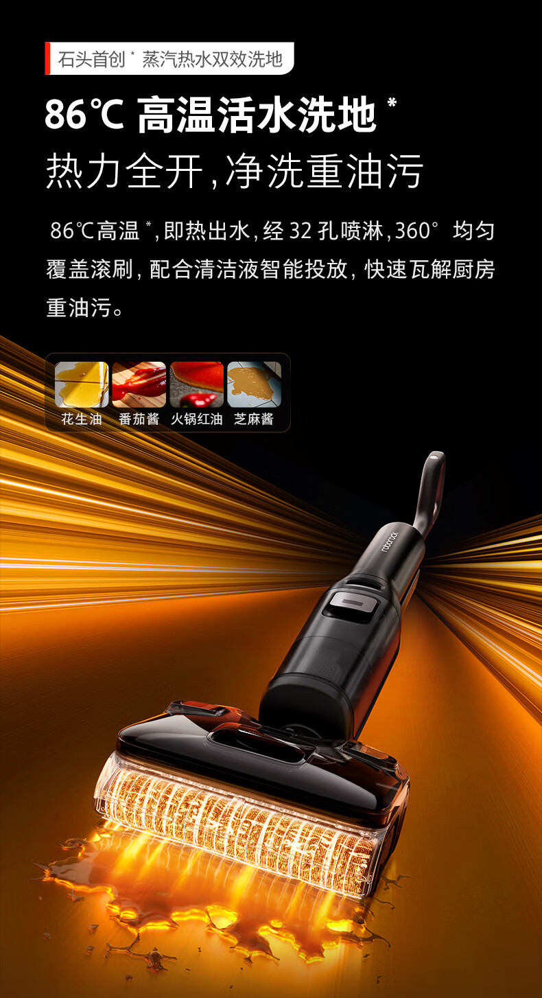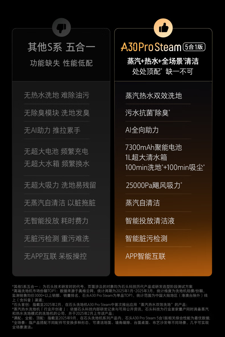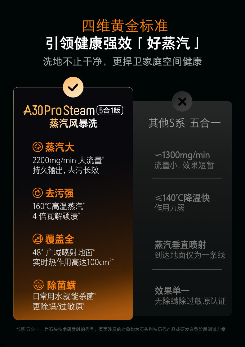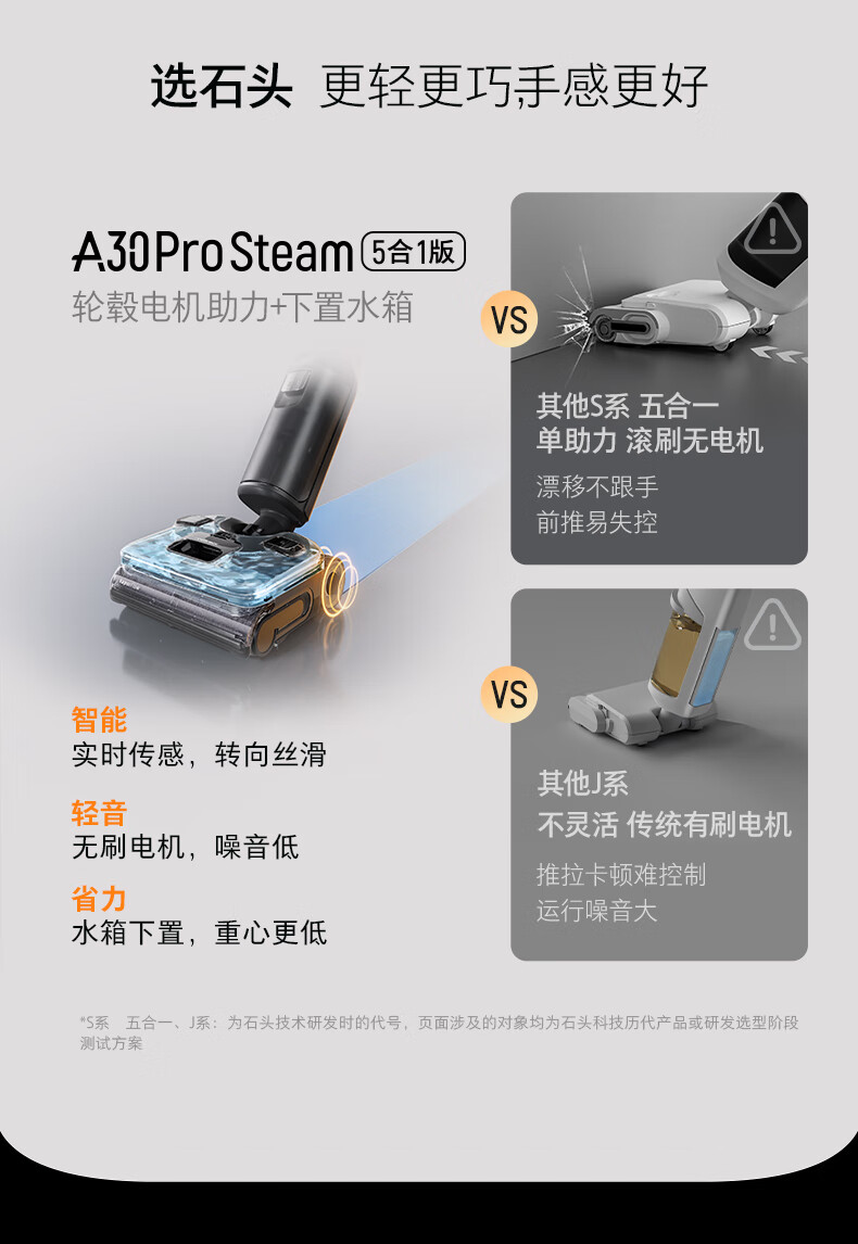 石头(roborock)A30 Pro Steam5合1 全向助力洗地机 160°蒸汽86°C活水洗地长续航 0缠毛0异味扫地机器人