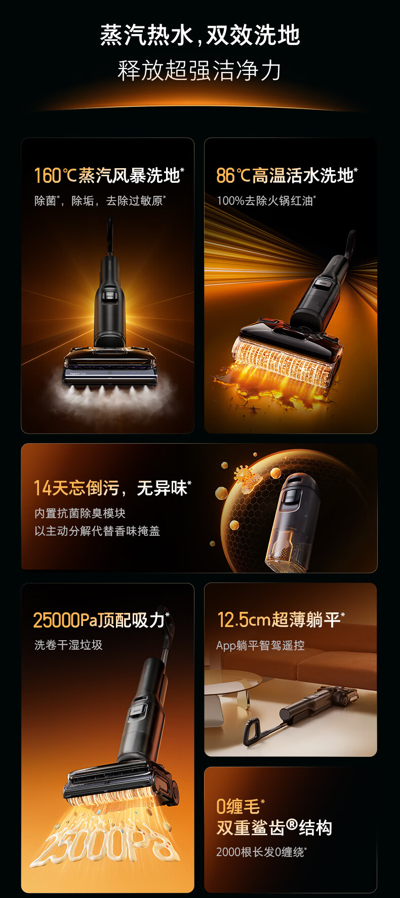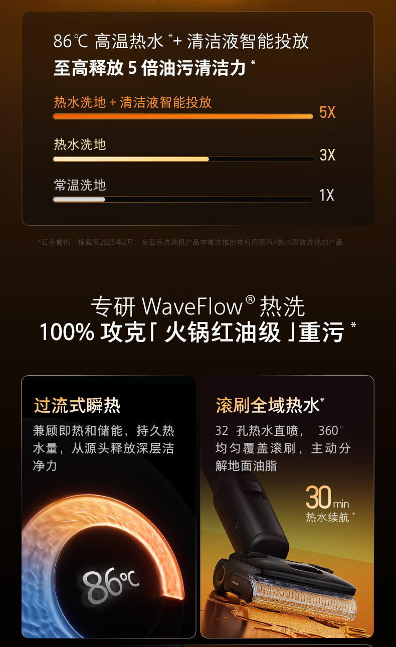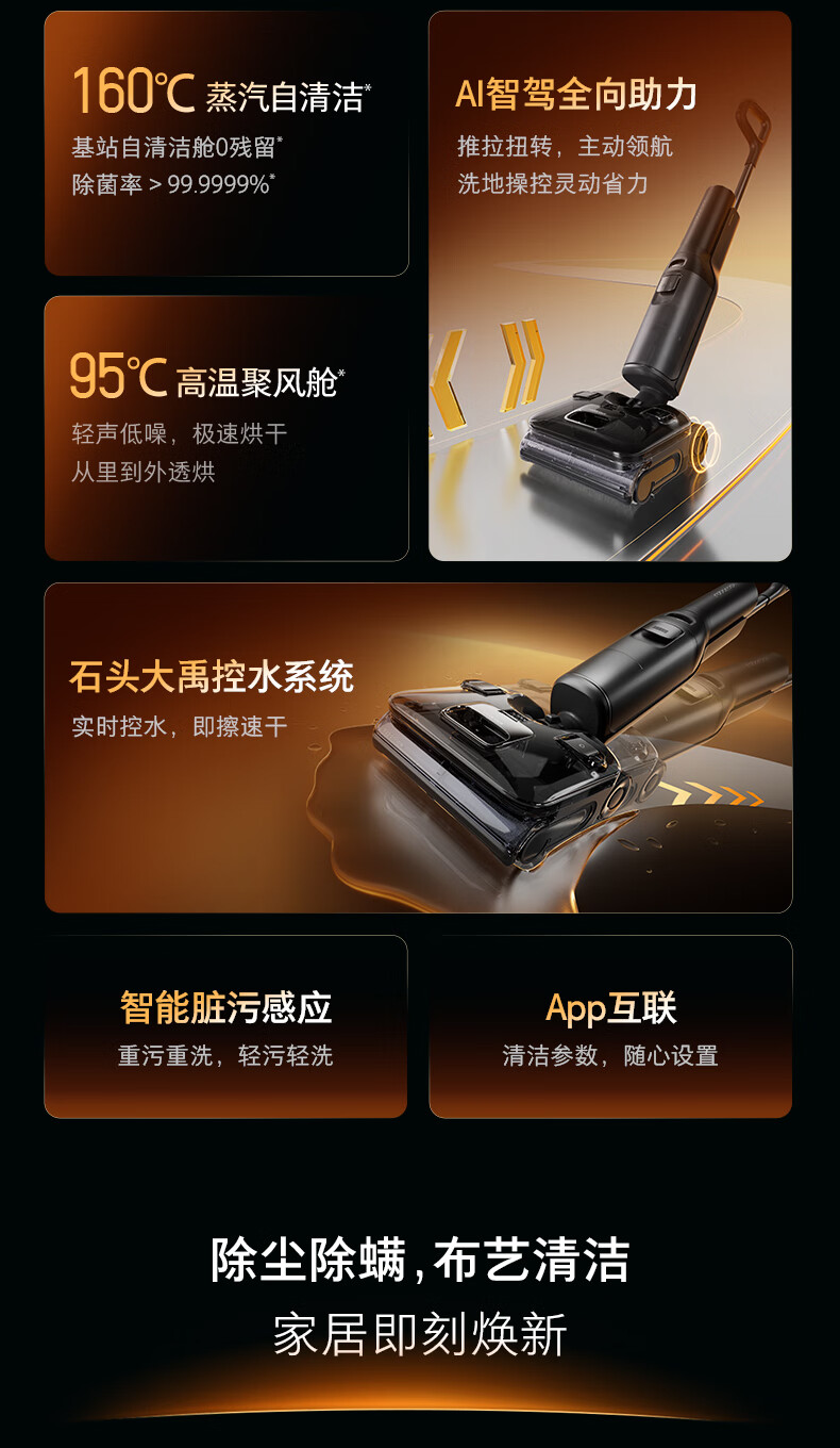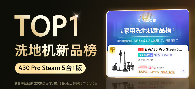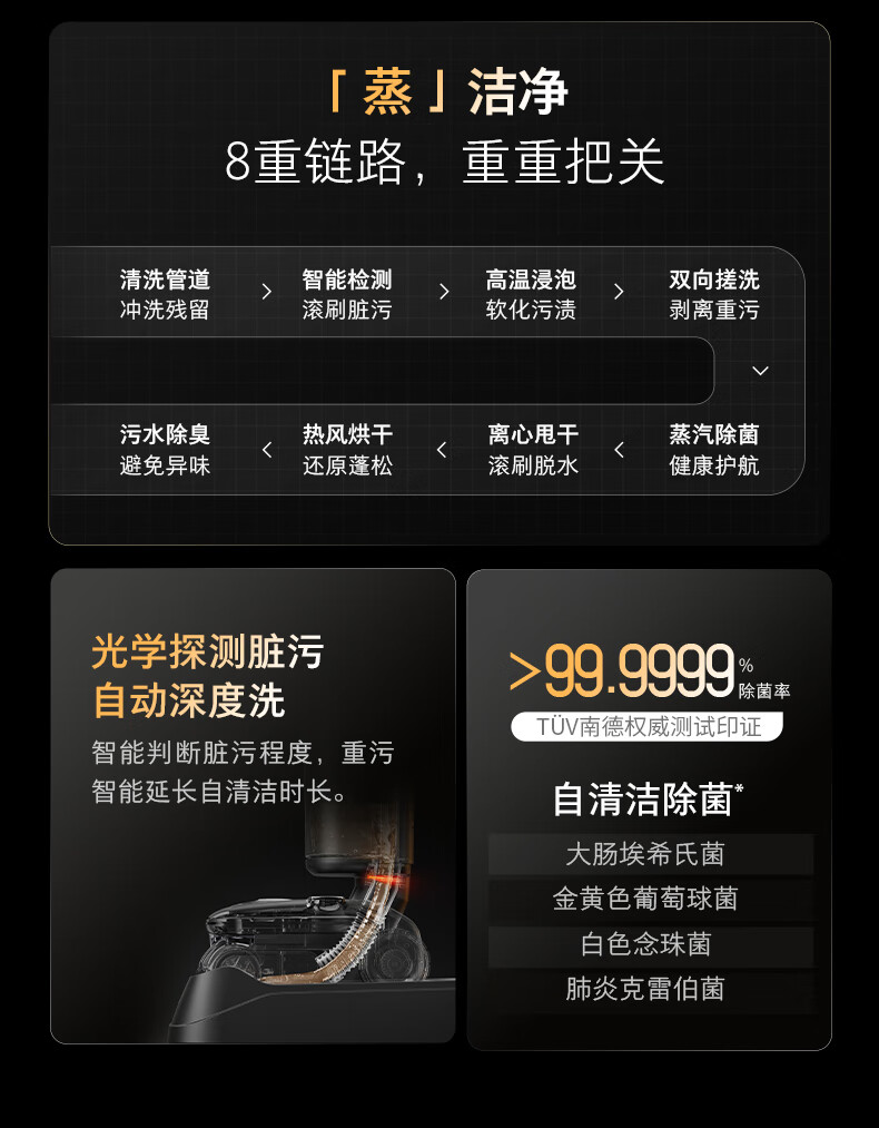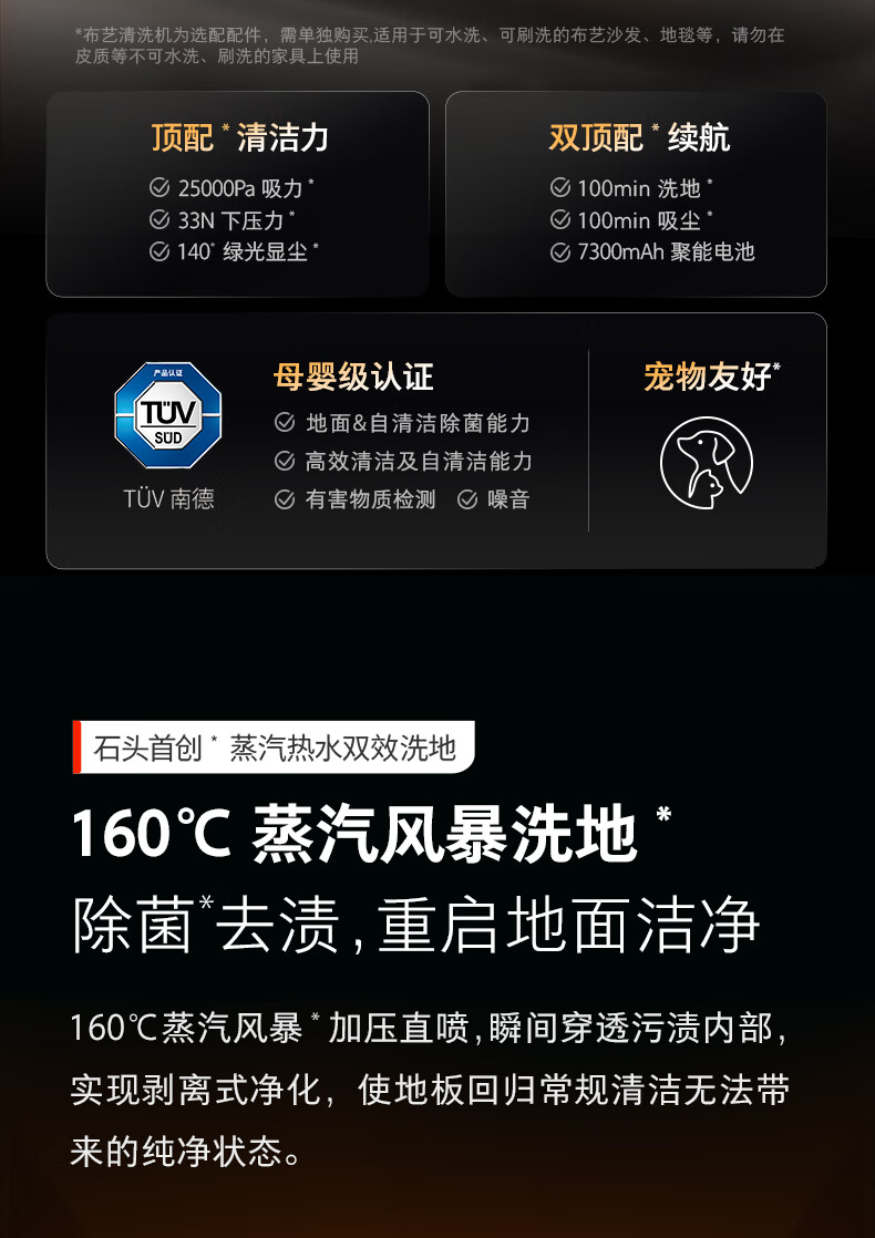 石头(roborock)A30 Pro Steam5合1 全向助力洗地机 160°蒸汽86°C活水洗地长续航 0缠毛0异味扫地机器人