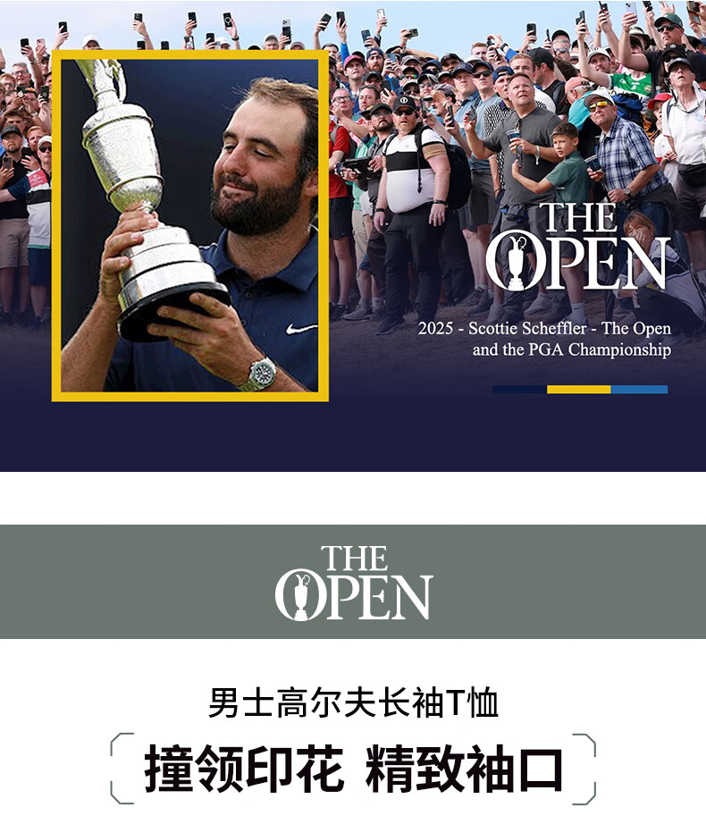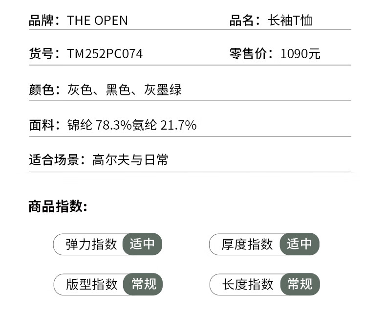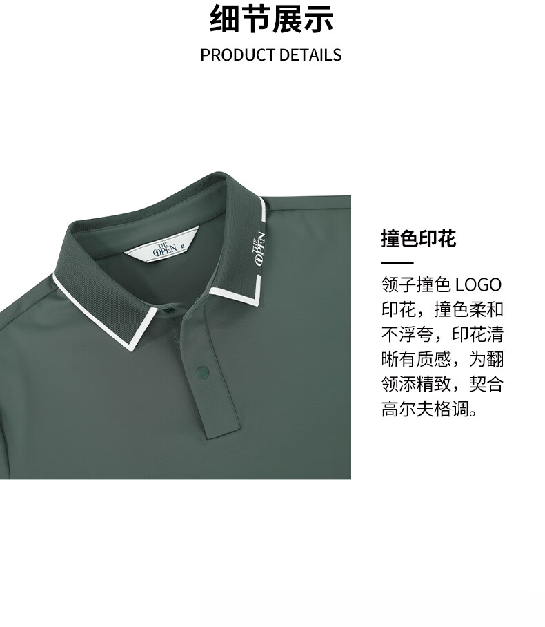 THE OPEN CHAMPIONSHIP英国公开赛高尔夫服装男装长袖T恤25秋冬弹力舒适保暖御寒POLO衫 灰墨绿 M