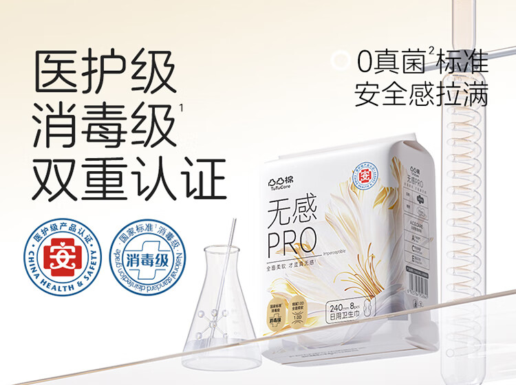 凸凸棉医护级卫生巾透气瞬吸消毒级姨妈巾防侧漏日夜组合 纯日用5包40片