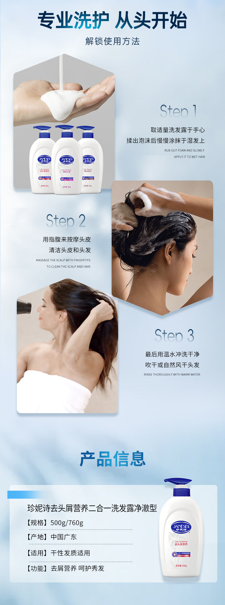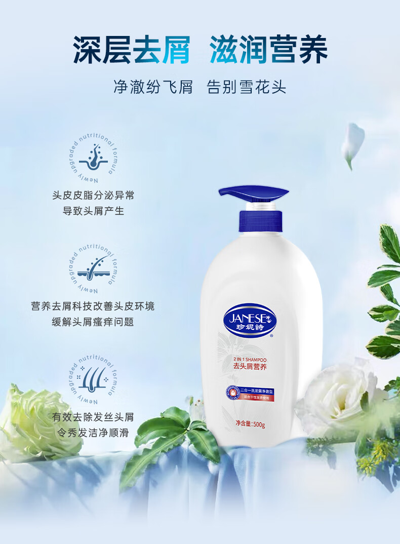 珍妮诗(janese)去屑止痒洗发露控油去油洗发露500g去头屑营养二合一