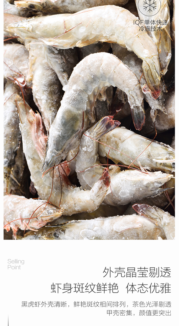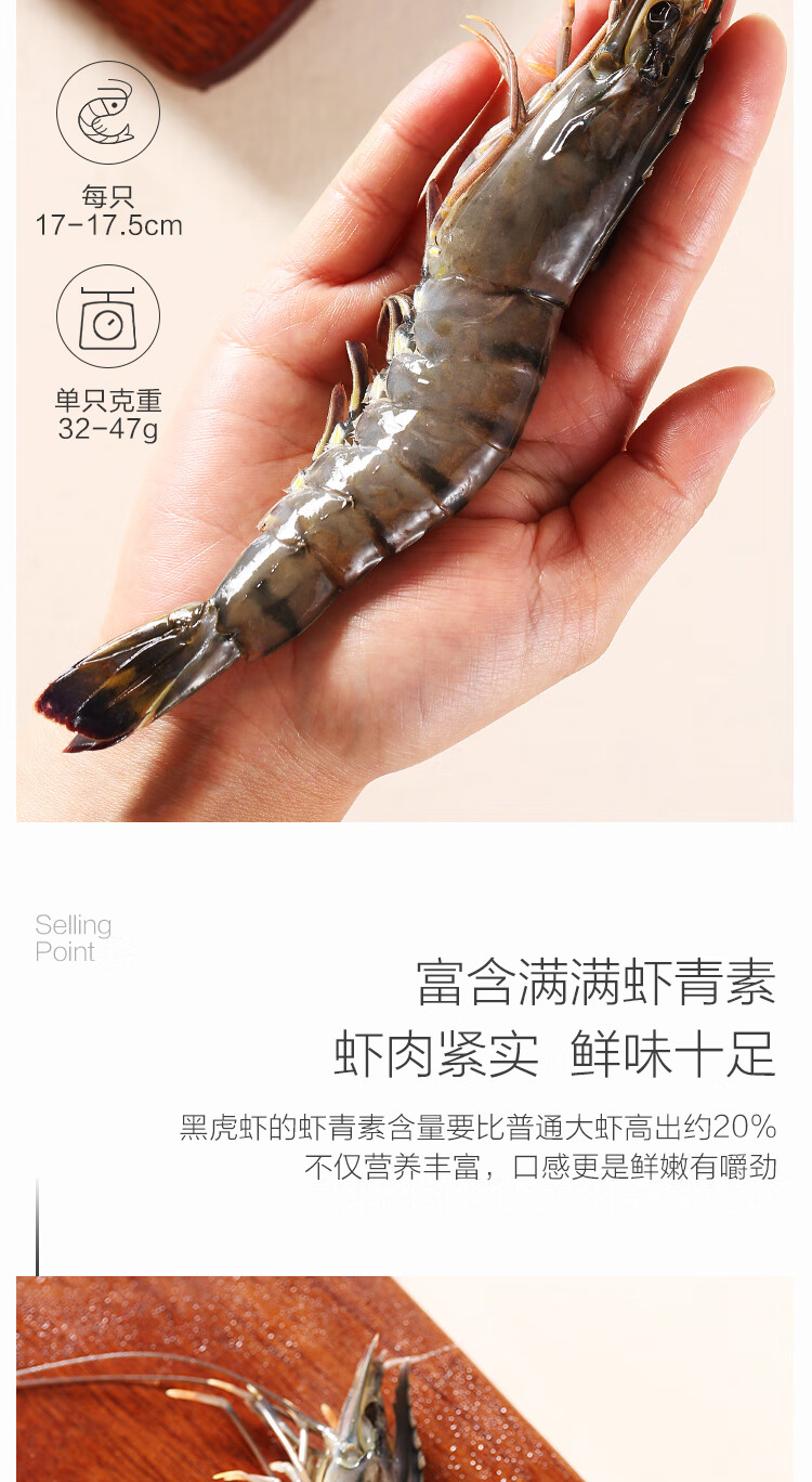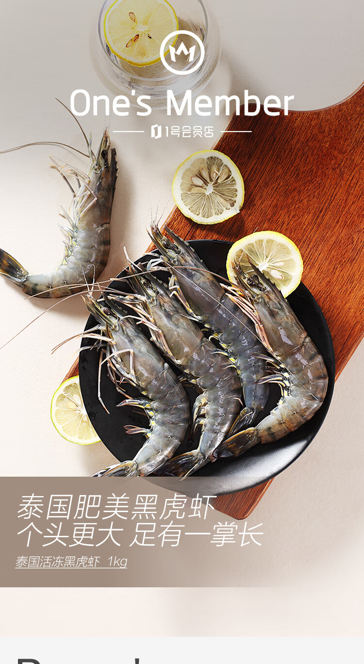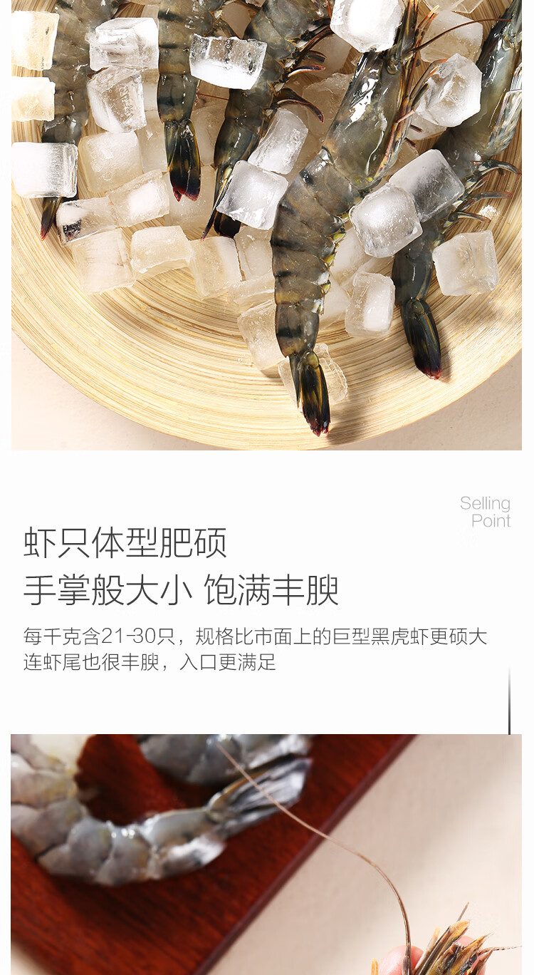 1号会员店泰国活冻黑虎虾 零保水剂 巴掌大虾 净重2斤21-30只/kg