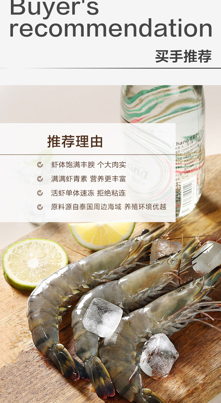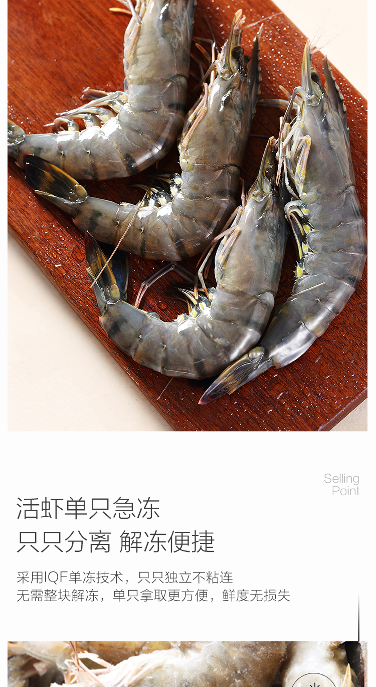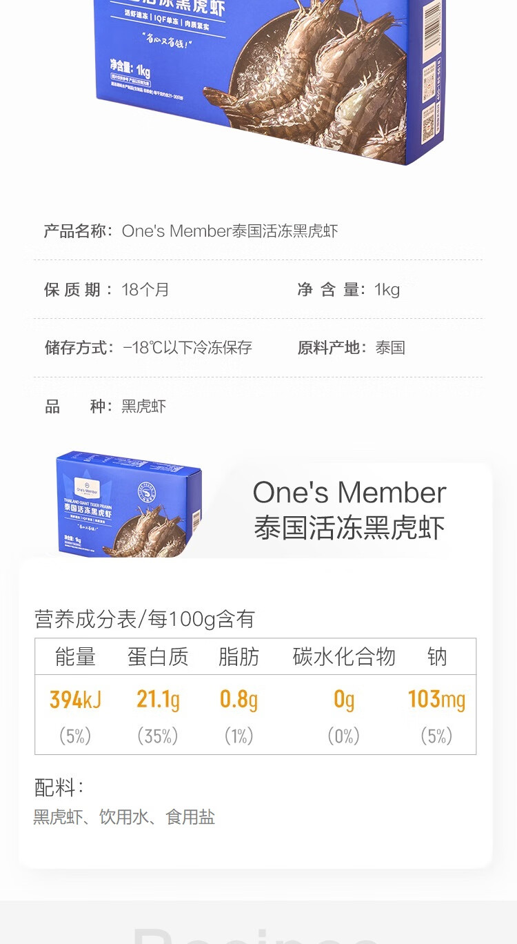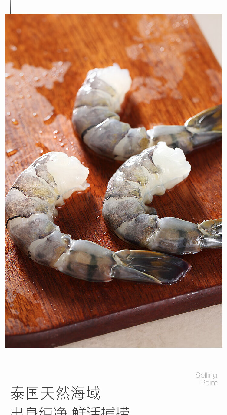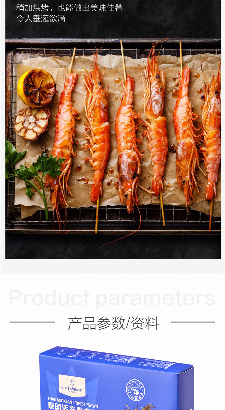 1号会员店泰国活冻黑虎虾 零保水剂 巴掌大虾 净重2斤21-30只/kg