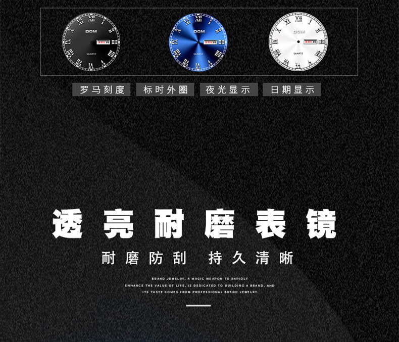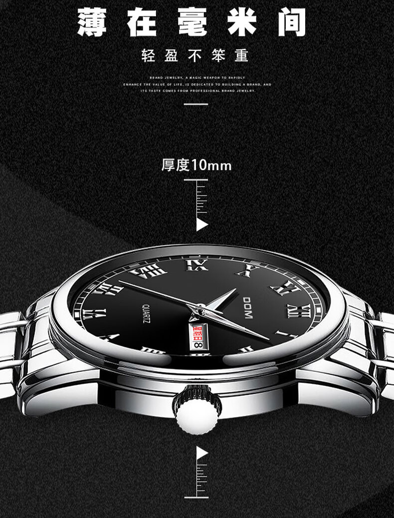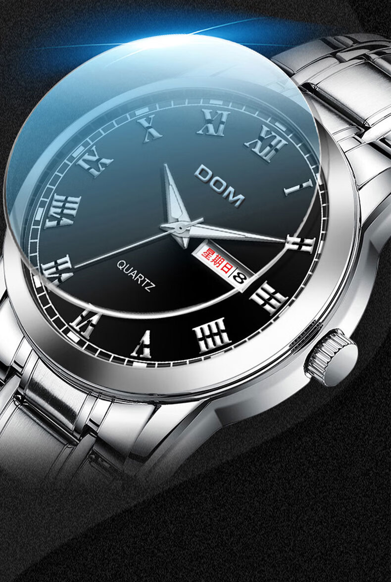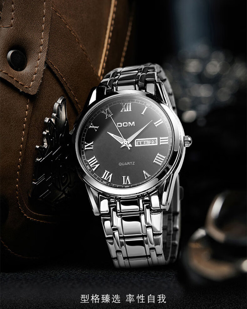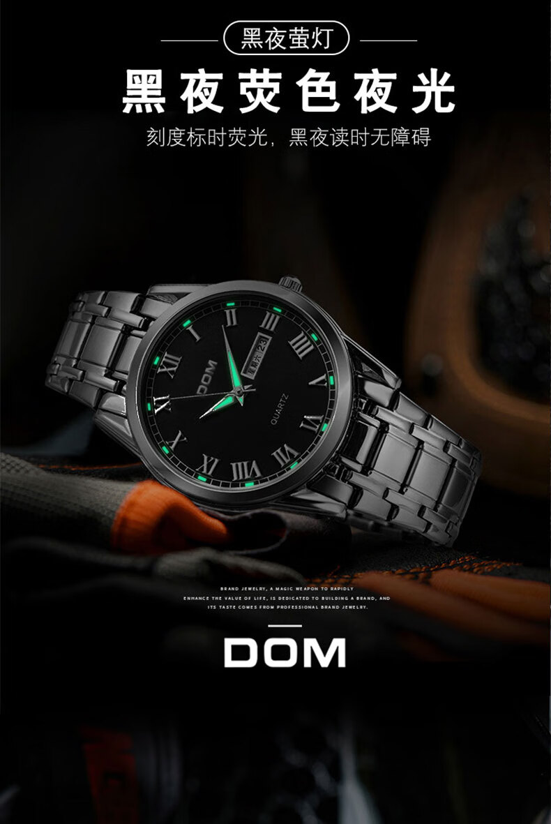 DOM复古罗马超薄手表男士机械风夜光防水石英运动品牌十大名表