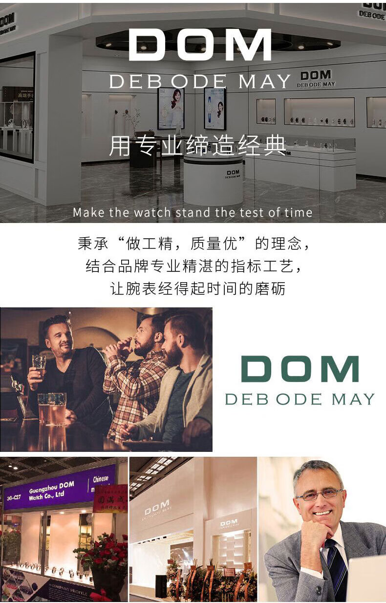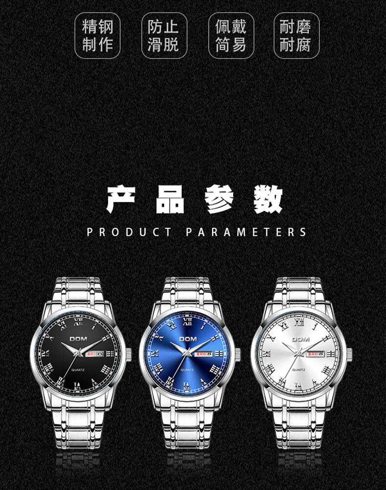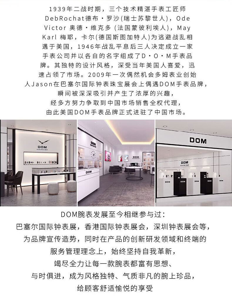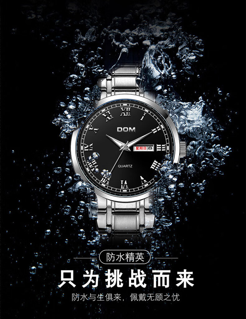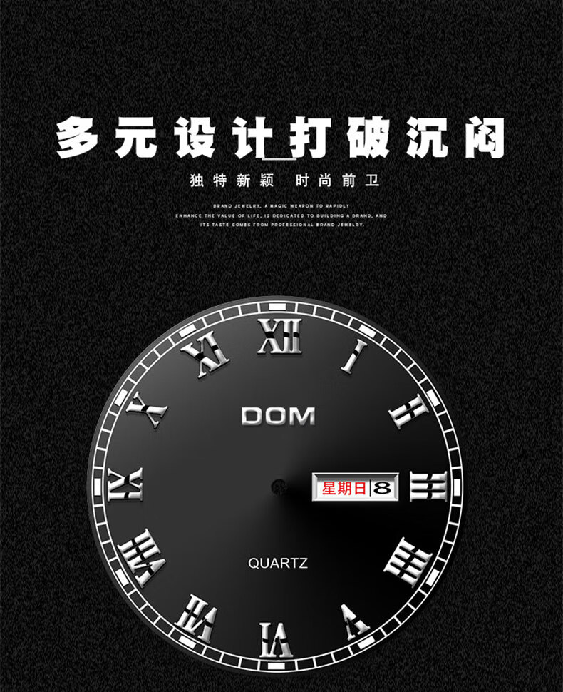DOM复古罗马超薄手表男士机械风夜光防水石英运动品牌十大名表