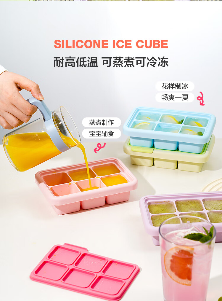 乐扣乐扣(LOCK&LOCK)硅胶辅食冰格 婴儿辅食冷冻分装储存儿童宝宝蒸糕模具 粉色