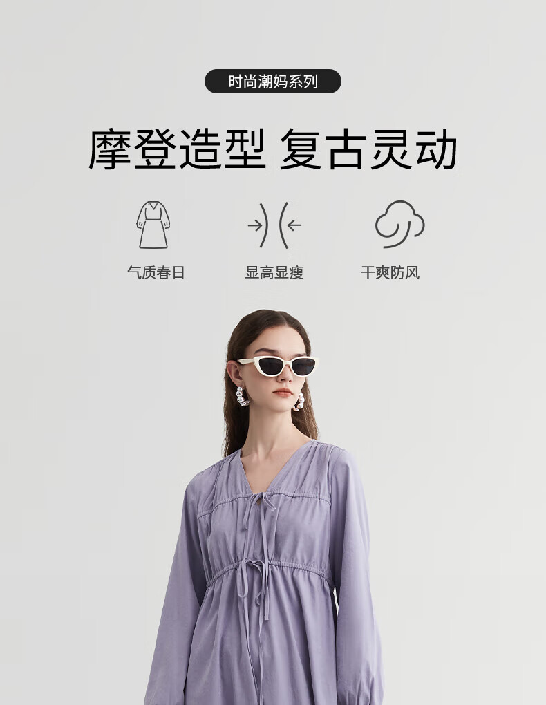 嫚熙(EMXEE)孕妇装秋装连衣裙洋气时髦百搭遮肚子不显怀孕妇裙女 雾霾蓝【抽绳款】 XL