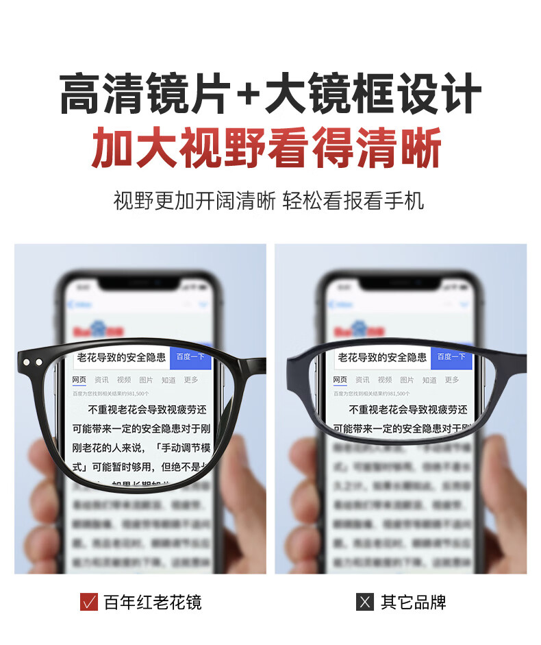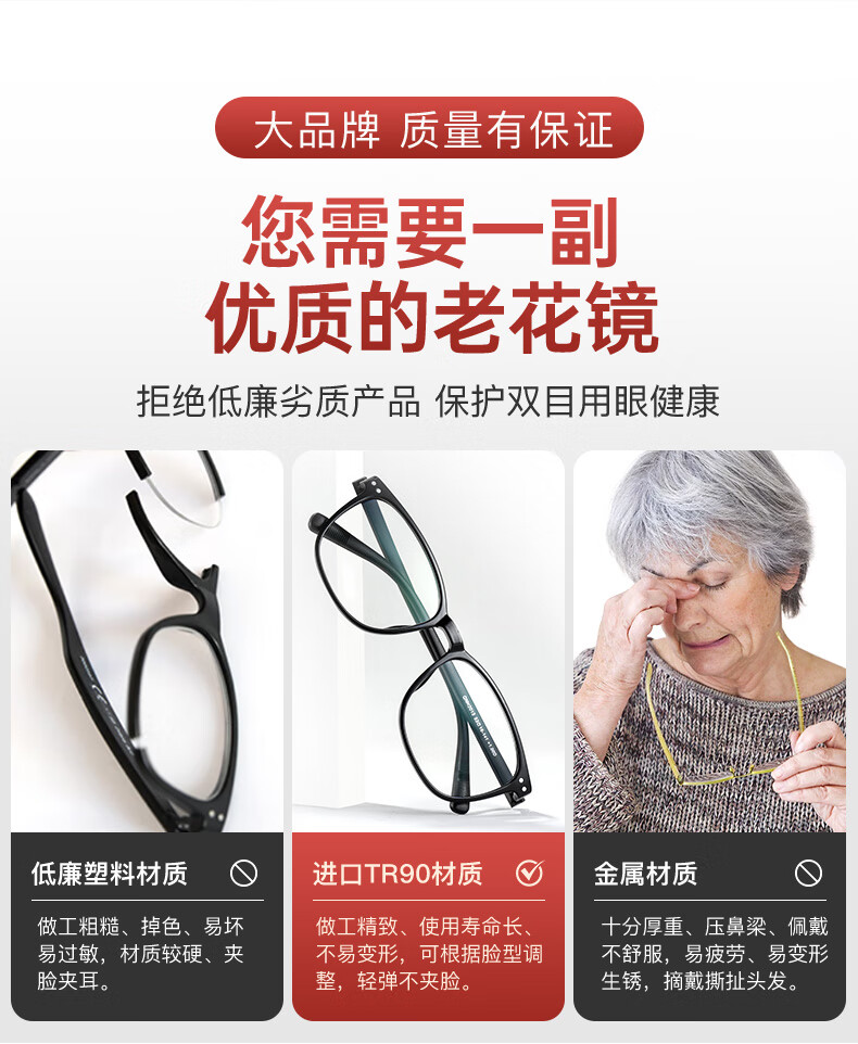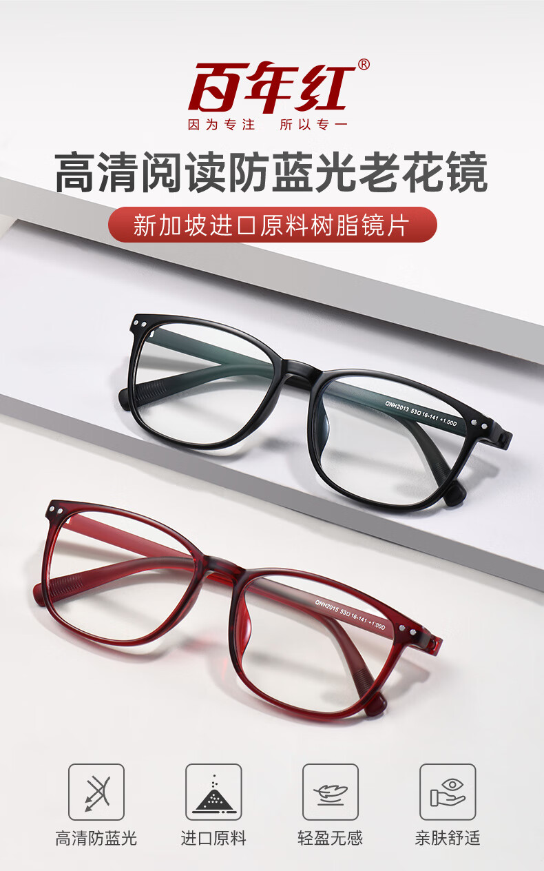 百年红防蓝光老花镜男老花老光眼镜TR超轻大框花镜女2015开学