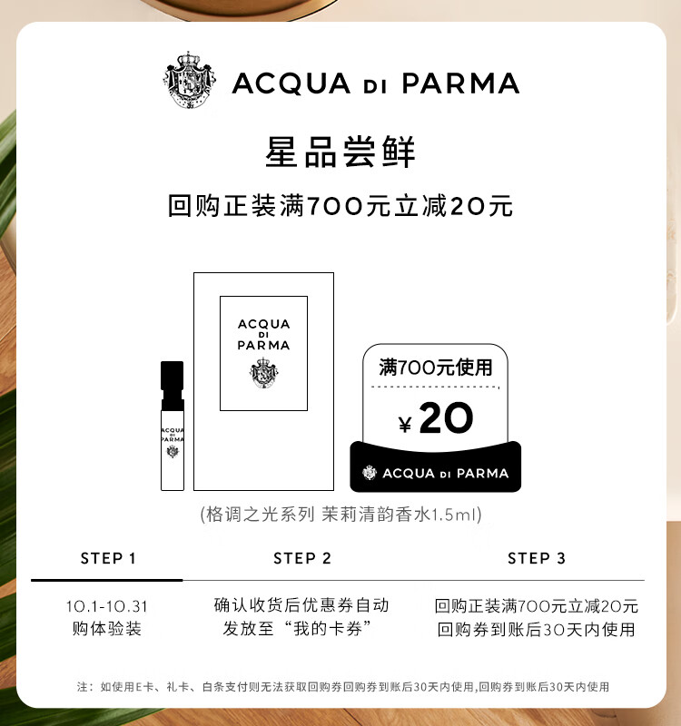 帕尔玛之水(ACQUA DI PARMA)新香体验礼格调茉莉清韵香水1.5ml+20元回购券