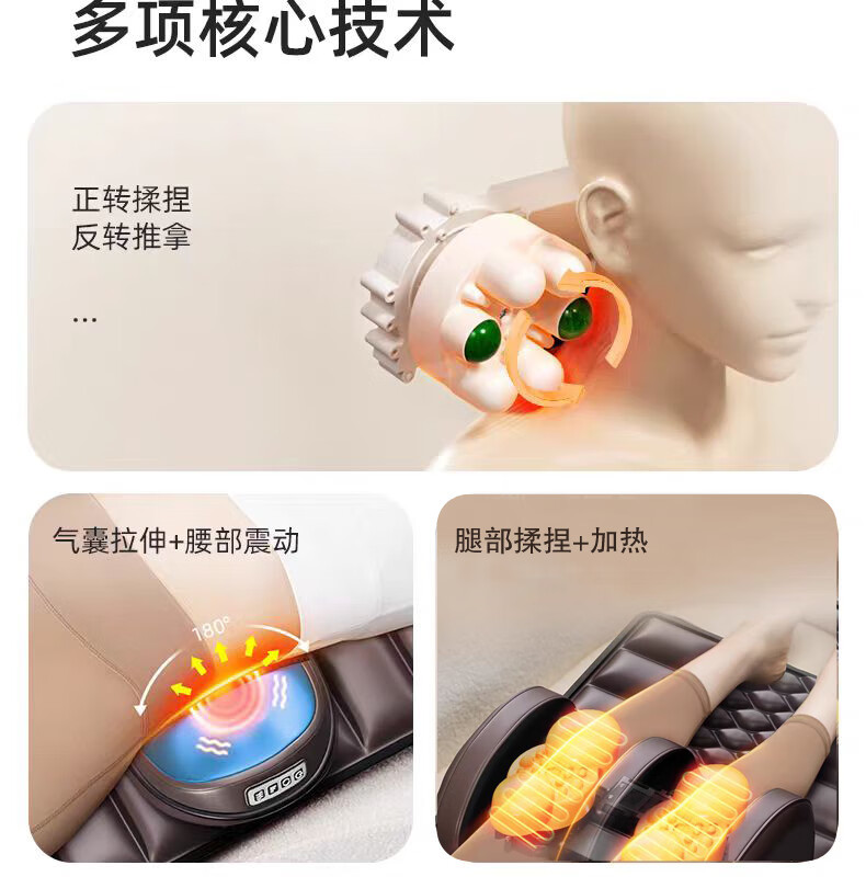 奥克斯AUX按摩垫全身躺垫按摩靠垫按摩仪颈椎按摩器多功能床垫家用按摩椅腰背颈肩生日父母情人节礼物 至尊皮革【升级玉石机芯+电动腰托+全身按摩+药枕】 情人节礼物送男女老师朋友
