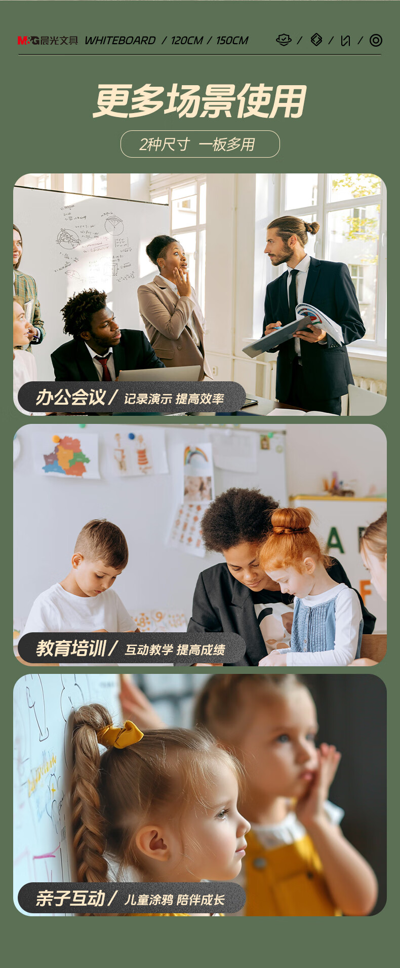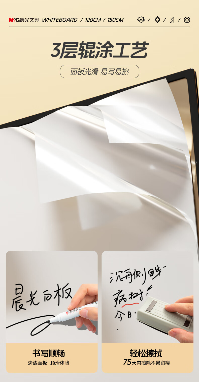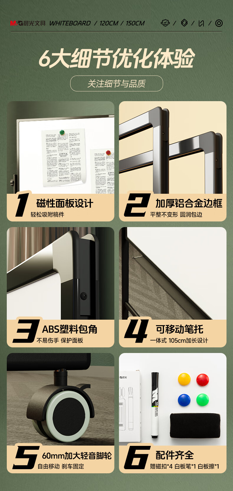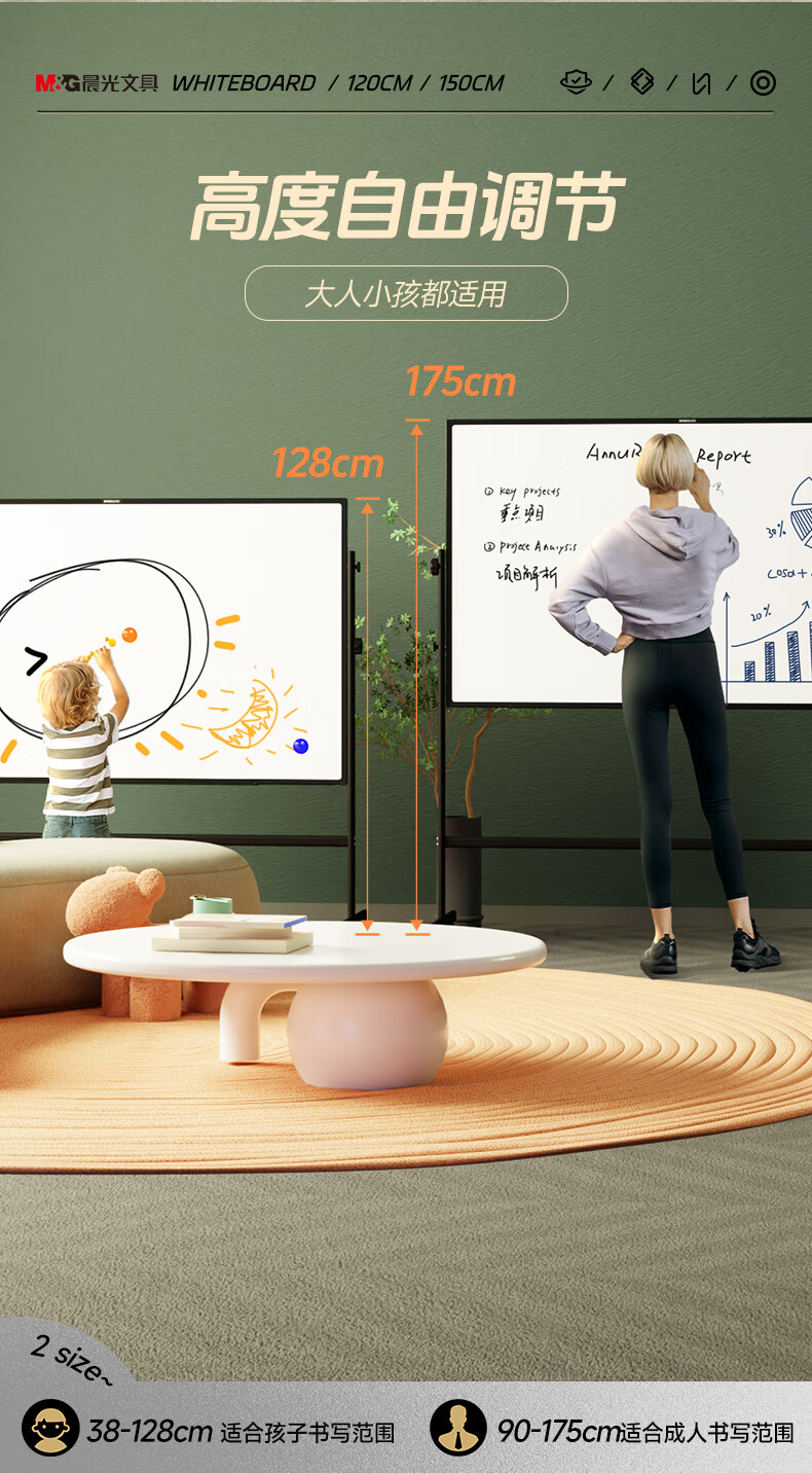 晨光(M&G)家用高端款90*150cmH型支架式白板 双面书写可移动升降儿童画板/办公会议白板黑板/写字板ADB983CS