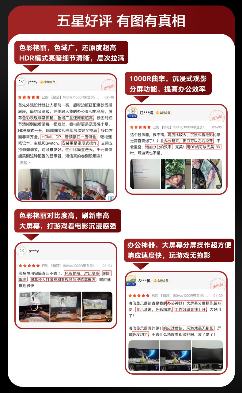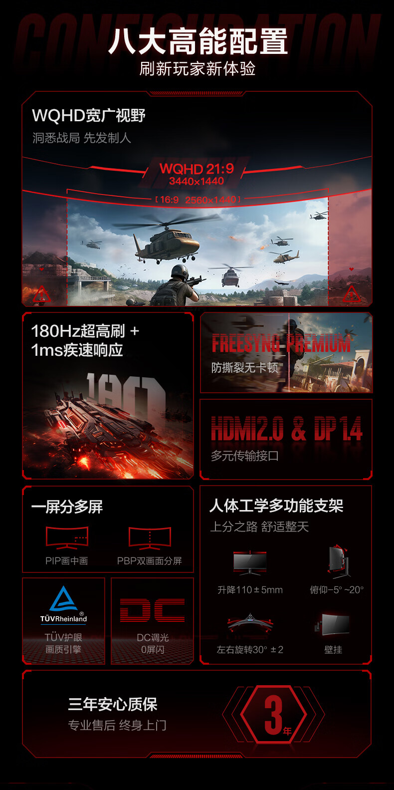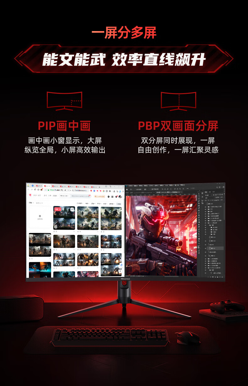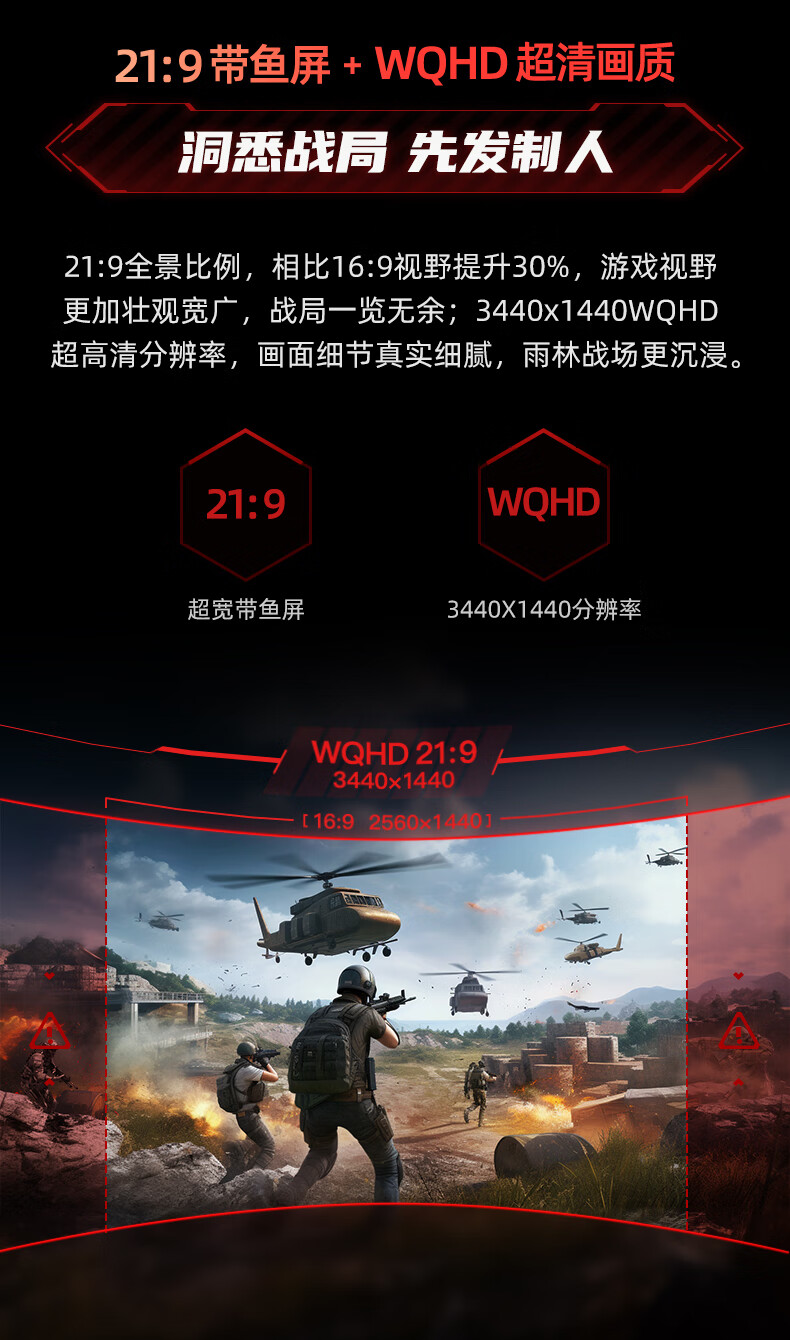 海信34英寸带鱼屏 180Hz高刷 1000R曲率 104%DCI-P3 HDR400 WQHD 曲面电竞显示屏 显示器 34G6K