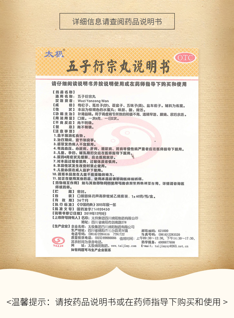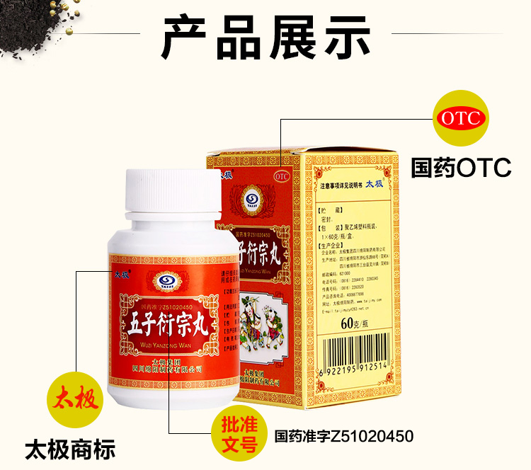 太极五子衍宗丸水蜜丸60g补肾壮阳益精大肾阳虚阳痿不育早泄治疗中药男科用药