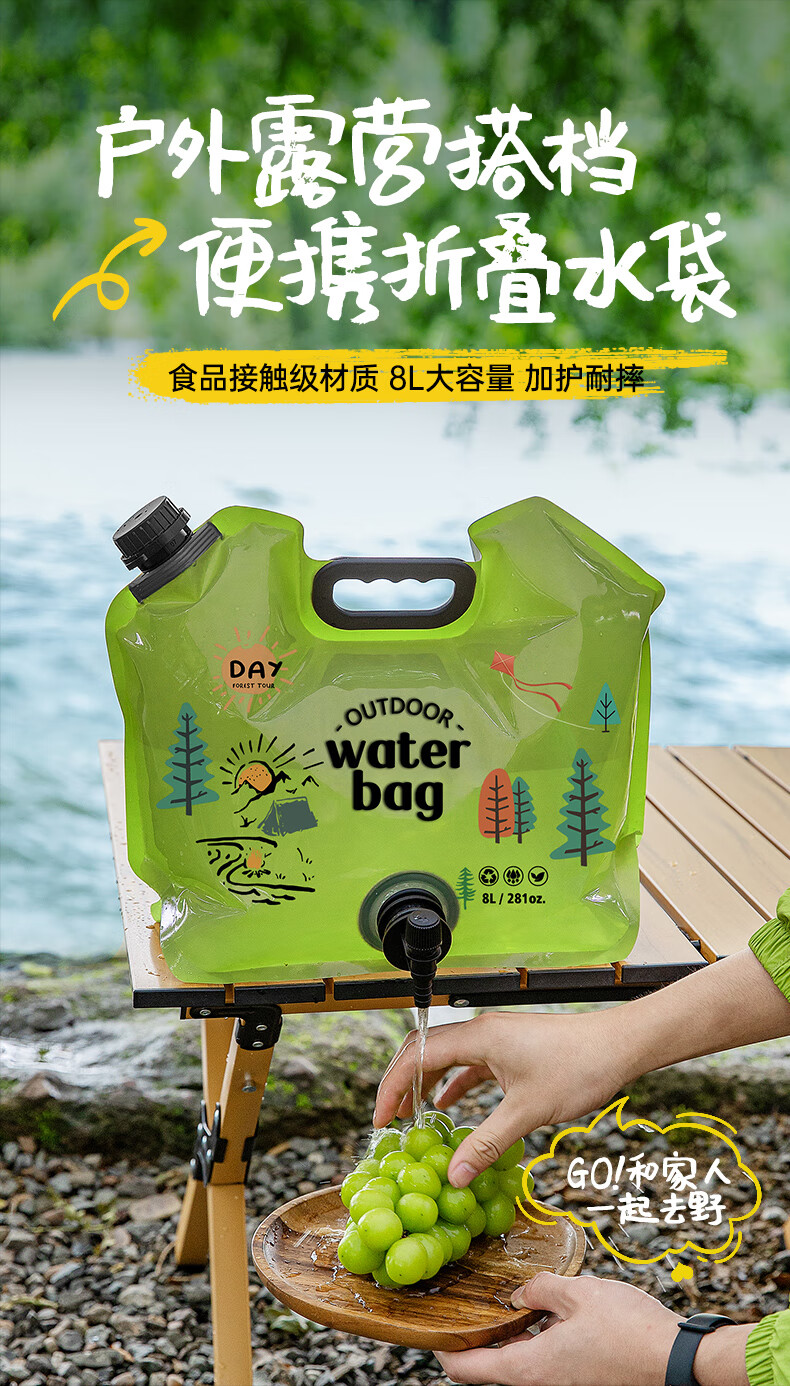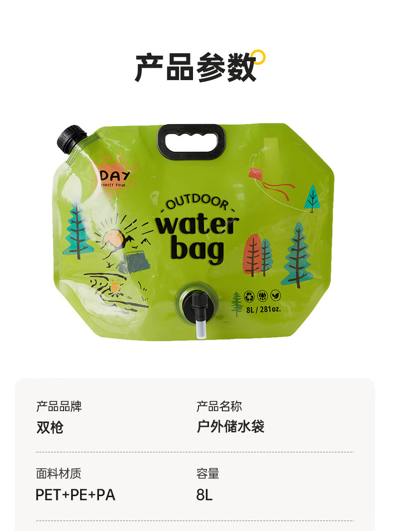 双枪(Suncha)水桶 户外储水袋8L 带水龙头便携手提水袋 大容量沙袋 可折叠水桶