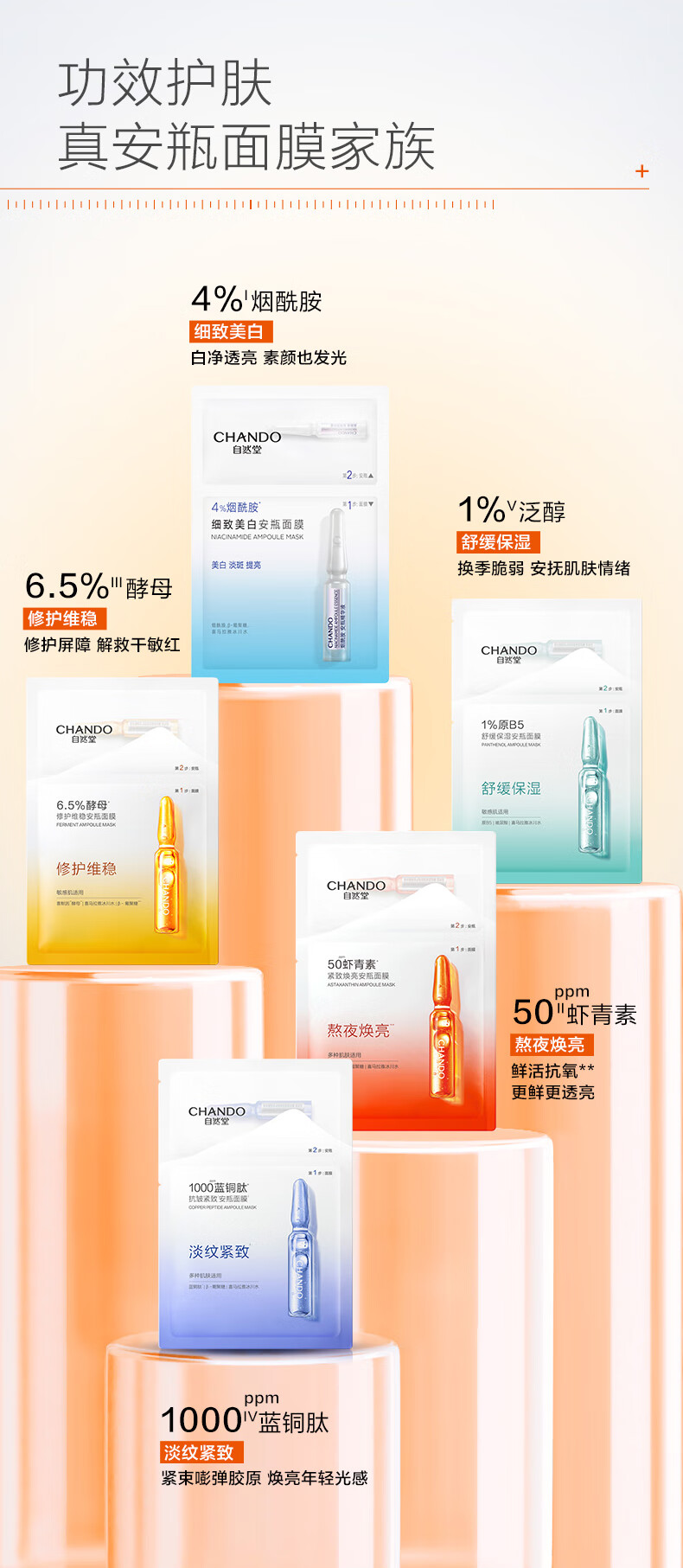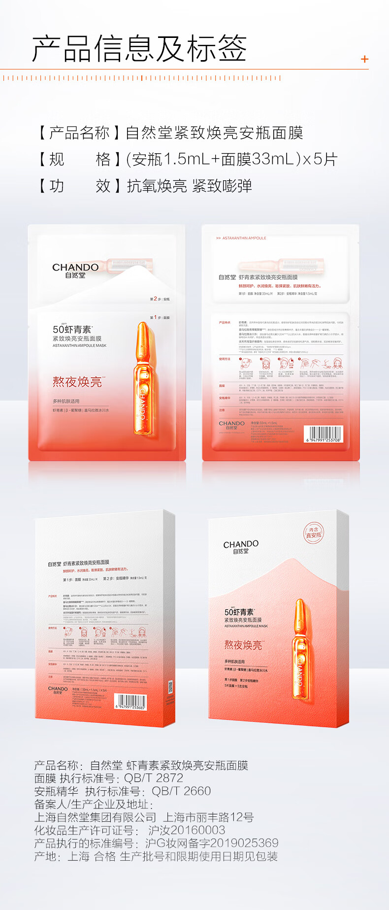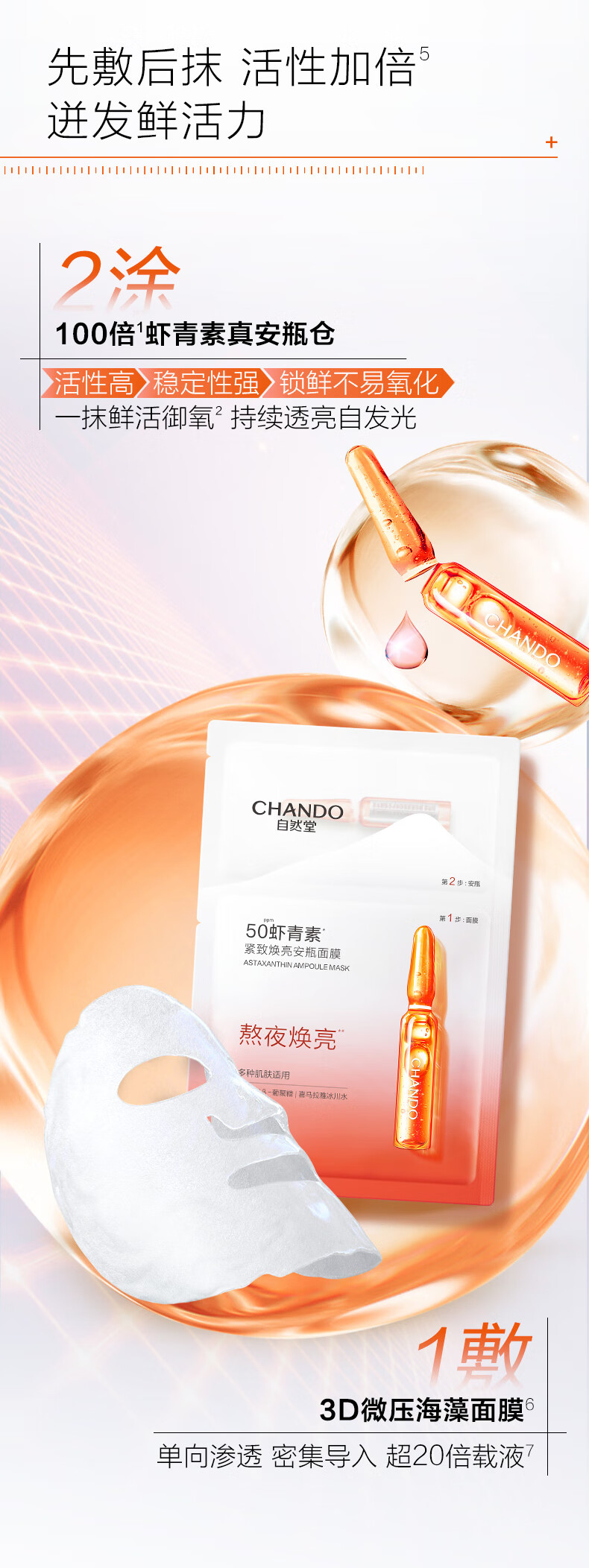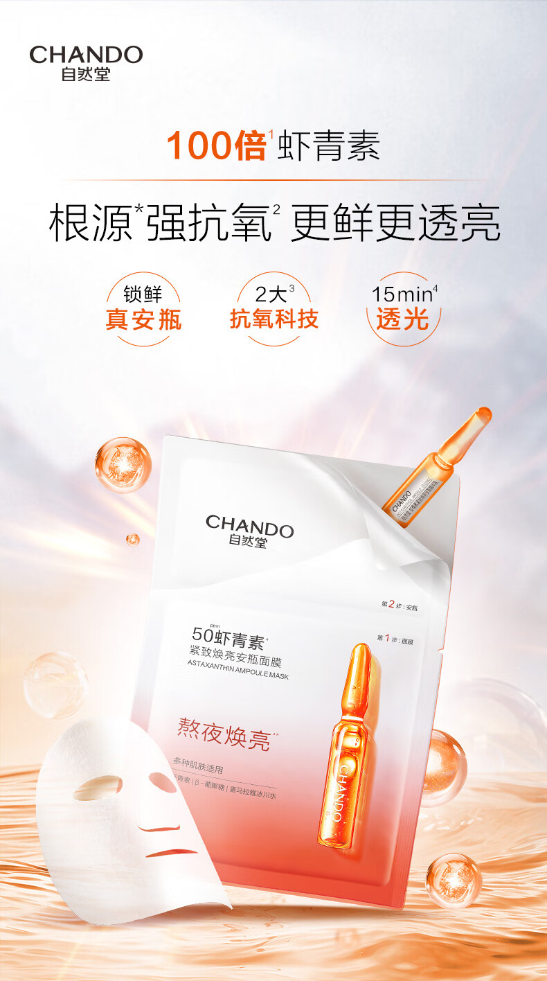 自然堂虾青素紧致焕亮安瓶面膜*5片 补水保湿弹嫩紧致舒缓滋润
