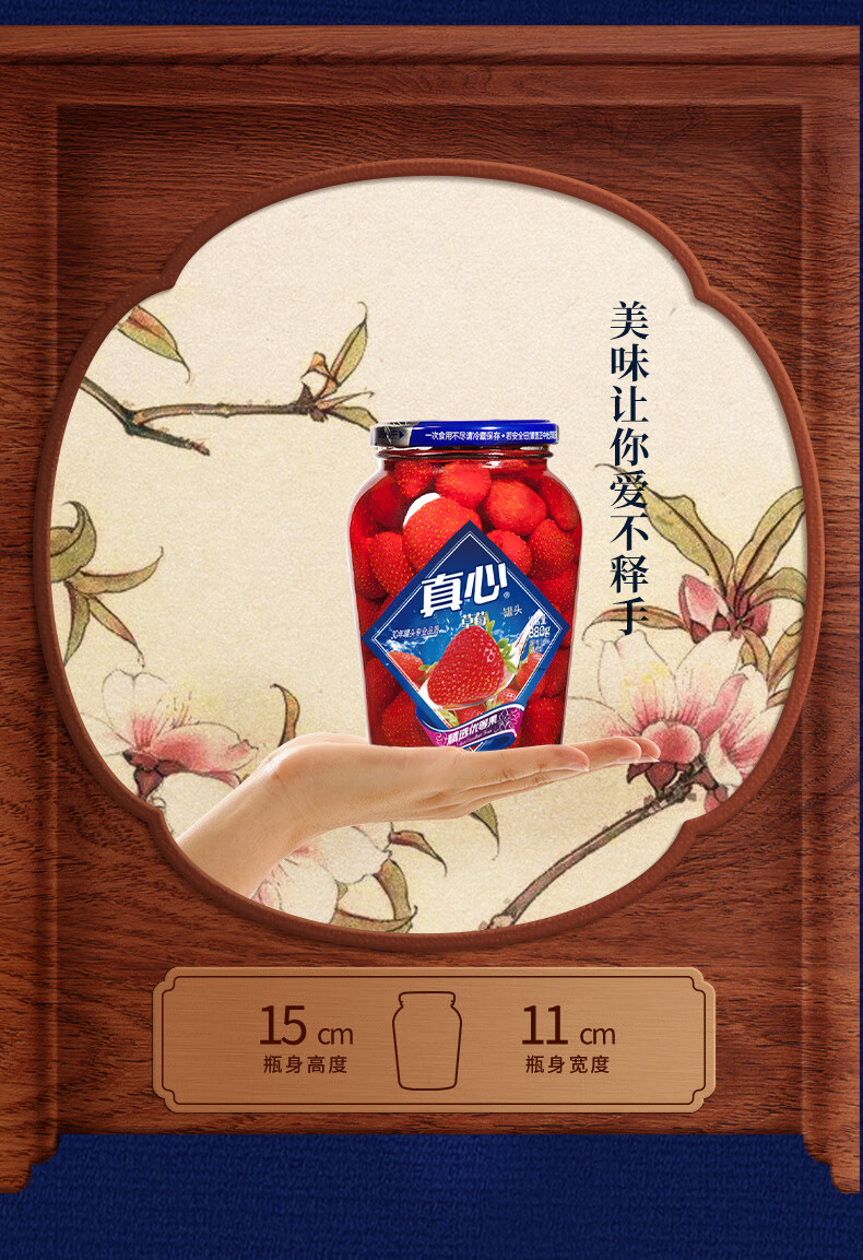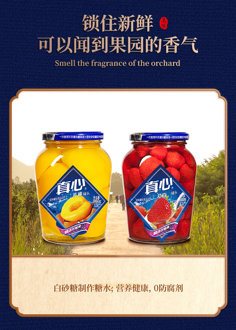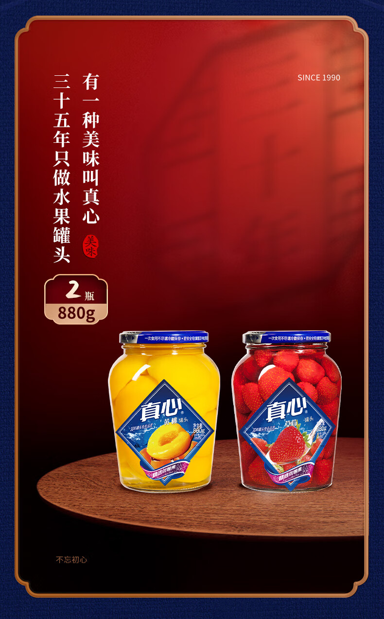 真心罐头 黄桃草莓水果草莓罐头880g罐头瓶装休闲零食即食中秋节送礼 黄桃880g+草莓880g