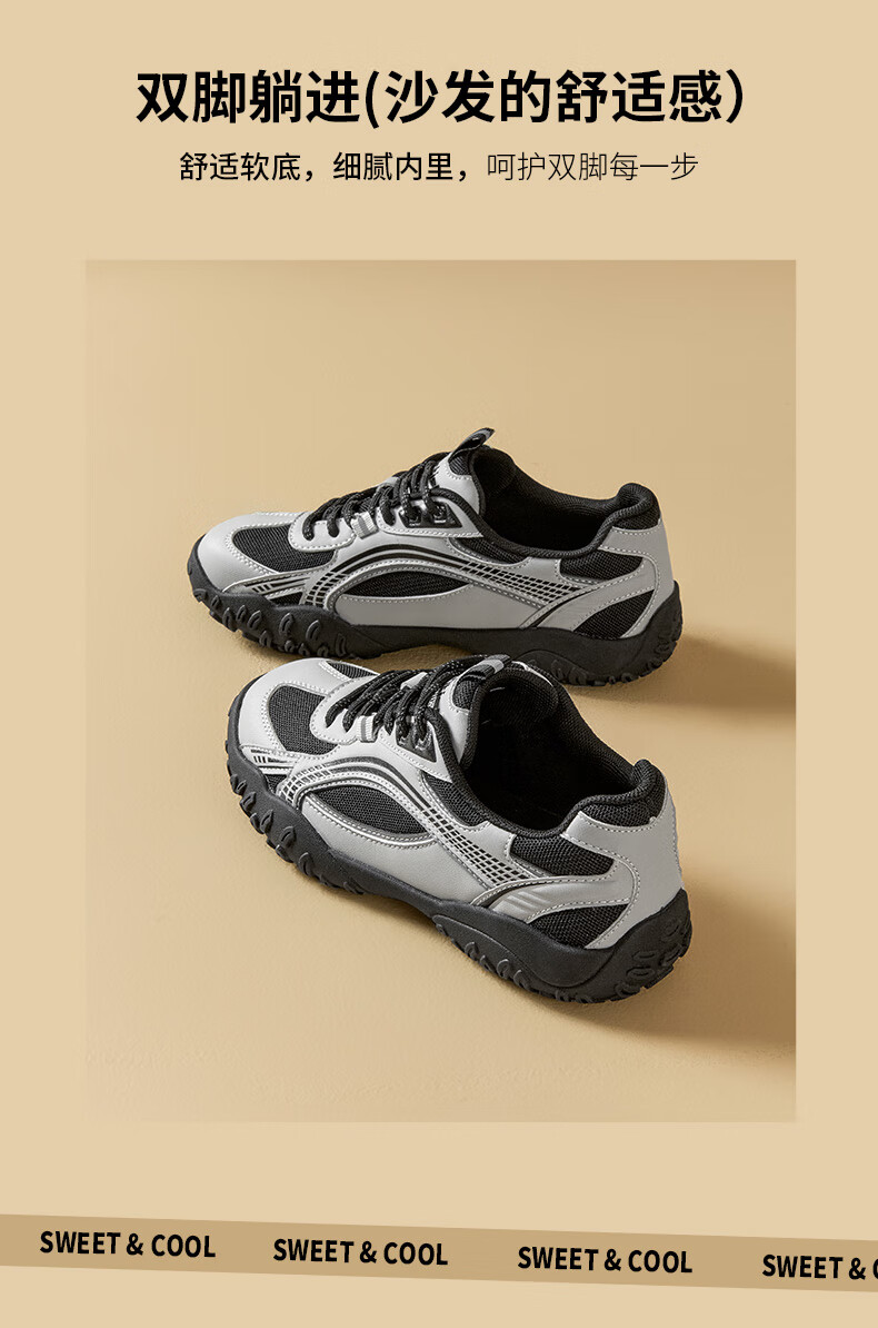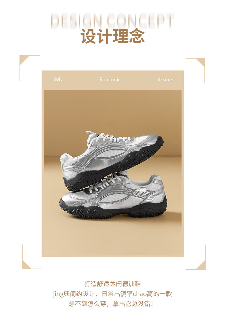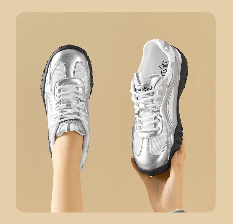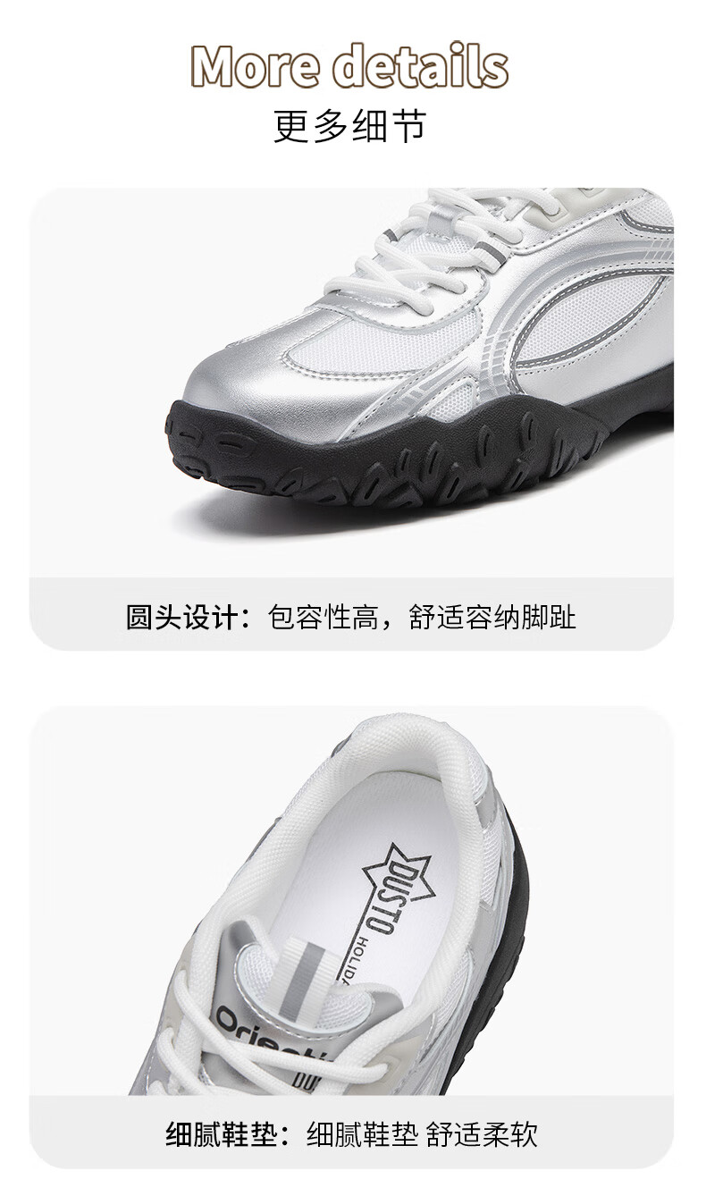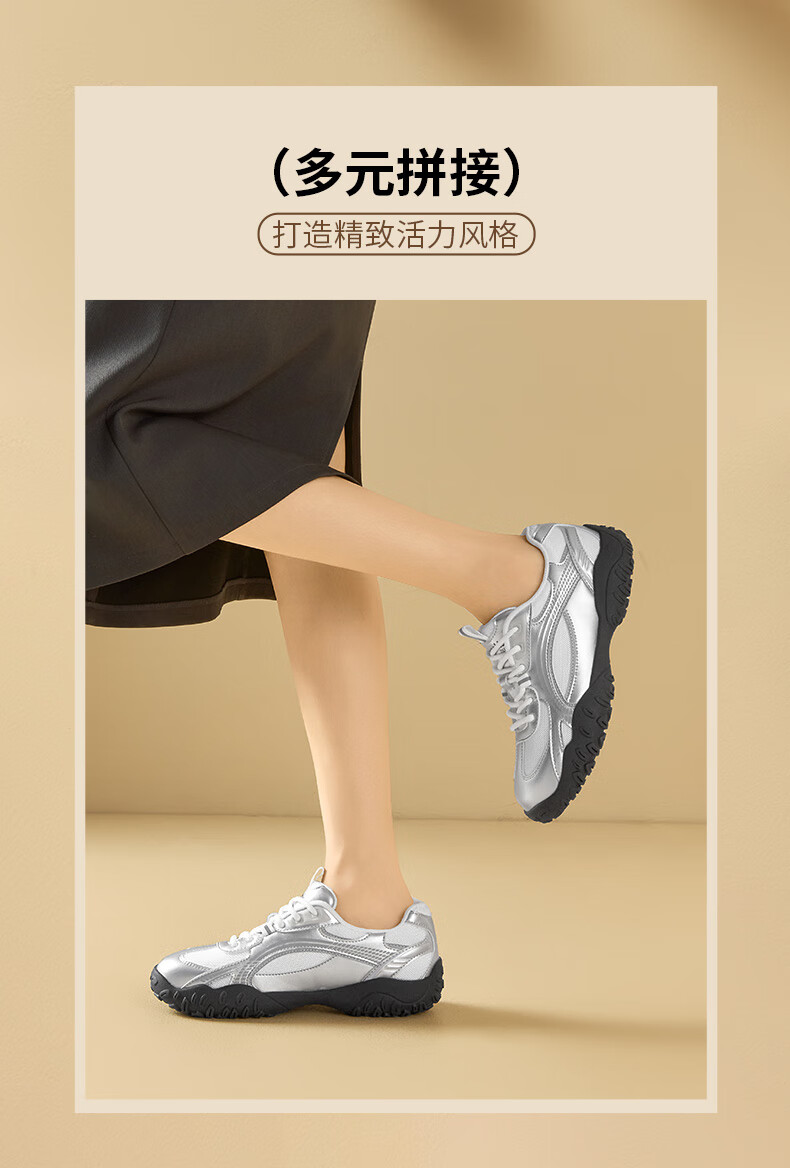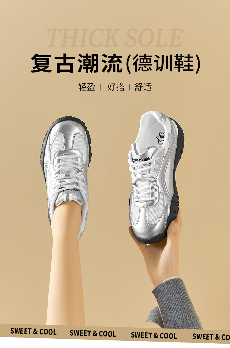 大东德训鞋女鞋2025年秋季新款复古潮流圆头拼接休闲鞋0340 银色 35