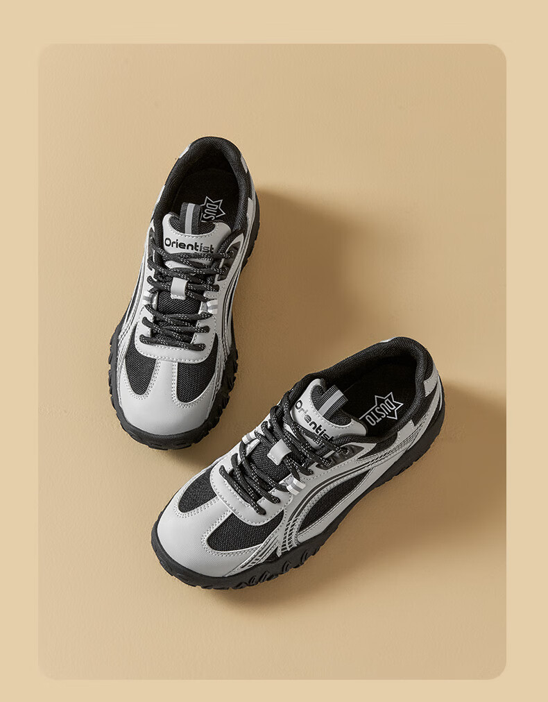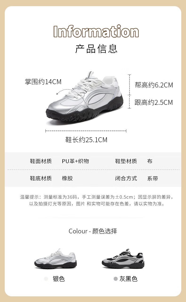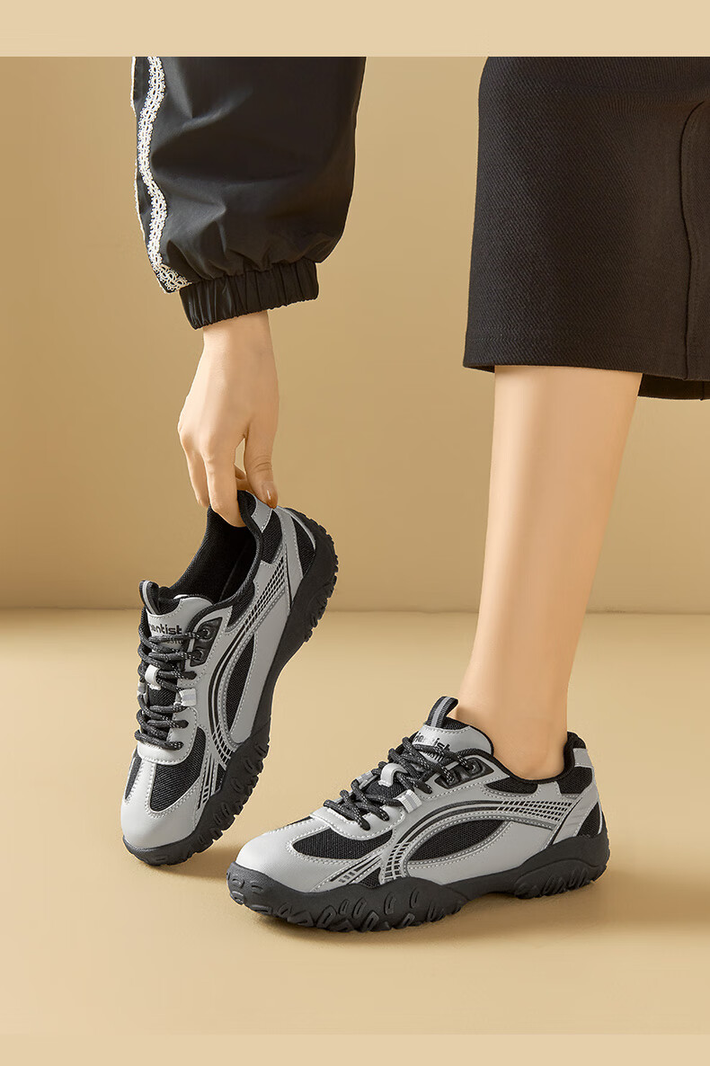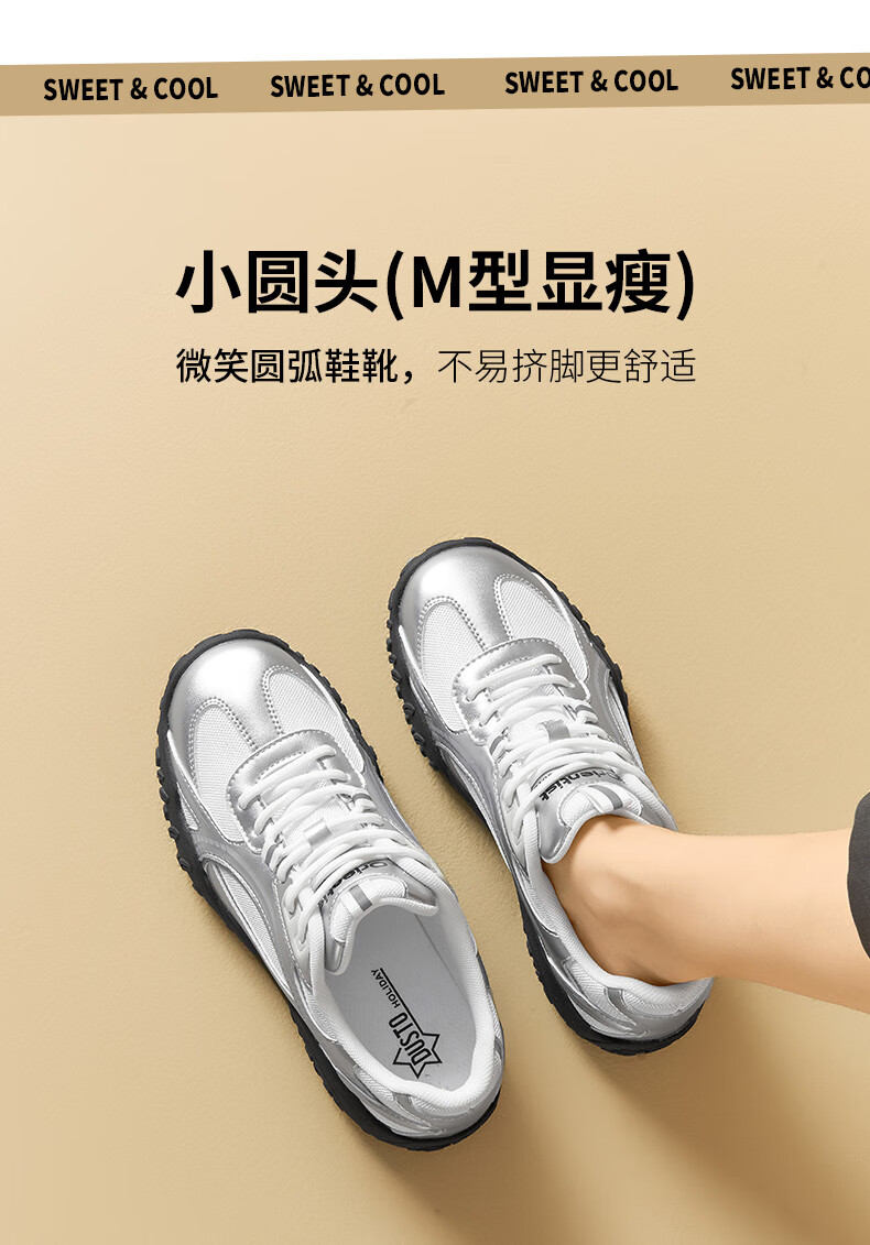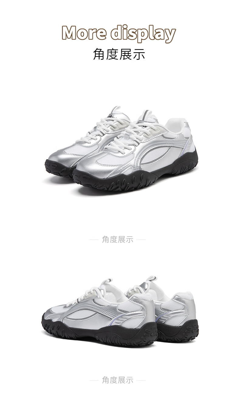 大东德训鞋女鞋2025年秋季新款复古潮流圆头拼接休闲鞋0340 银色 35