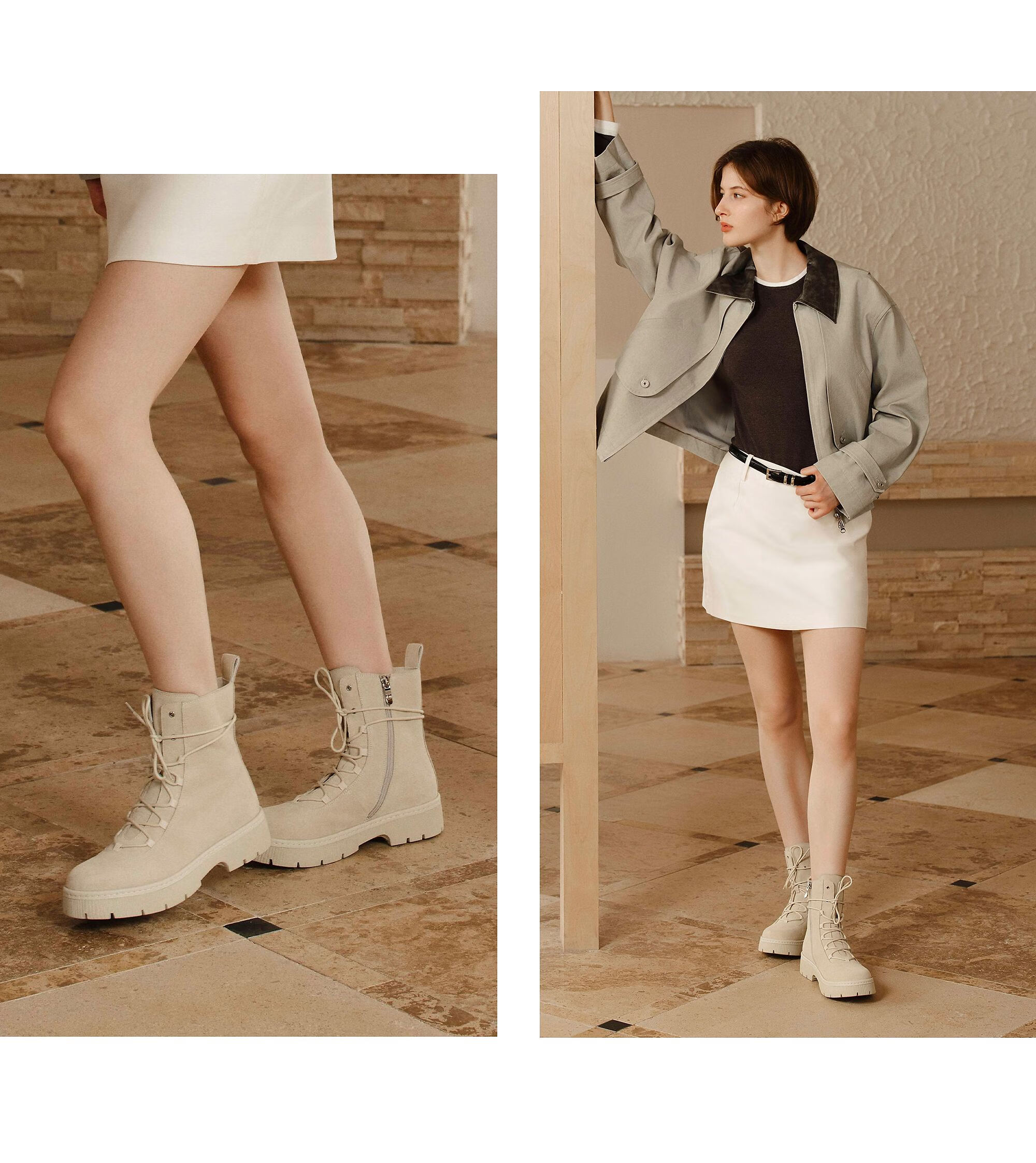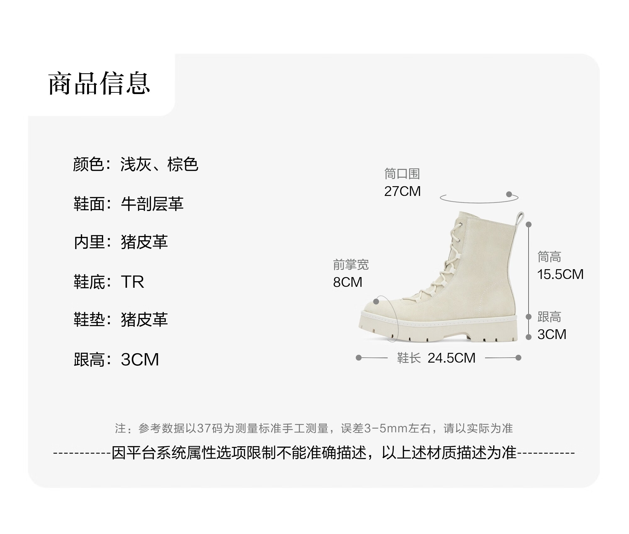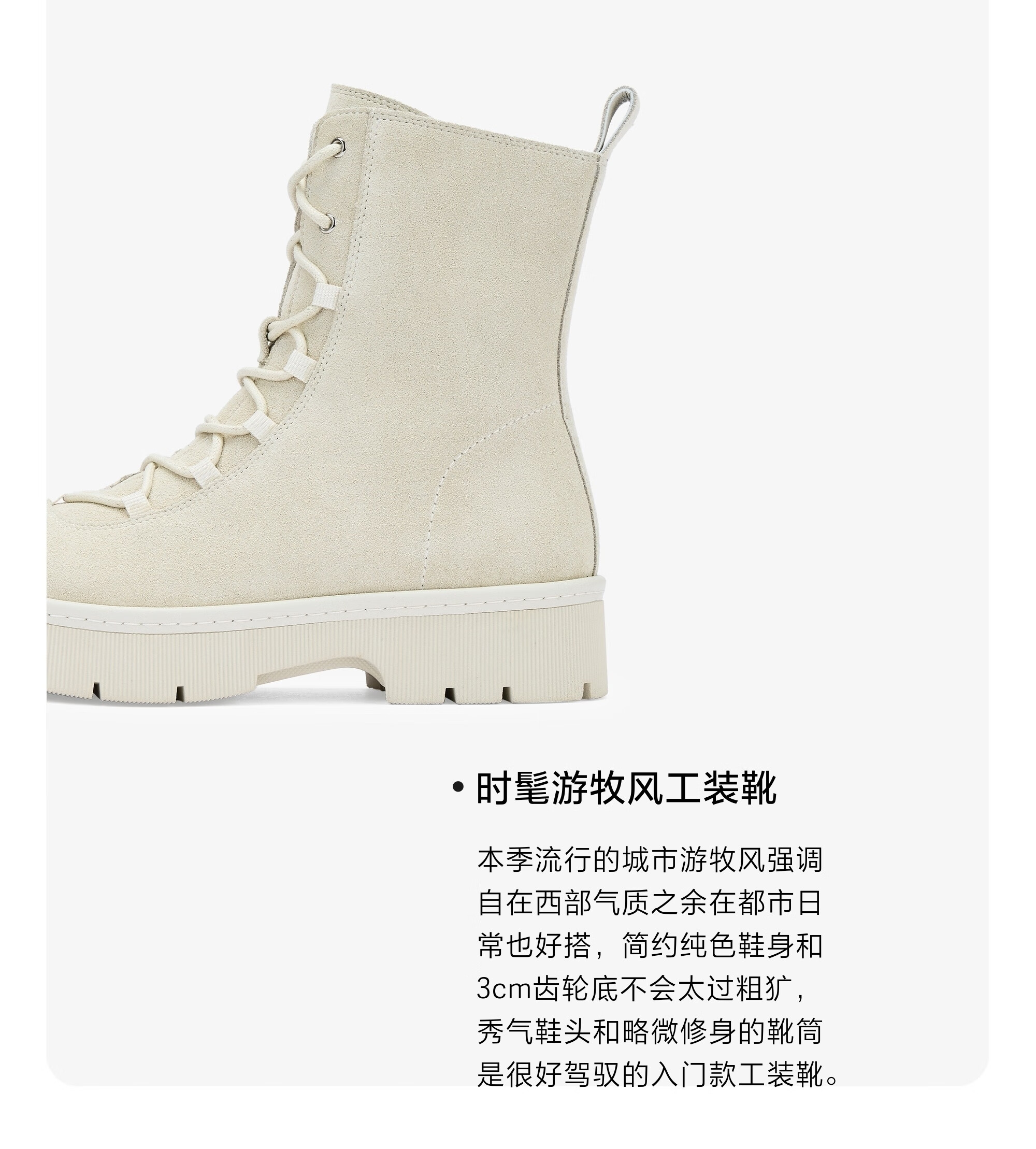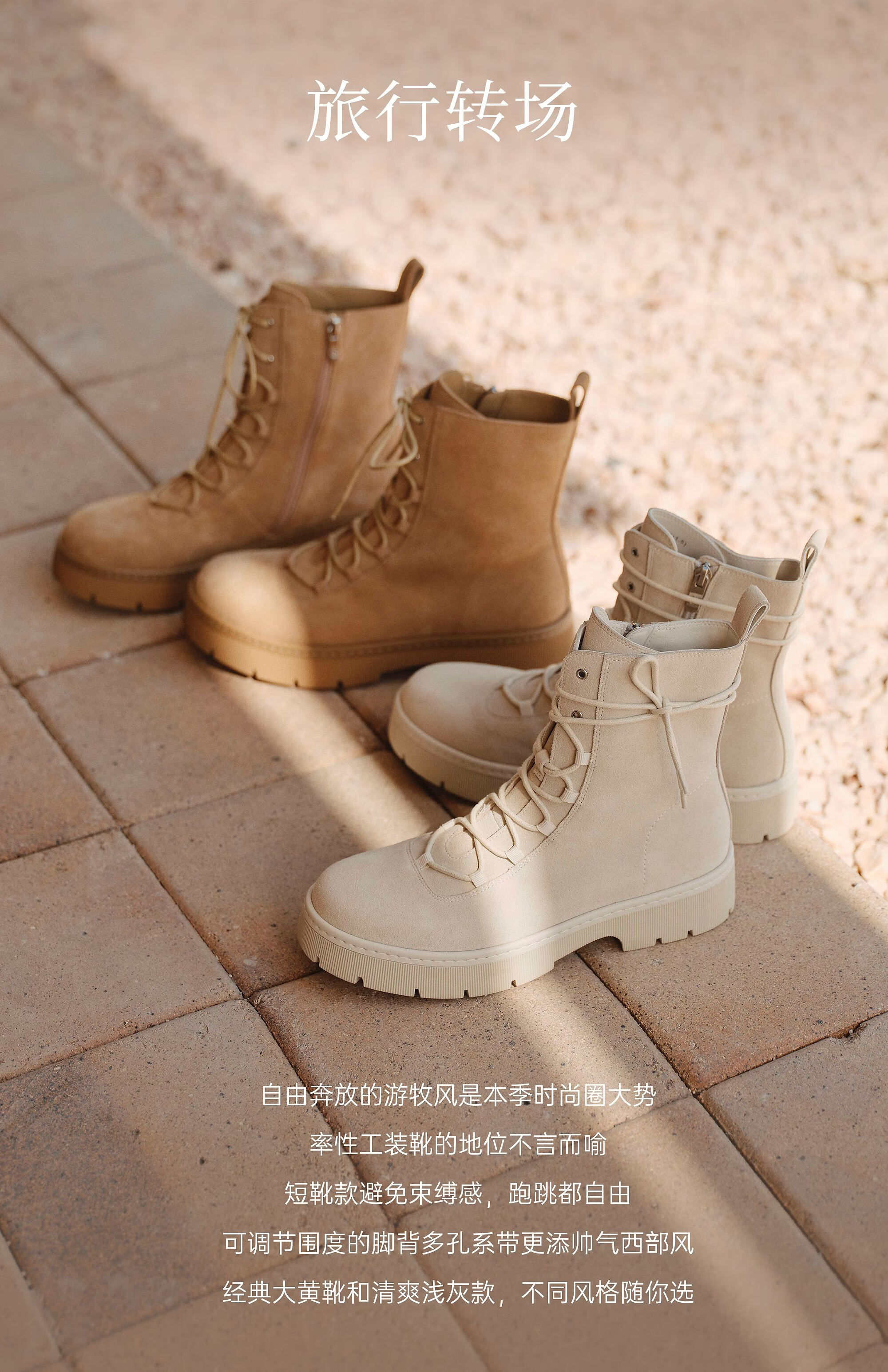 73Hours女鞋旅行转场2025冬季新款厚底西部风马丁靴工装靴大黄靴 浅灰 37