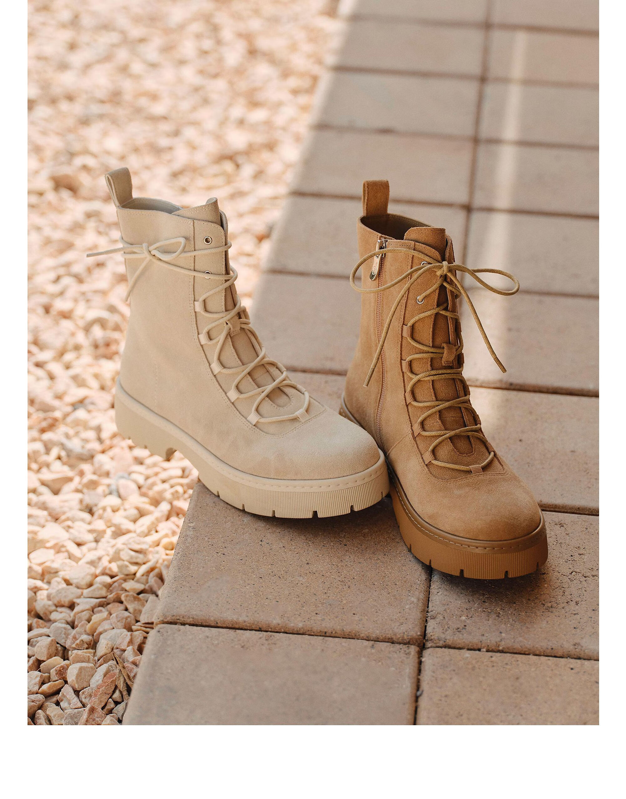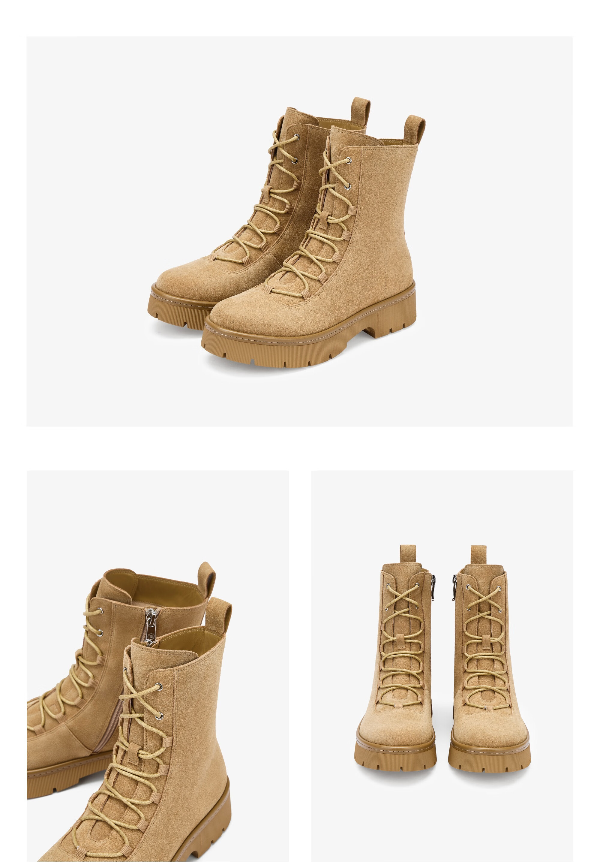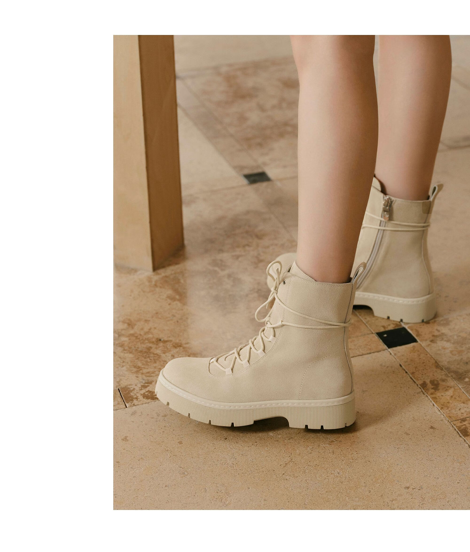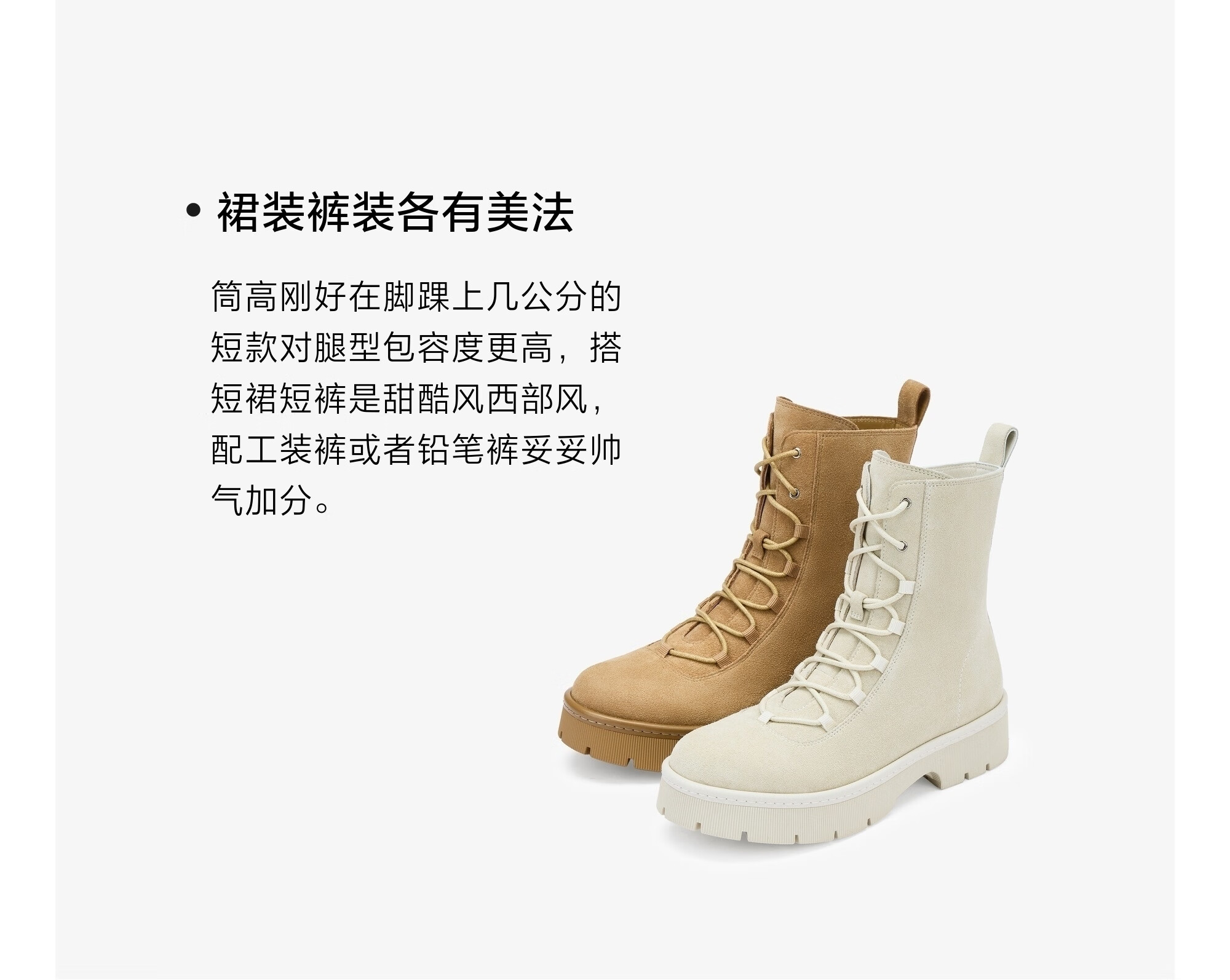 73Hours女鞋旅行转场2025冬季新款厚底西部风马丁靴工装靴大黄靴 浅灰 37