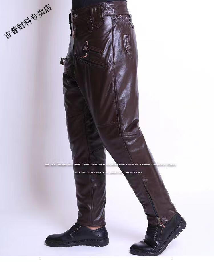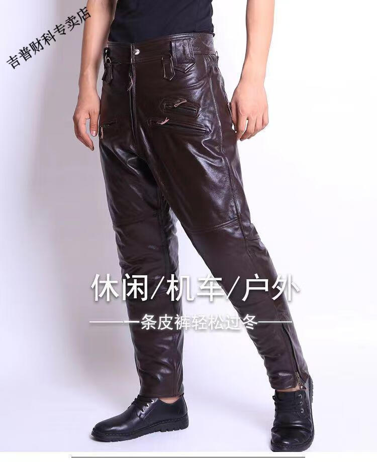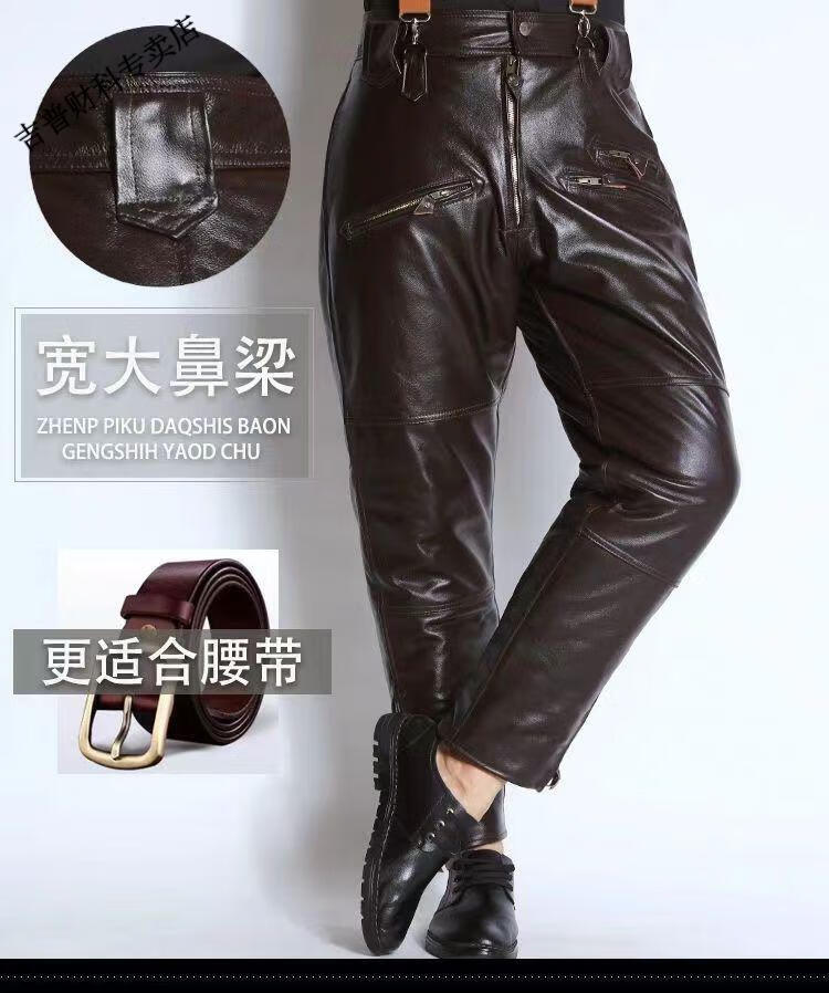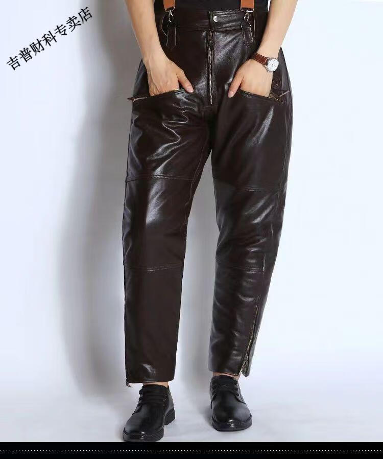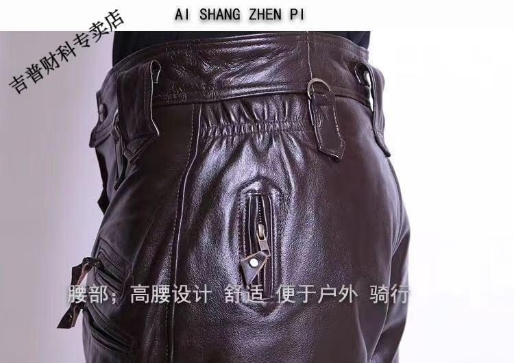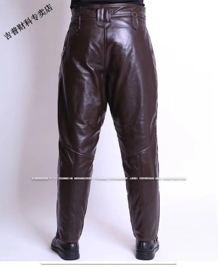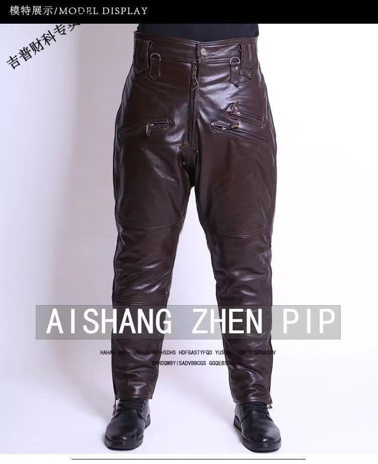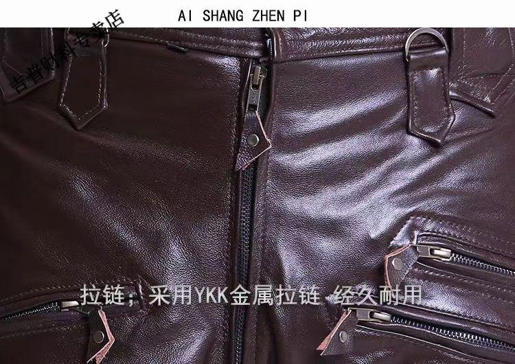 JEEP SPIRIT飞行员皮裤真皮皮裤牛皮摩托车皮裤高腰保暖冬季加厚马裤直销硬汉 棕色 5XL 腰围3尺3-3尺4
