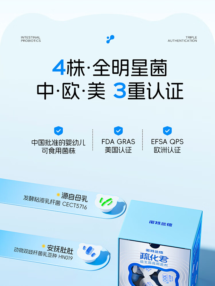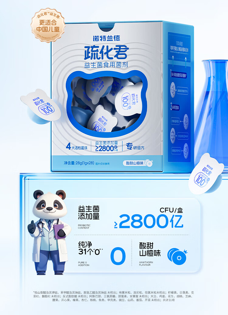 诺特兰德疏化君儿童活性益生菌 呵护肠胃双歧杆菌益生元 4大明星菌株 3盒