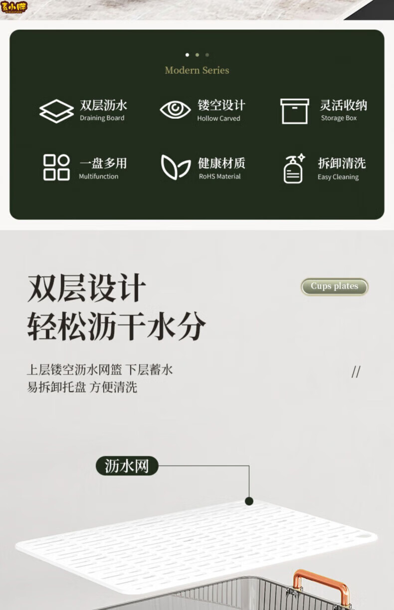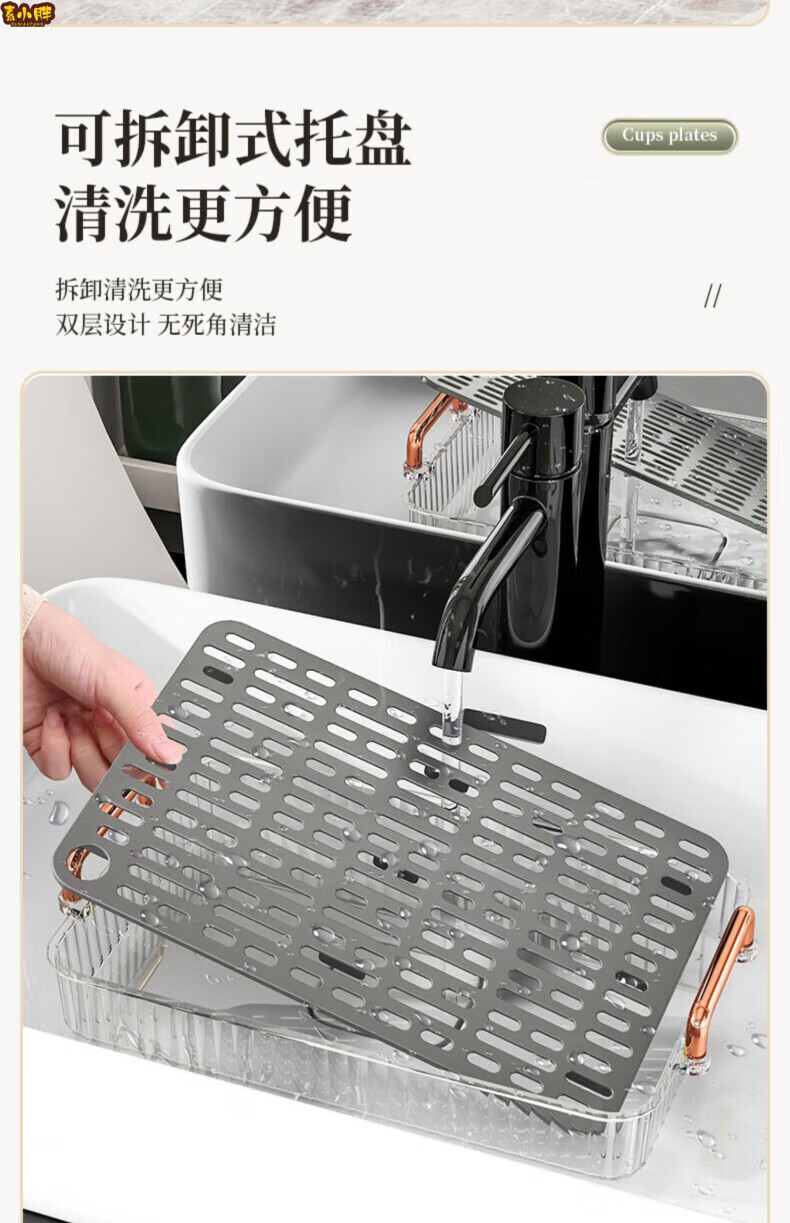 AILUKI日本茶具托盘家用收纳置物架放杯架子倒挂水杯茶杯玻璃杯沥水杯架 加高耐摔-火山灰--大号+麋鹿杯架