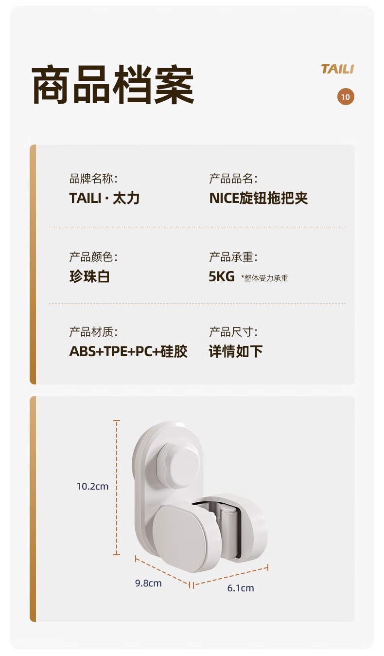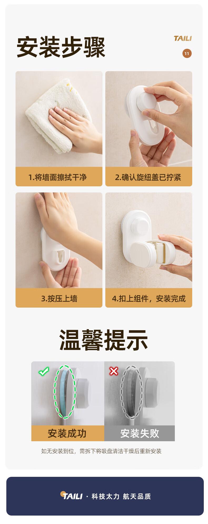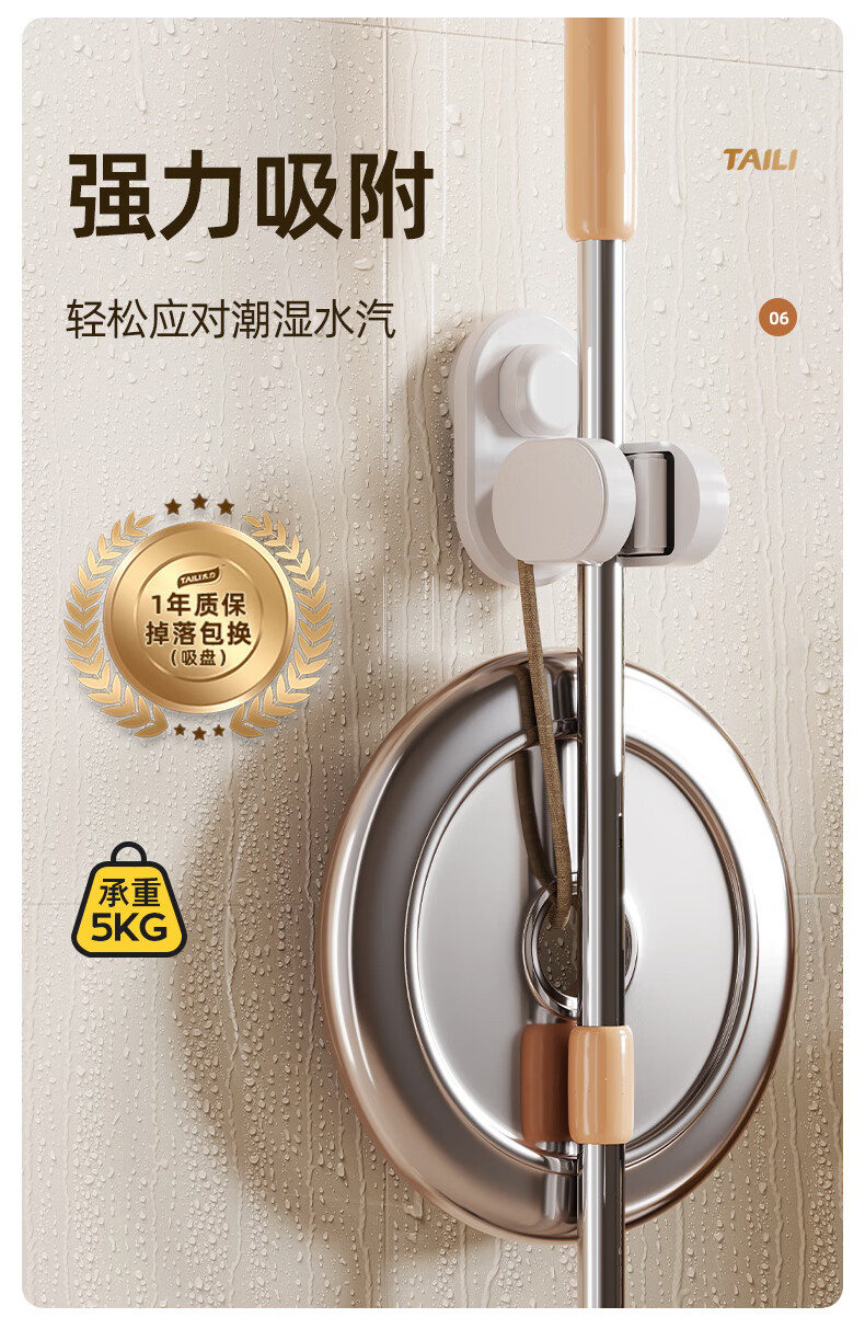 太力吸盘式拖把卡扣固定器拖把夹壁挂强力拖把挂钩浴室收纳置物架 拖把夹白色 1个