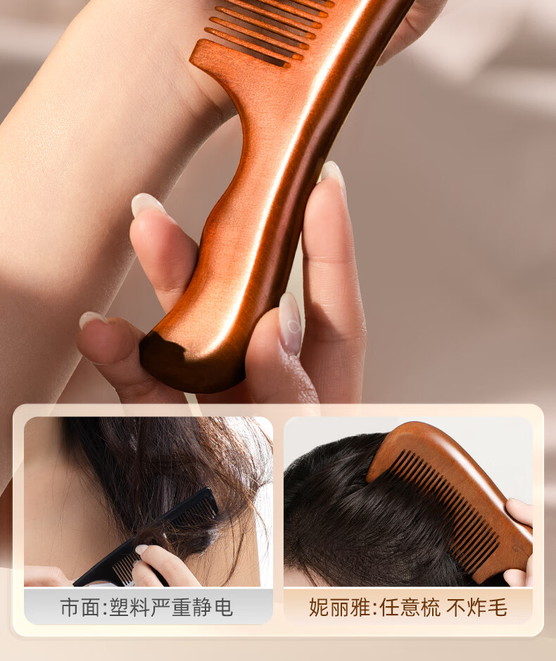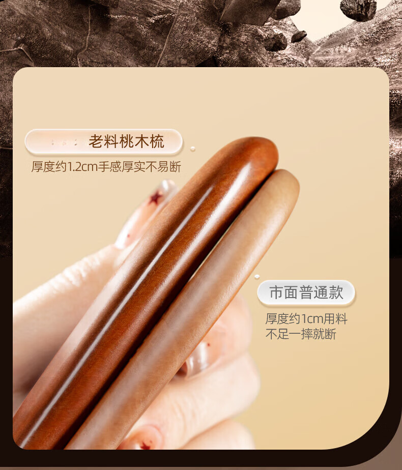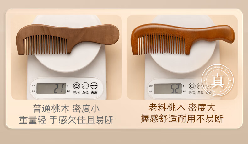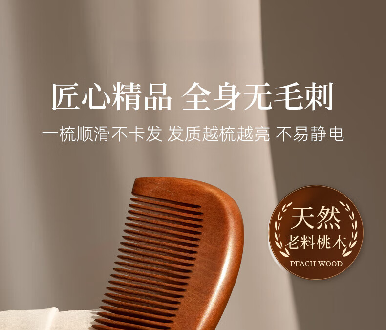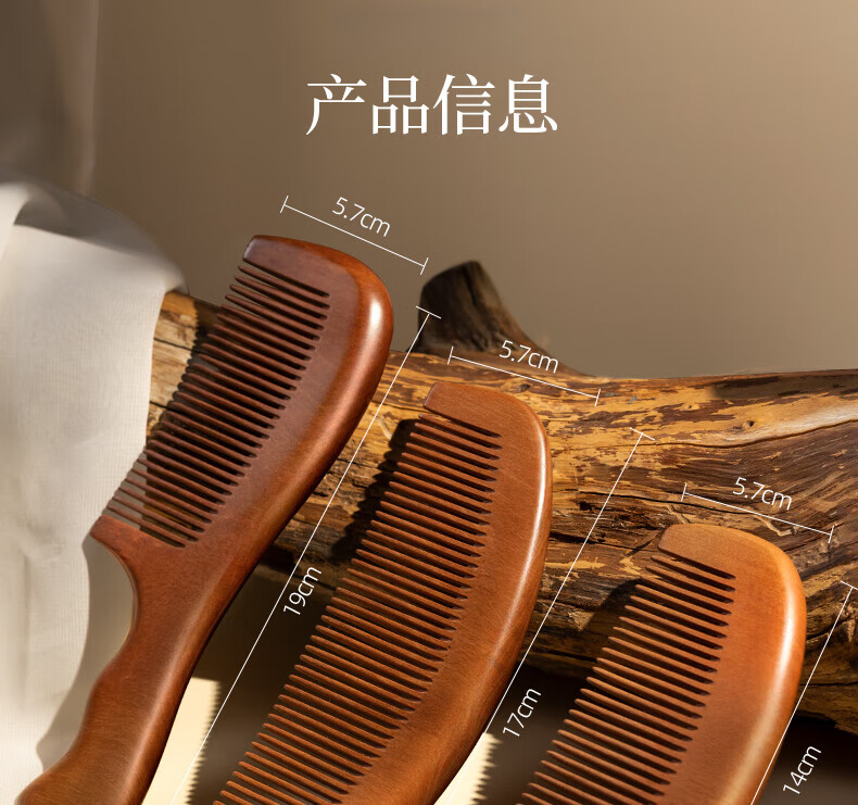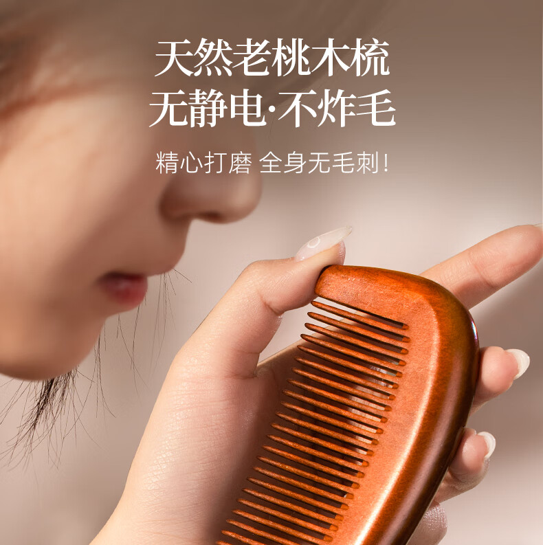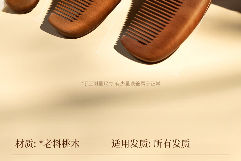 AILUKI日本高端桃木梳子男士天然实木家用脱发实木檀木梳 弯柄细齿款17+月牙细齿款 19