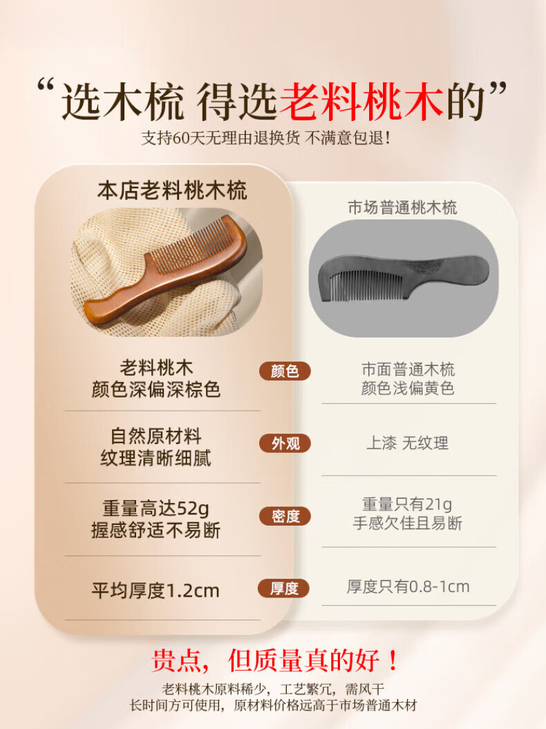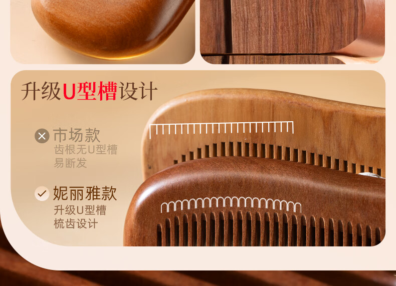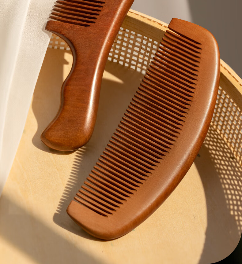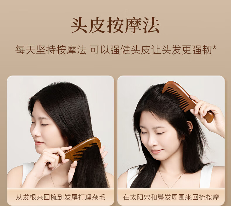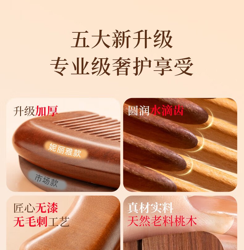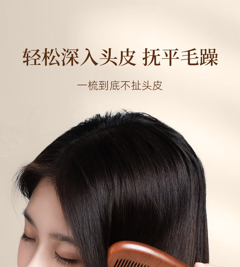 AILUKI日本高端桃木梳子男士天然实木家用脱发实木檀木梳 弯柄细齿款17+月牙细齿款 19