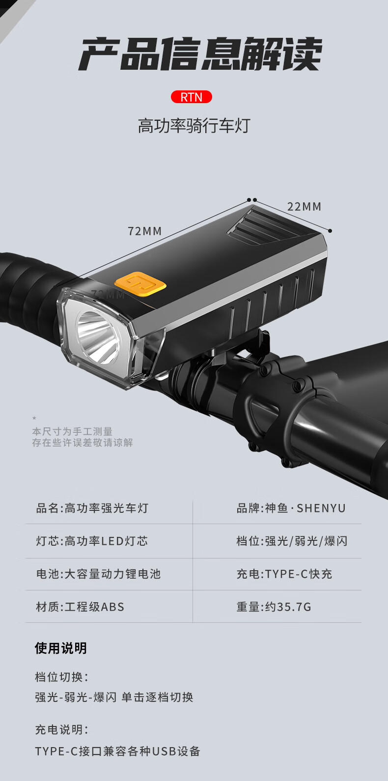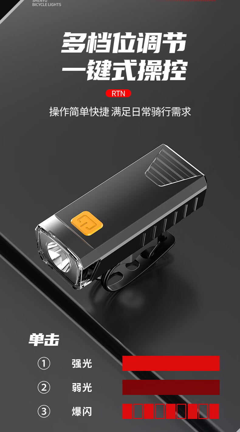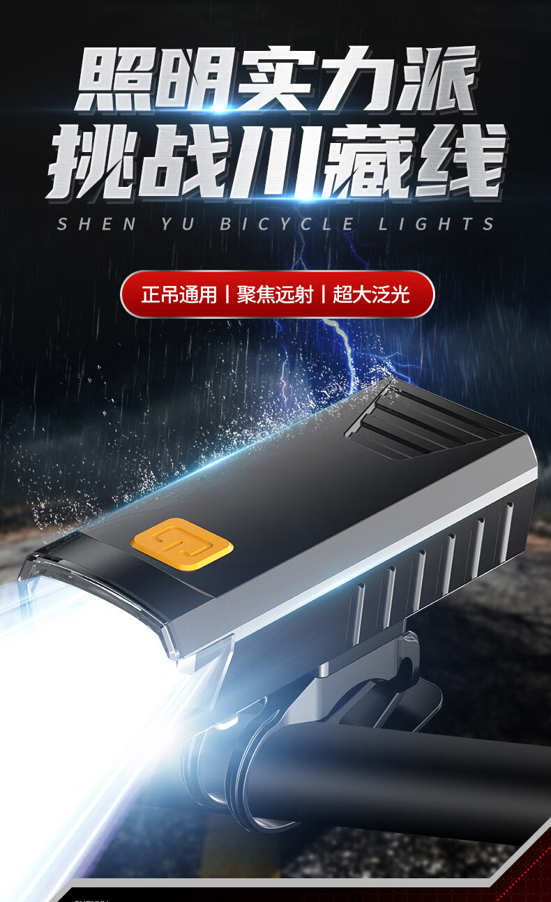 神鱼(SHENYU)自行车灯夜骑前灯充电强光超亮骑行山地防雨手电筒户外夜骑装备 【豪华配置】强光超亮